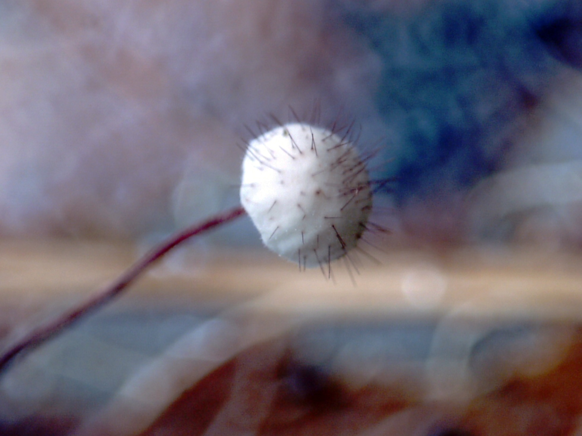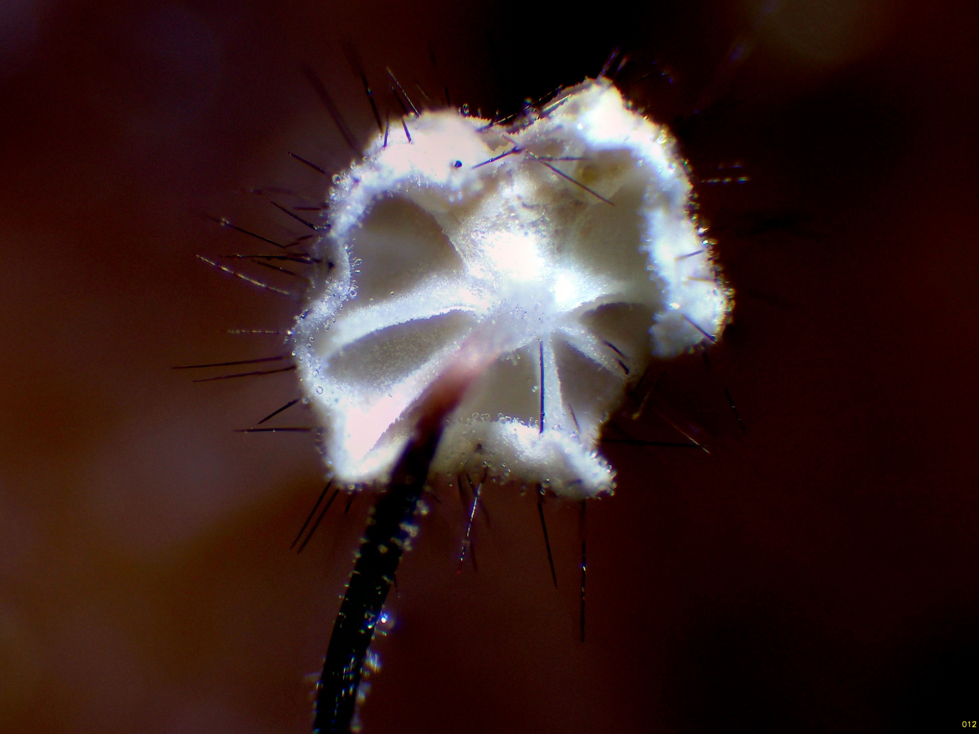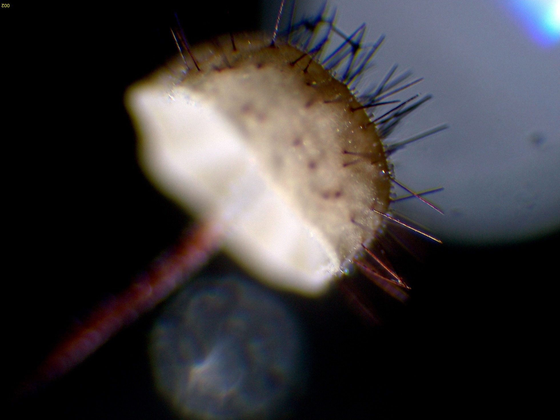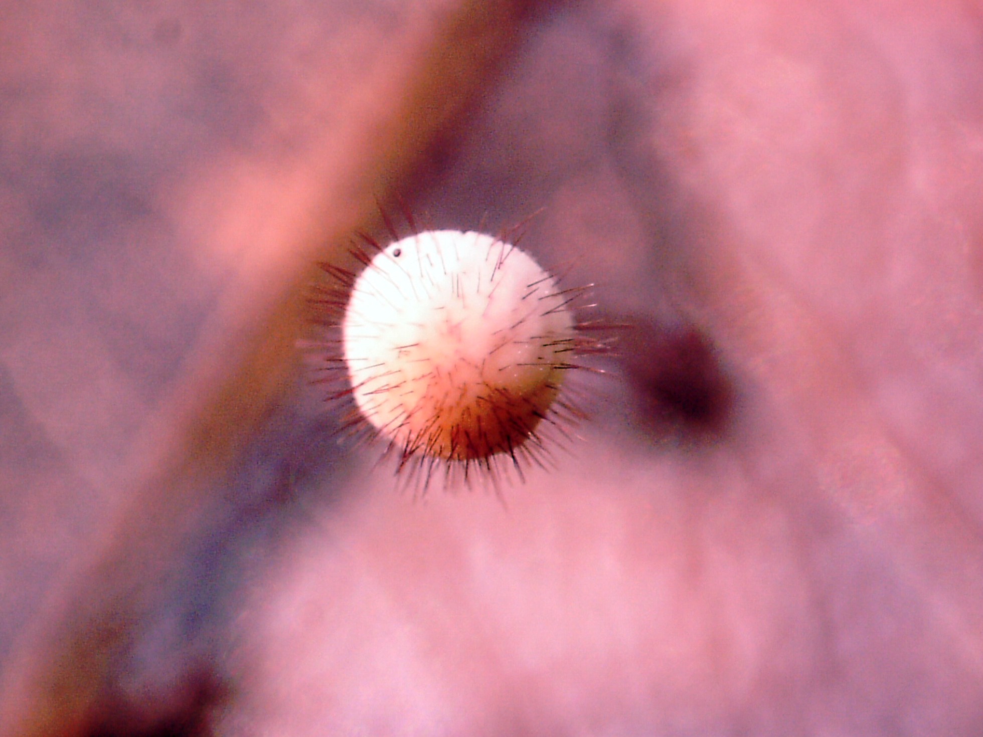 Un diminuto hongo de apenas poco más de 2 mm., fructificando sobre unas hojas de acebo (Ilex aquifolium), recolectado el 19 de septiembre el La Foret d'Issaux.