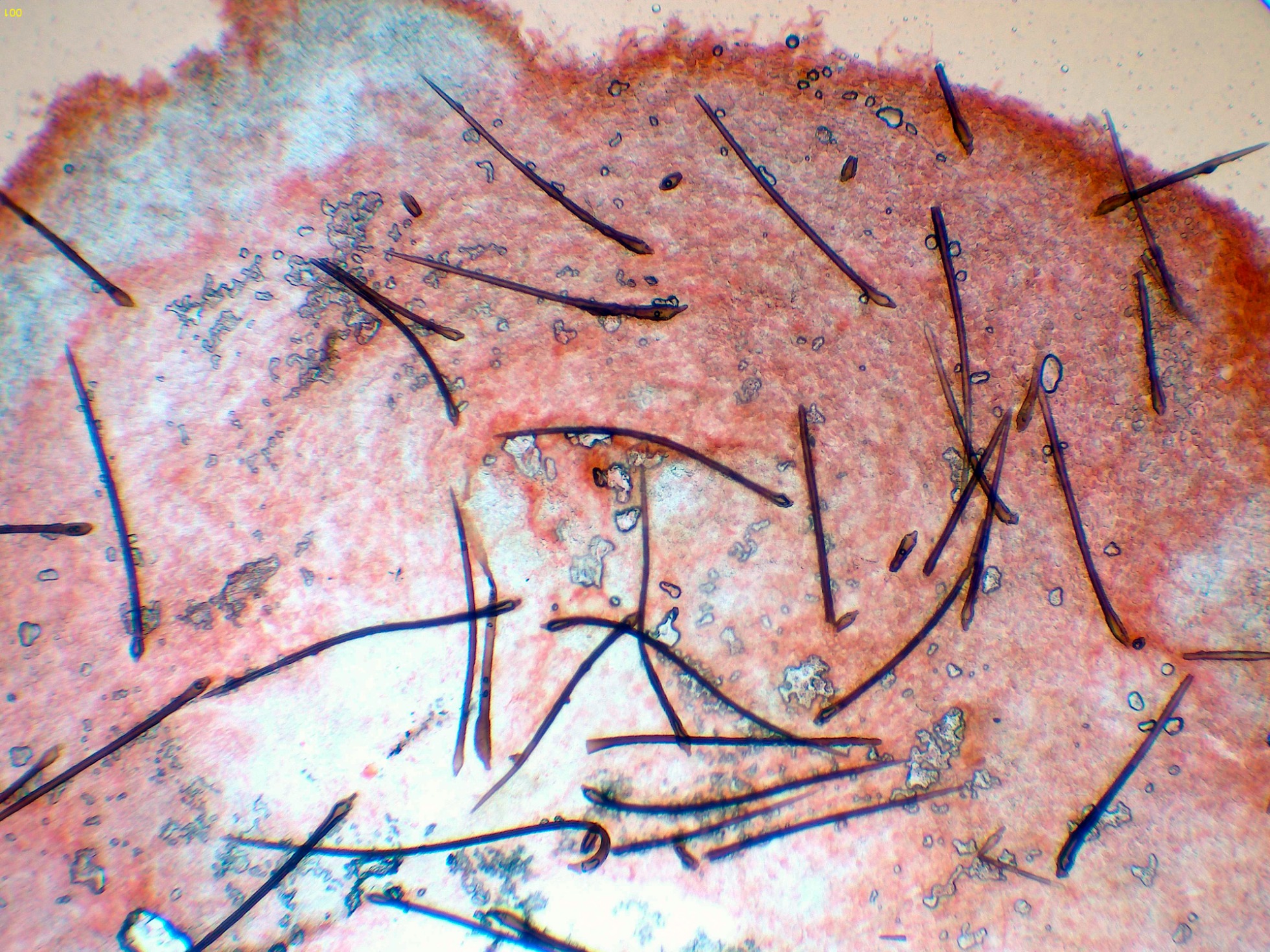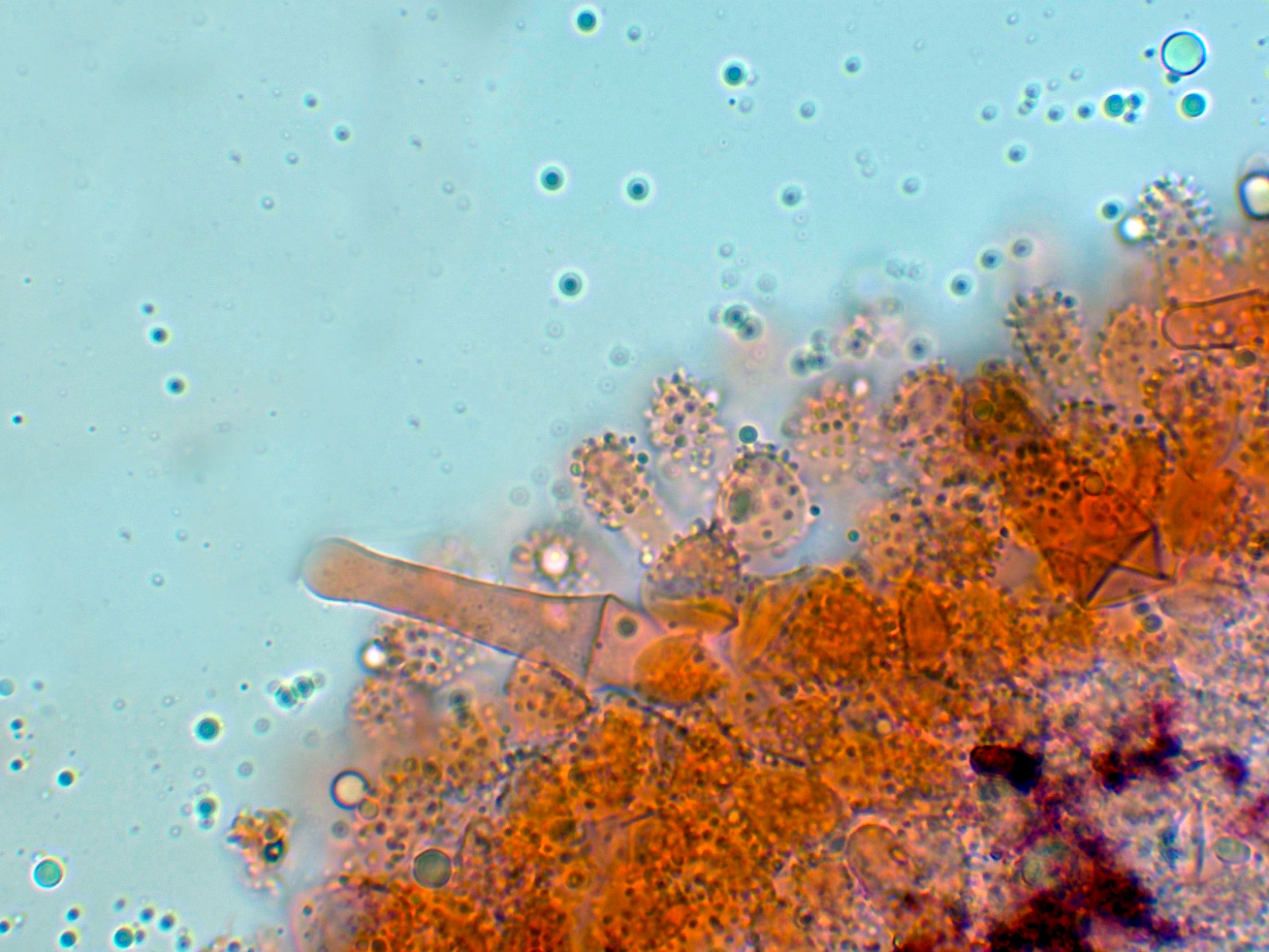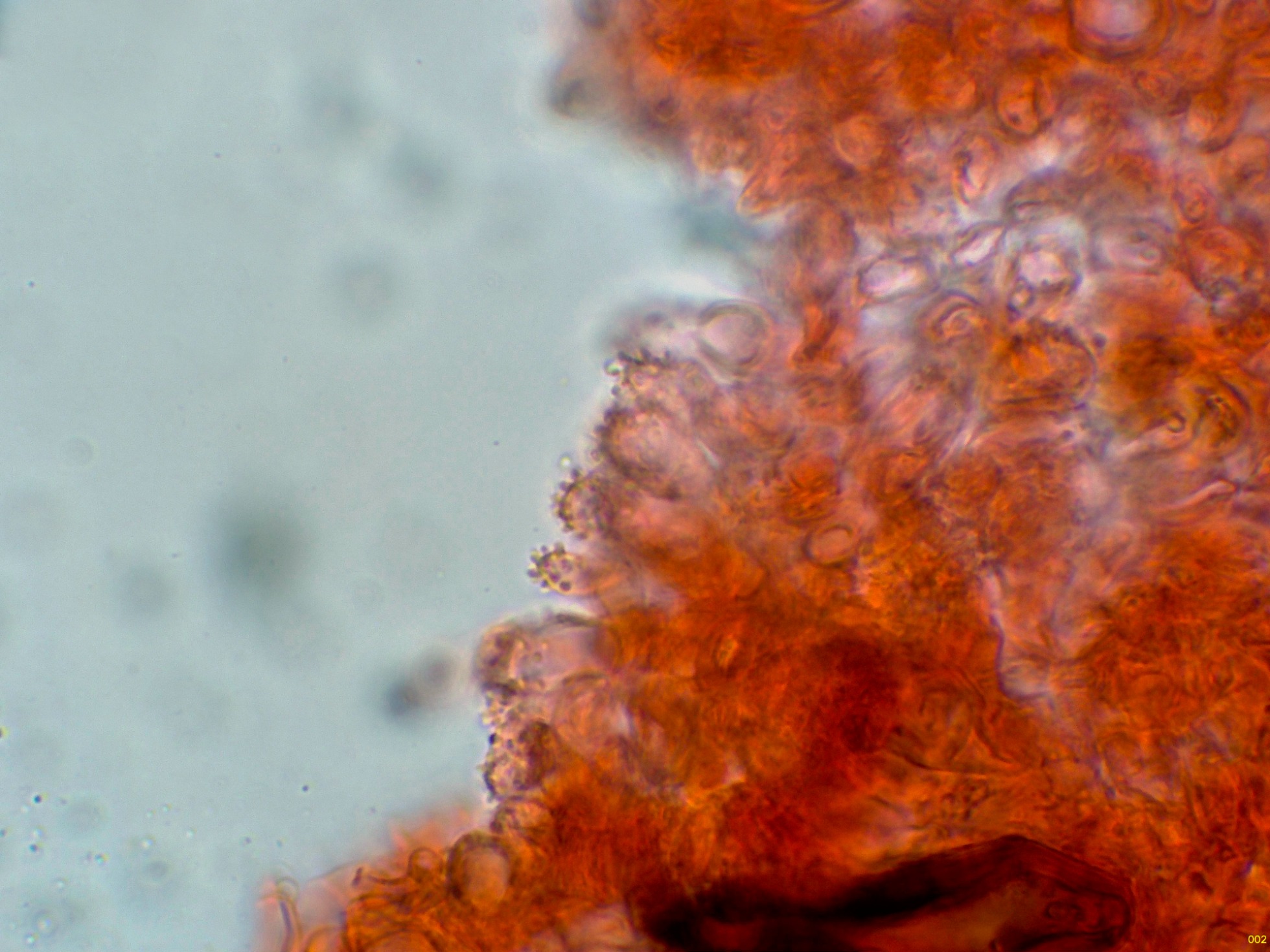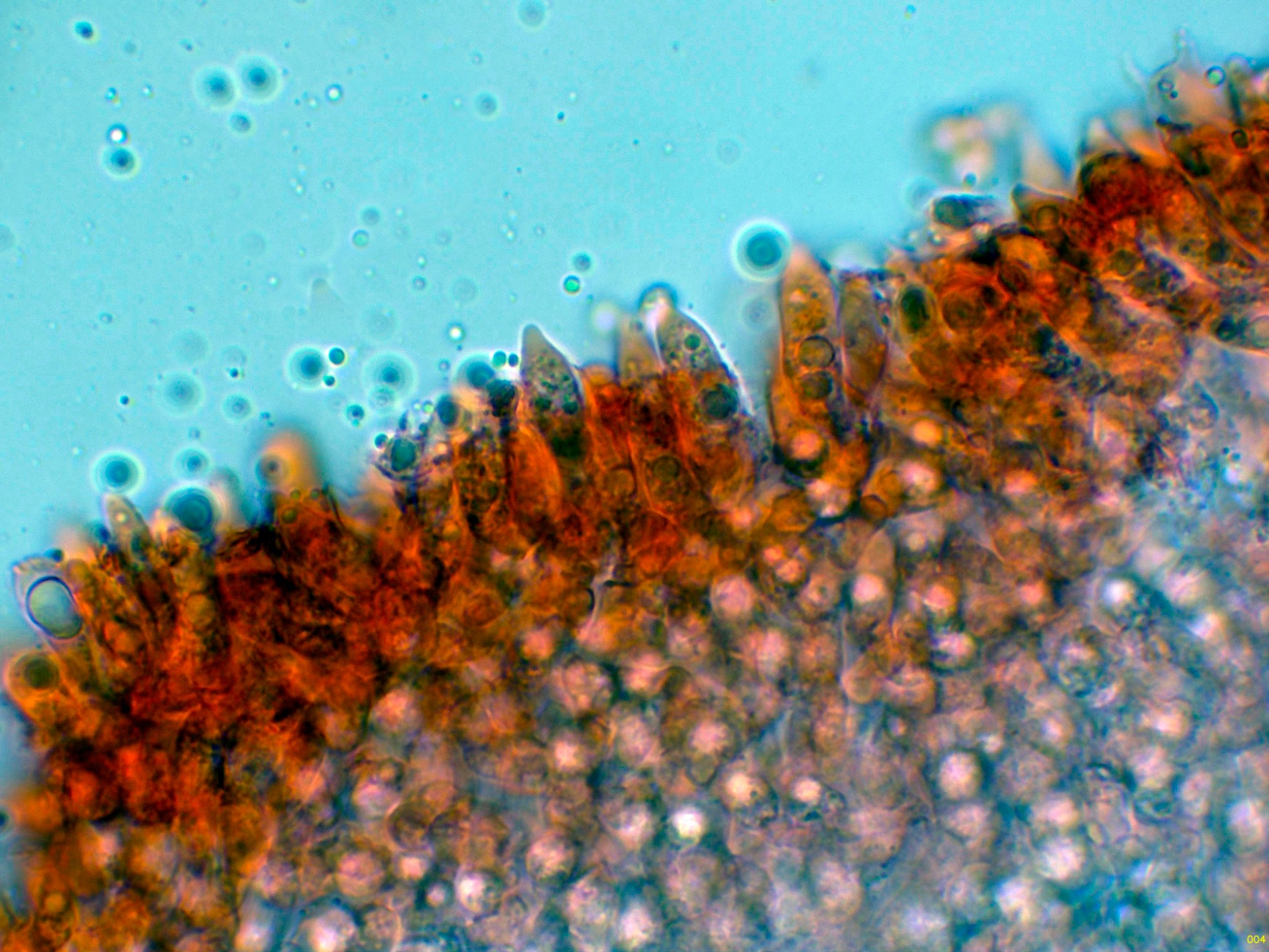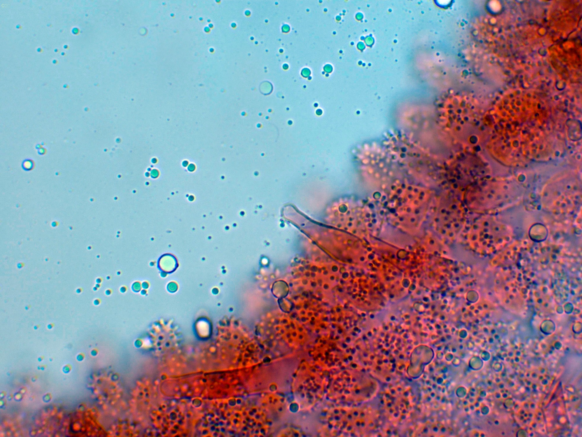 Dermatocistidios dispersos en el píleo con una morfología parecida a los caulocistidios.