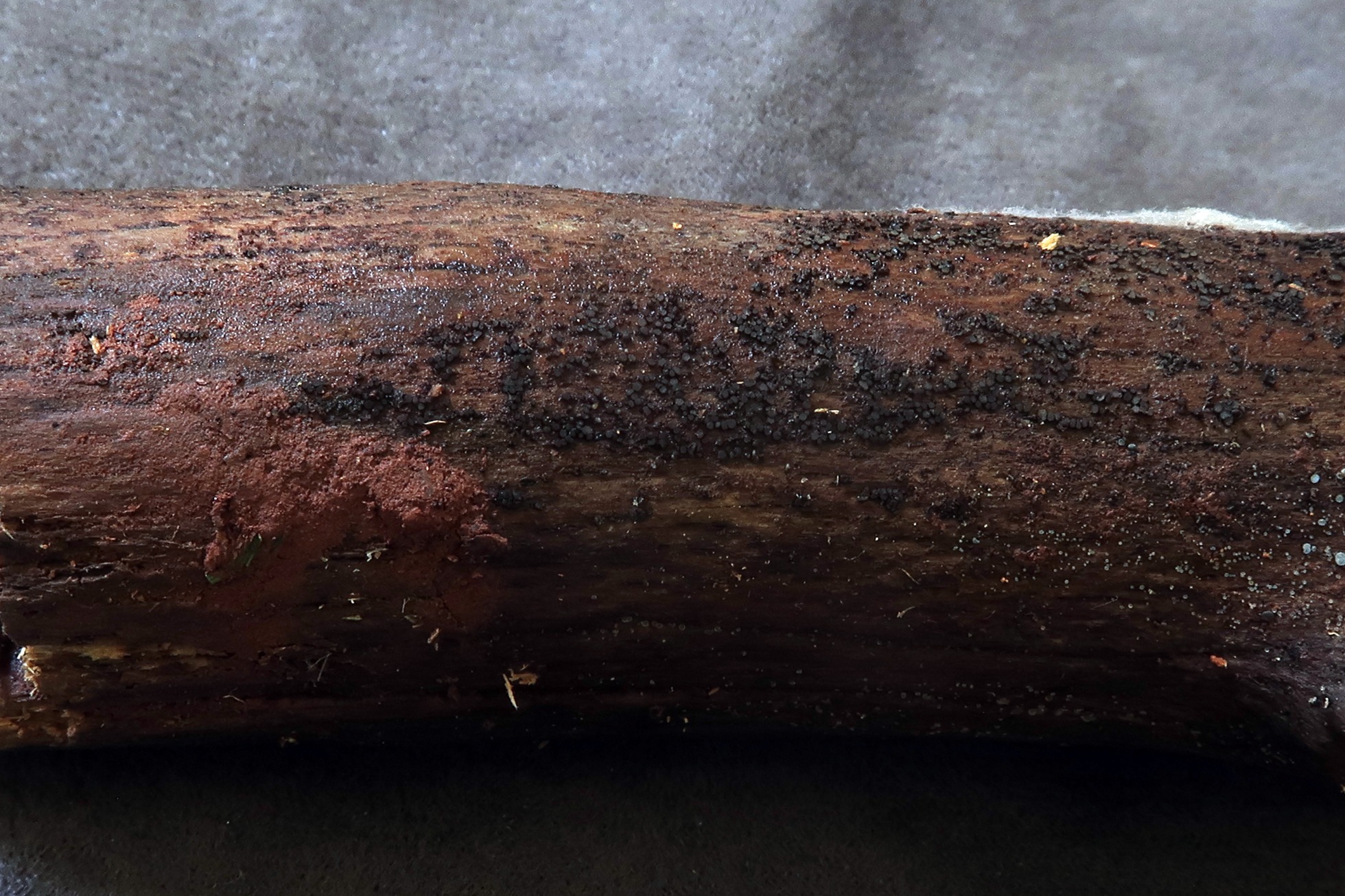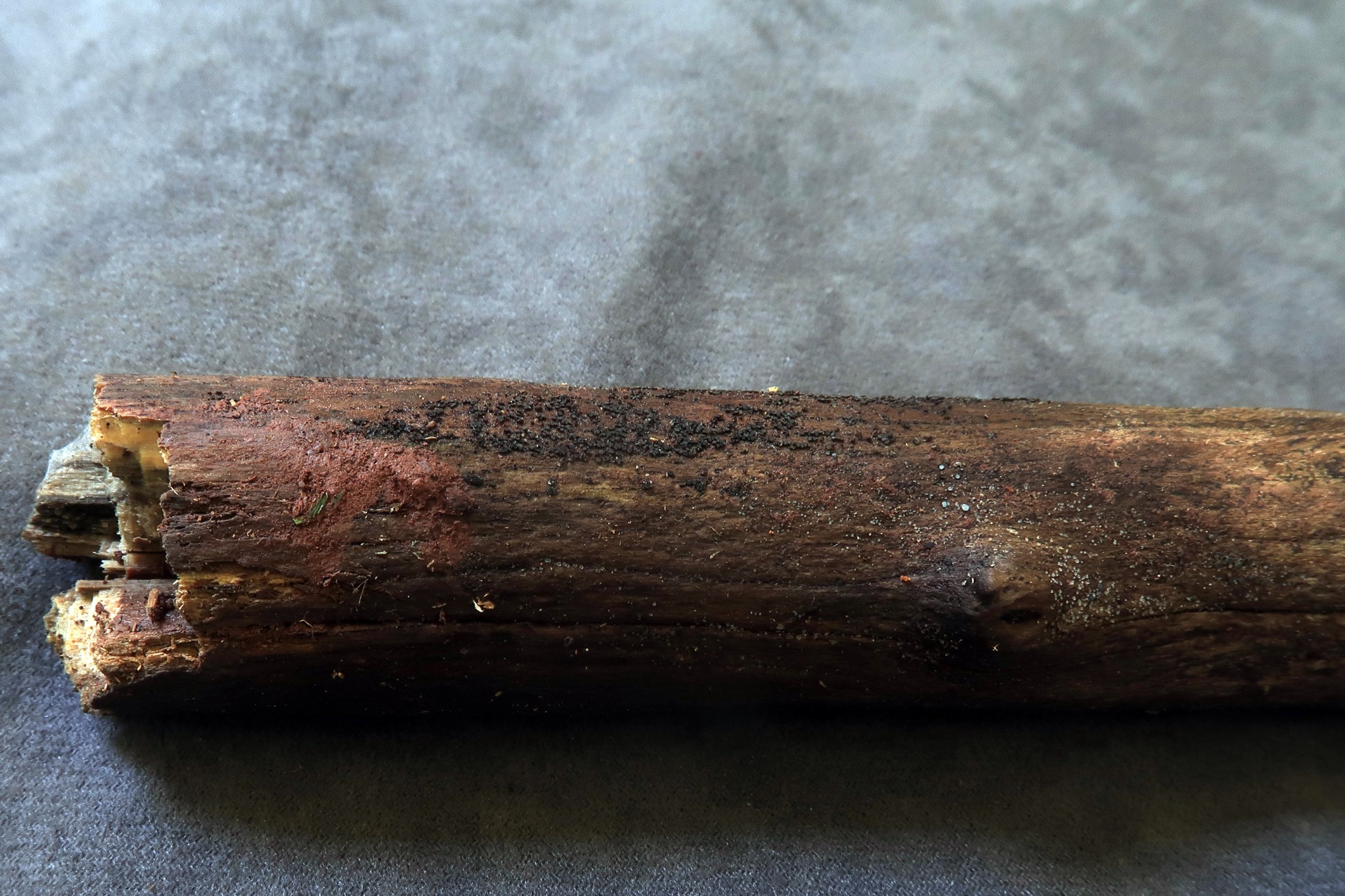 Un tronco recogido por Javier Mateos, en la zona de la selva de Oza, agradecer desde aquí al mismo por una vez más, permitirme sacar imágenes de la especie y poder llevar a cabo la microscopía.