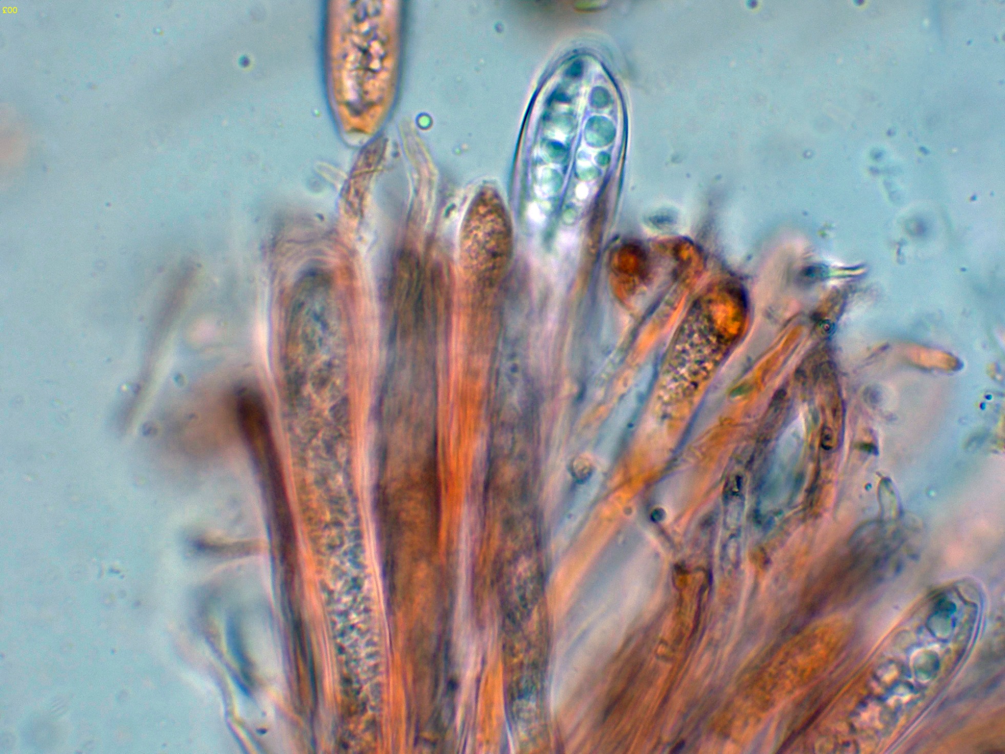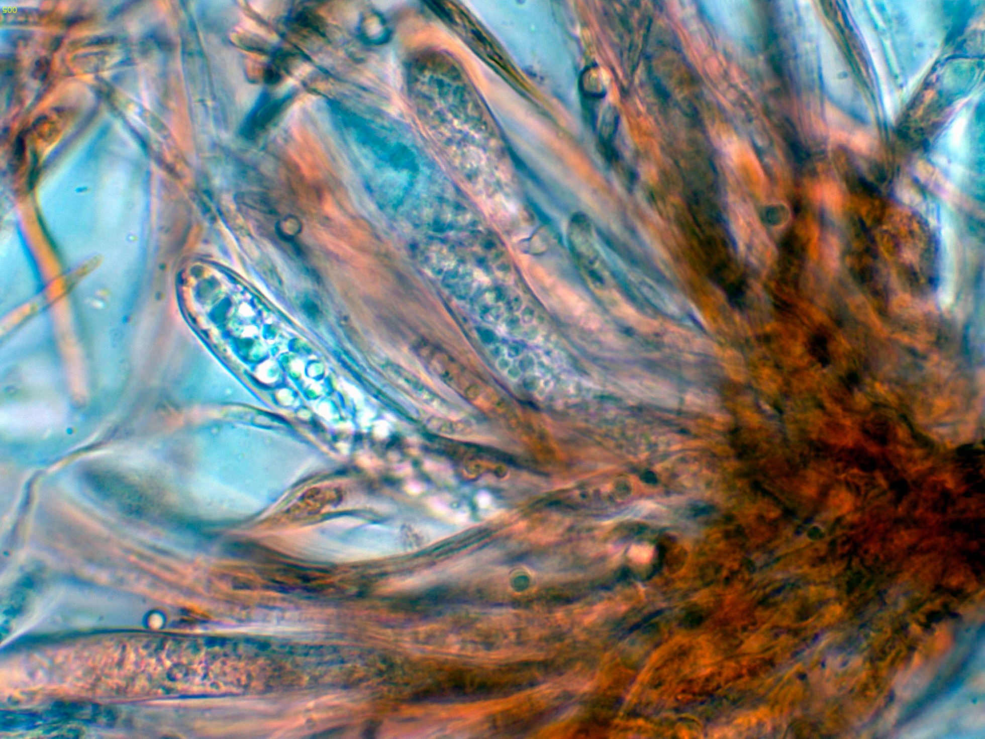 Repasando el trabajo de Baral sobre el género Durella, me encuentro con dos estudios, ambos bajo el mismo nombre, ambos como Durella macrospora, una especie poco o mal definida ya que en un estudio la describen con IKI (+) y en el otro con IKI (-), aunque en este caso ya encajan perfectamente las medidas esporales.