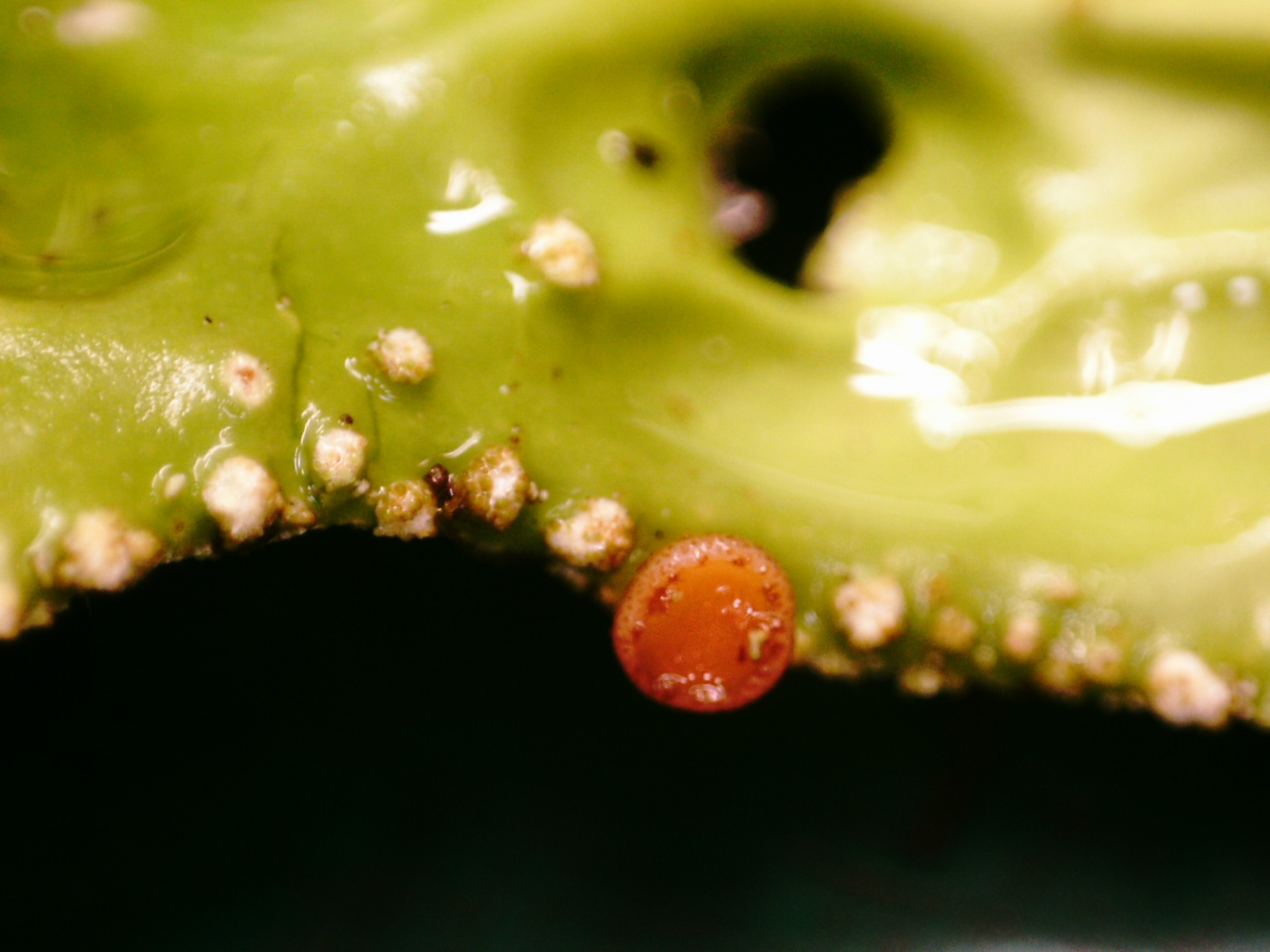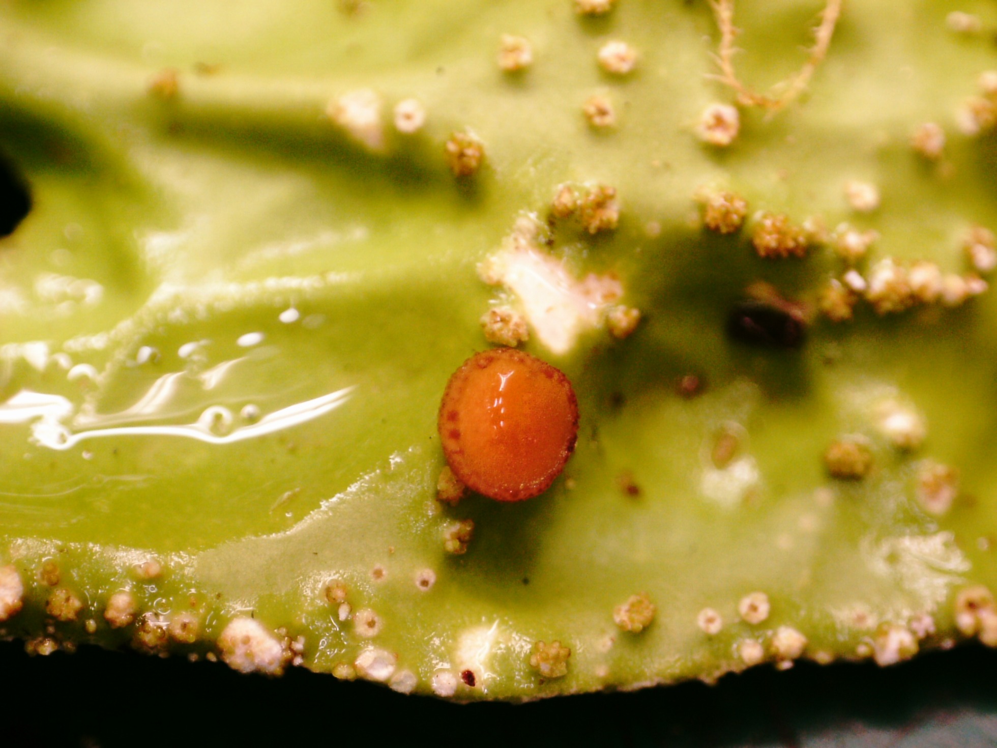 Los apotecios del ascomiceto simbionte a 20 aumentos.