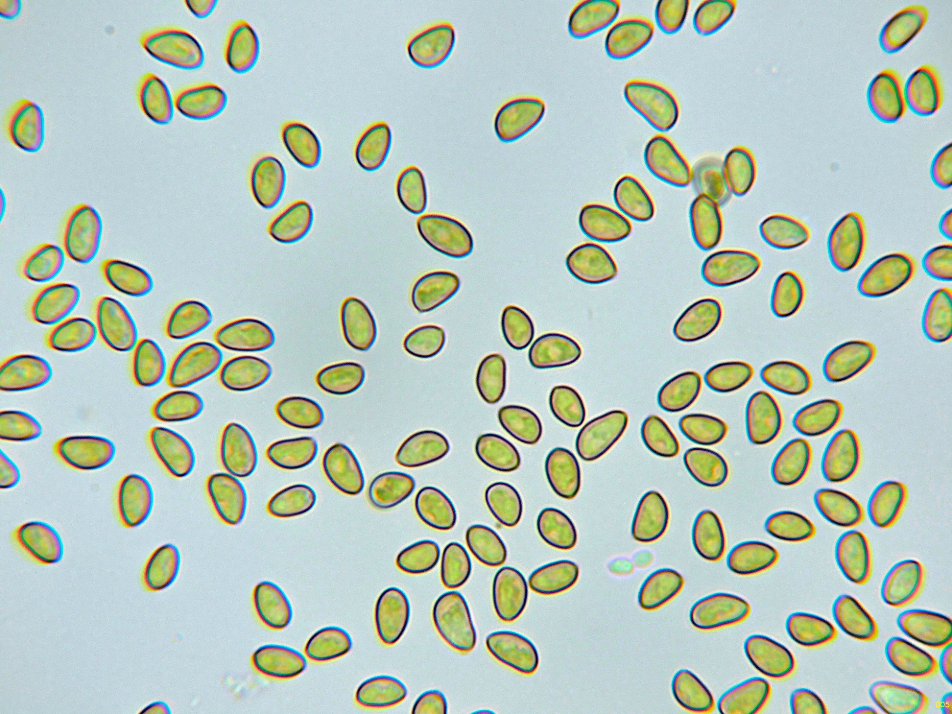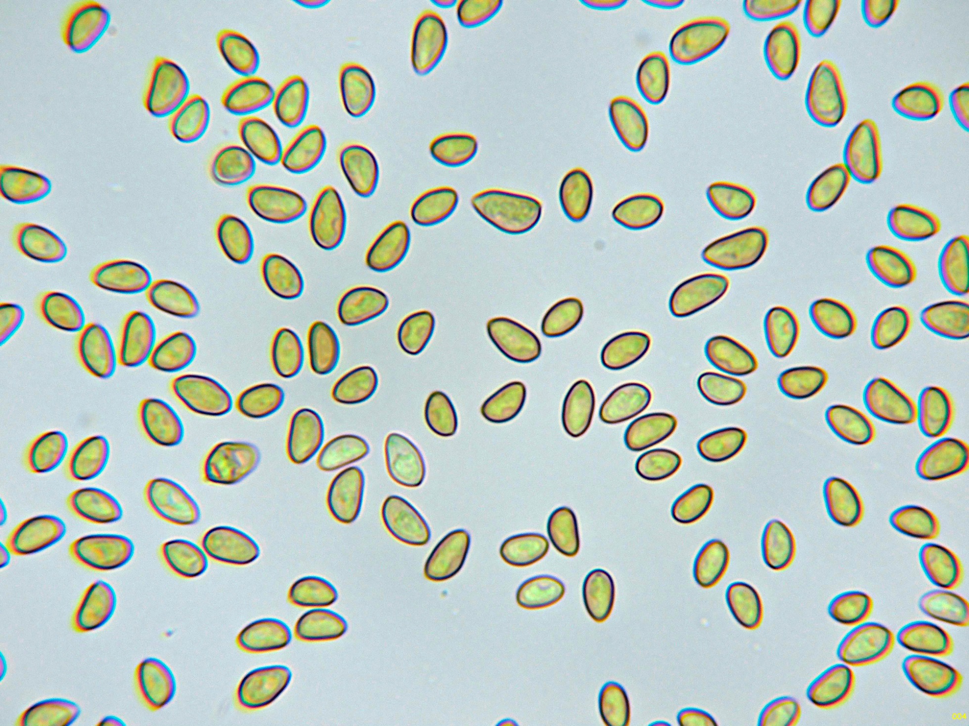 Las esporas en Reactivo de Melzer, con reacción moderadamente dextrinoide.