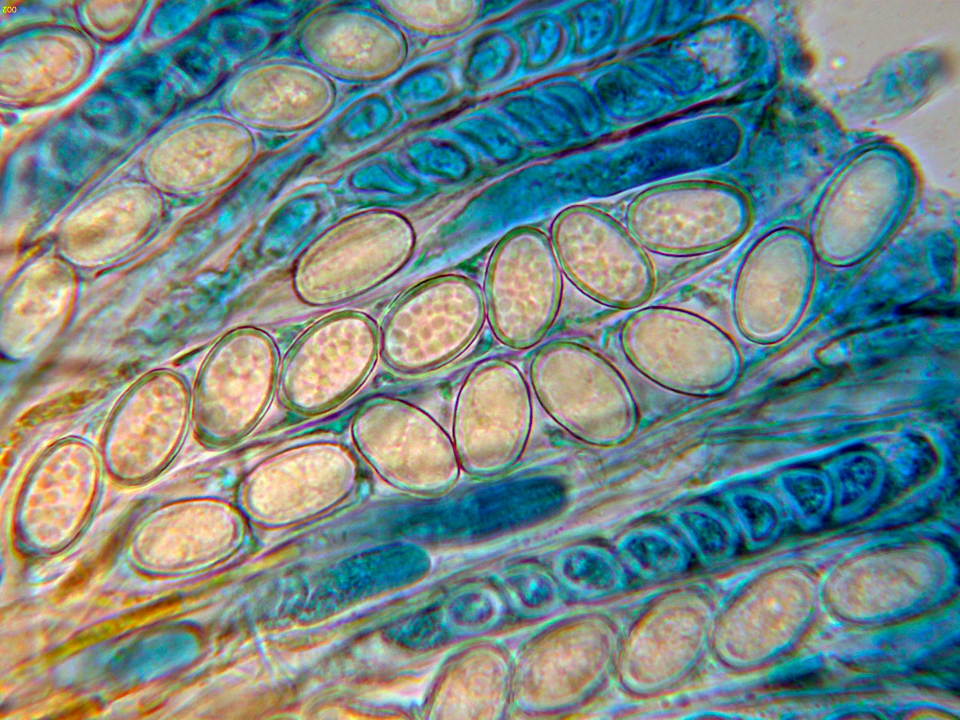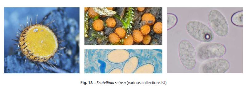 Determinación hecha siguiendo el criterio de las Claves para las Scutellinias Europeas de "Hongos y Líquenes de gran Bretaña e Irlanda" que con apotecios de 0.5-1.5 (-2.5) mm. y con esporas de 18-21 x 10-12 µm. conducen a la Scutellinia setosa propuesta, también las Claves de Beñat Jeannerot de 2019, con apotecios pequeños, amarillos, sobre madera decorticada y esporas lisas conducen a la misma propuesta.