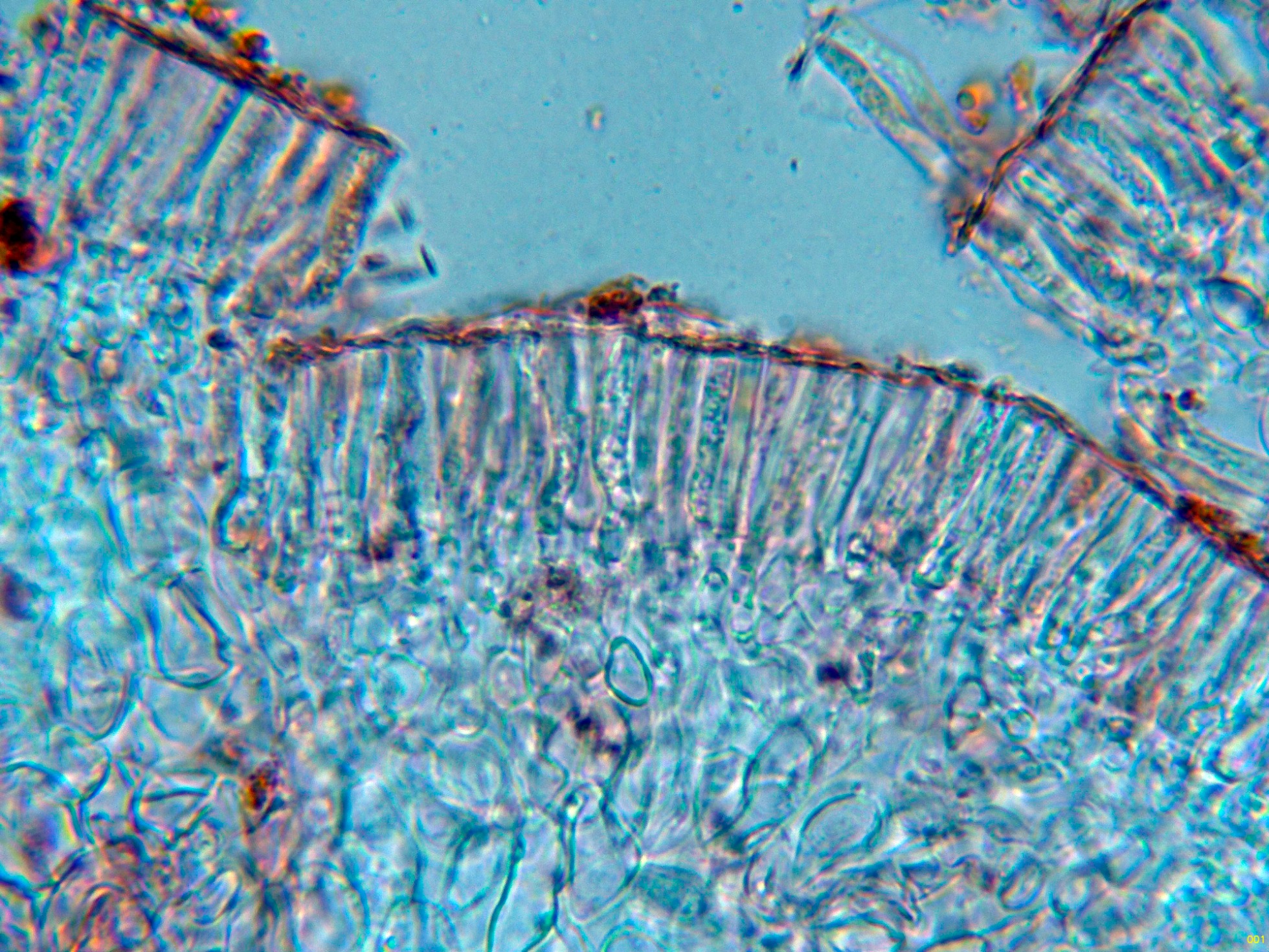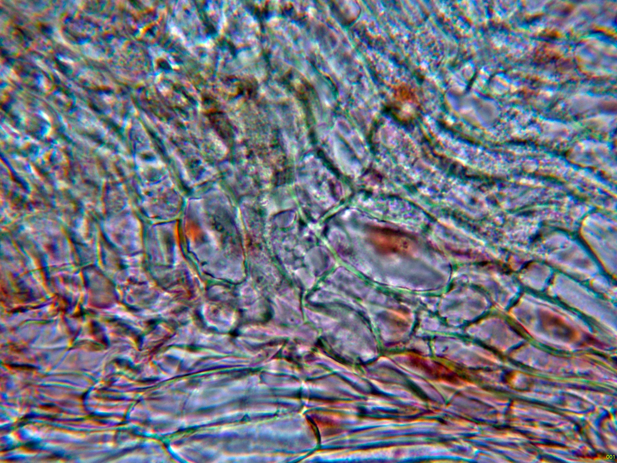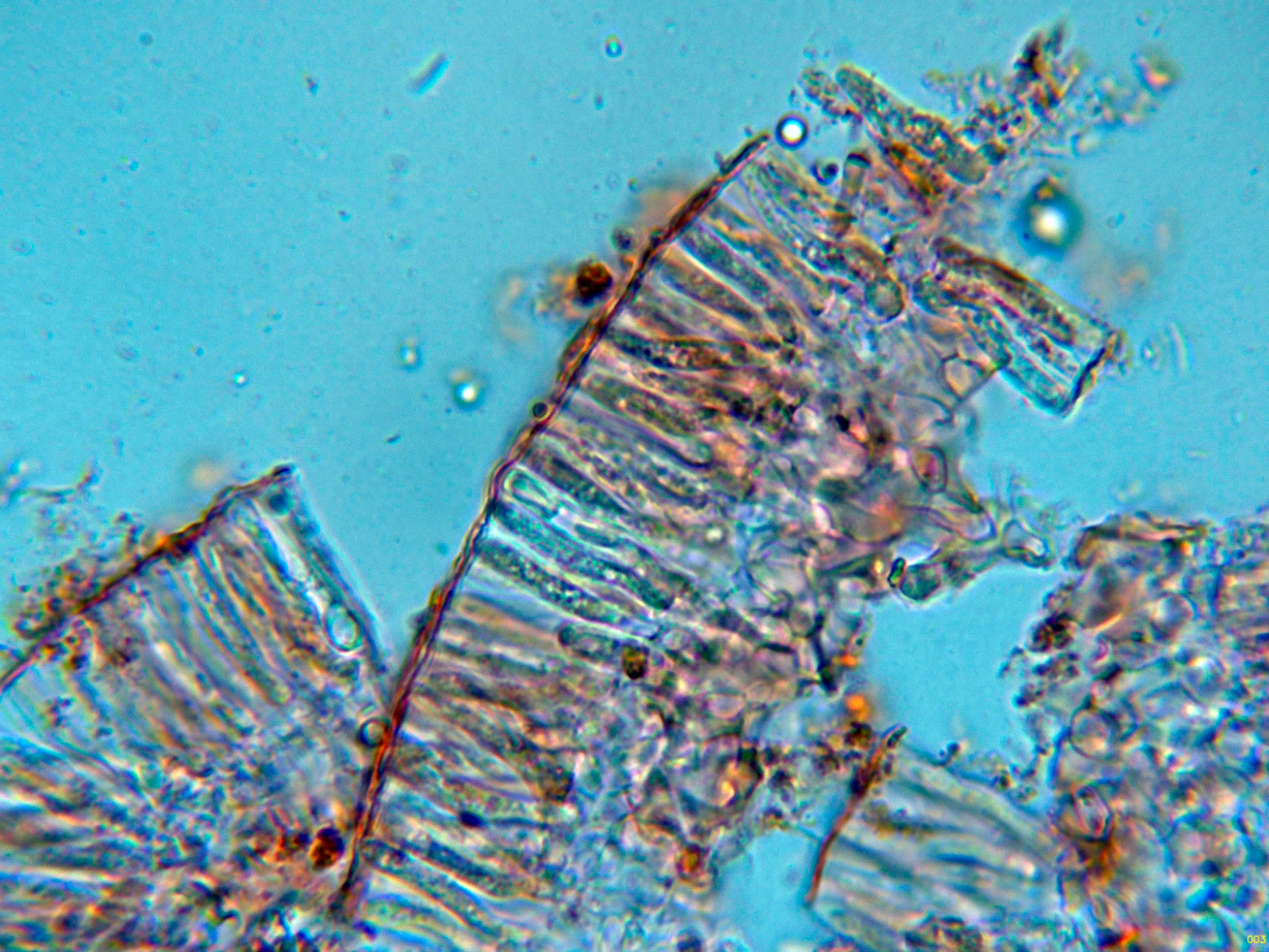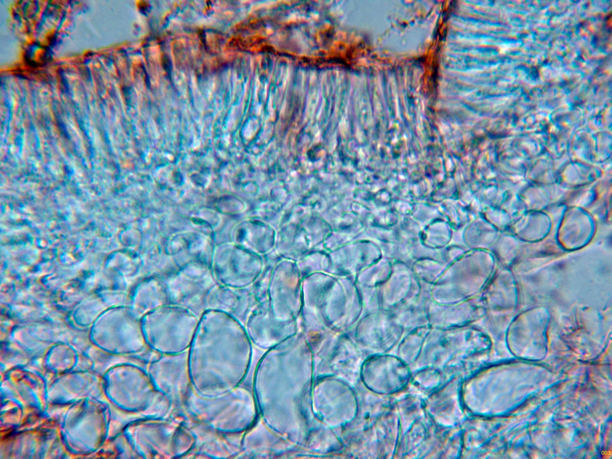 Una ampliación de la base de los ascos, en la imágen parece apreciarse uncínulos, esta característica la separaría de Orbilia, con la base de los ascos con septos simples.