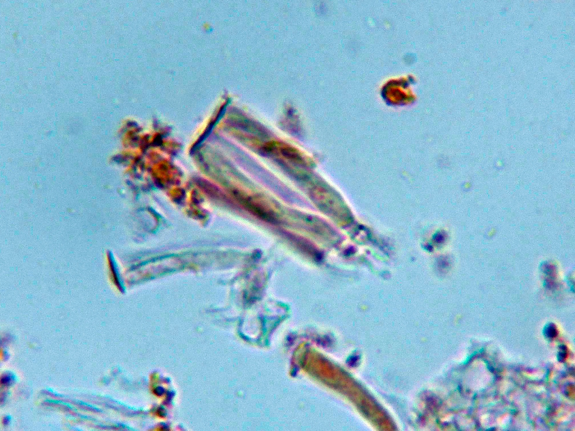 Los ascos con su característica capa de gel congófila.