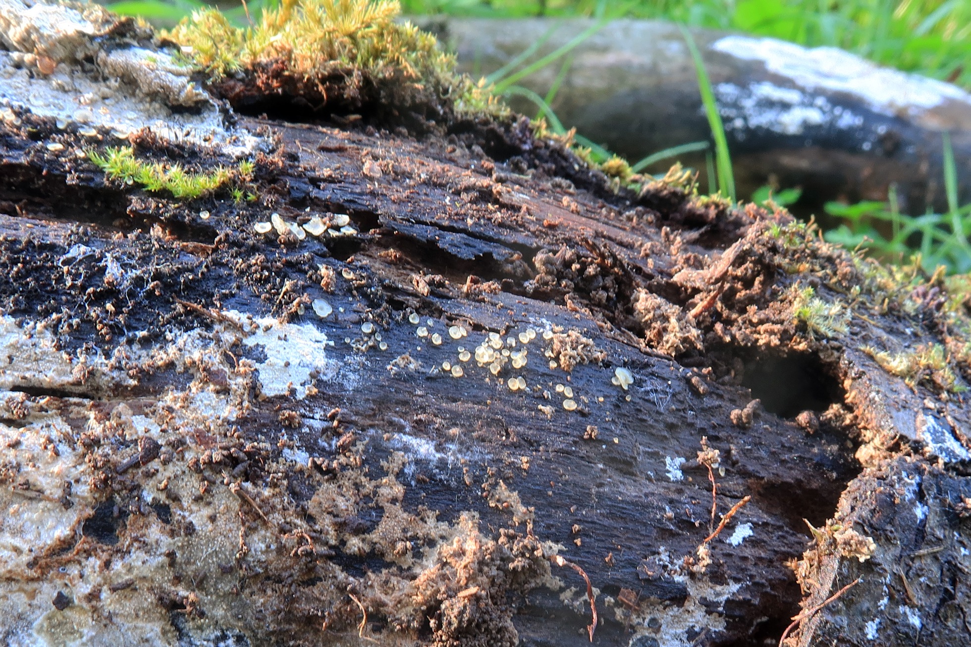 Sobre la superficie de un tronco decorticado del suelo, en un punto donde predominaban las hayas.