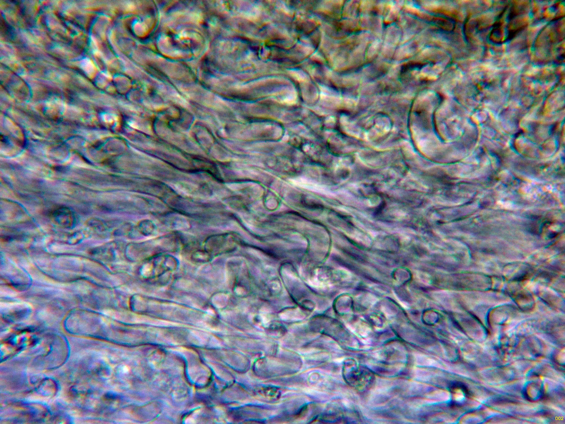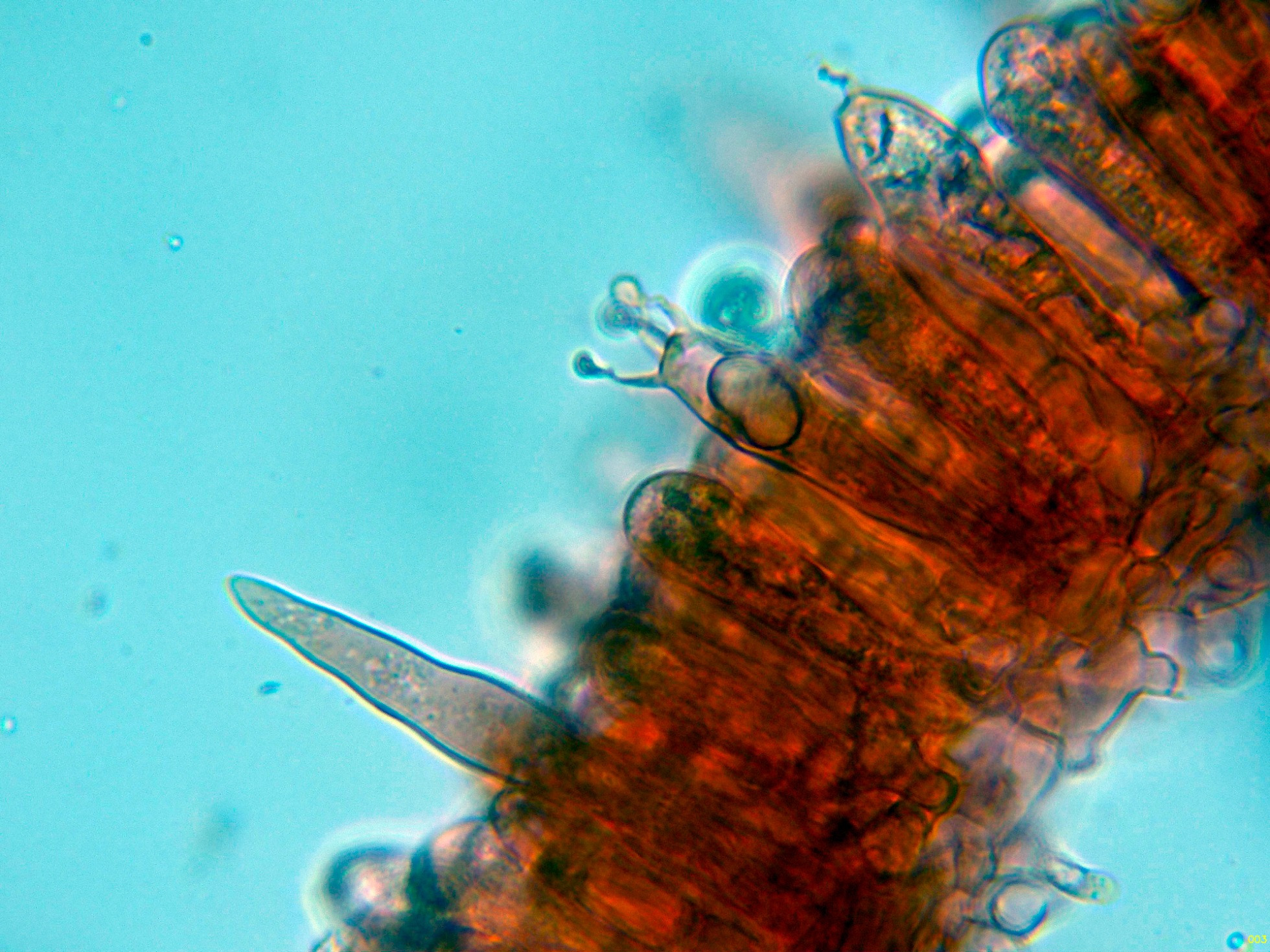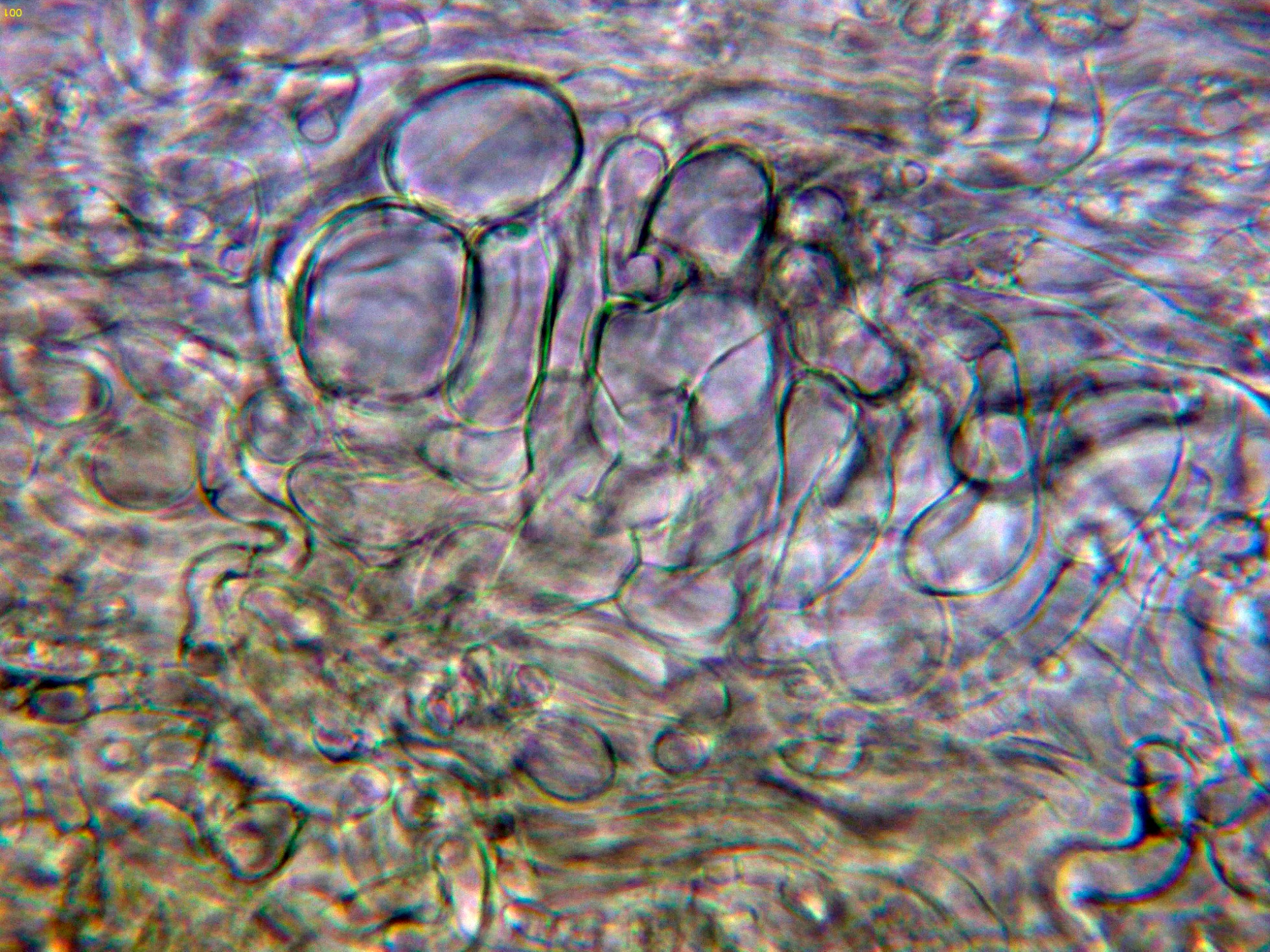 Junto a estas ya se podían observar una buena cantidad de esferocistos, hifas típicas de los Russulales.