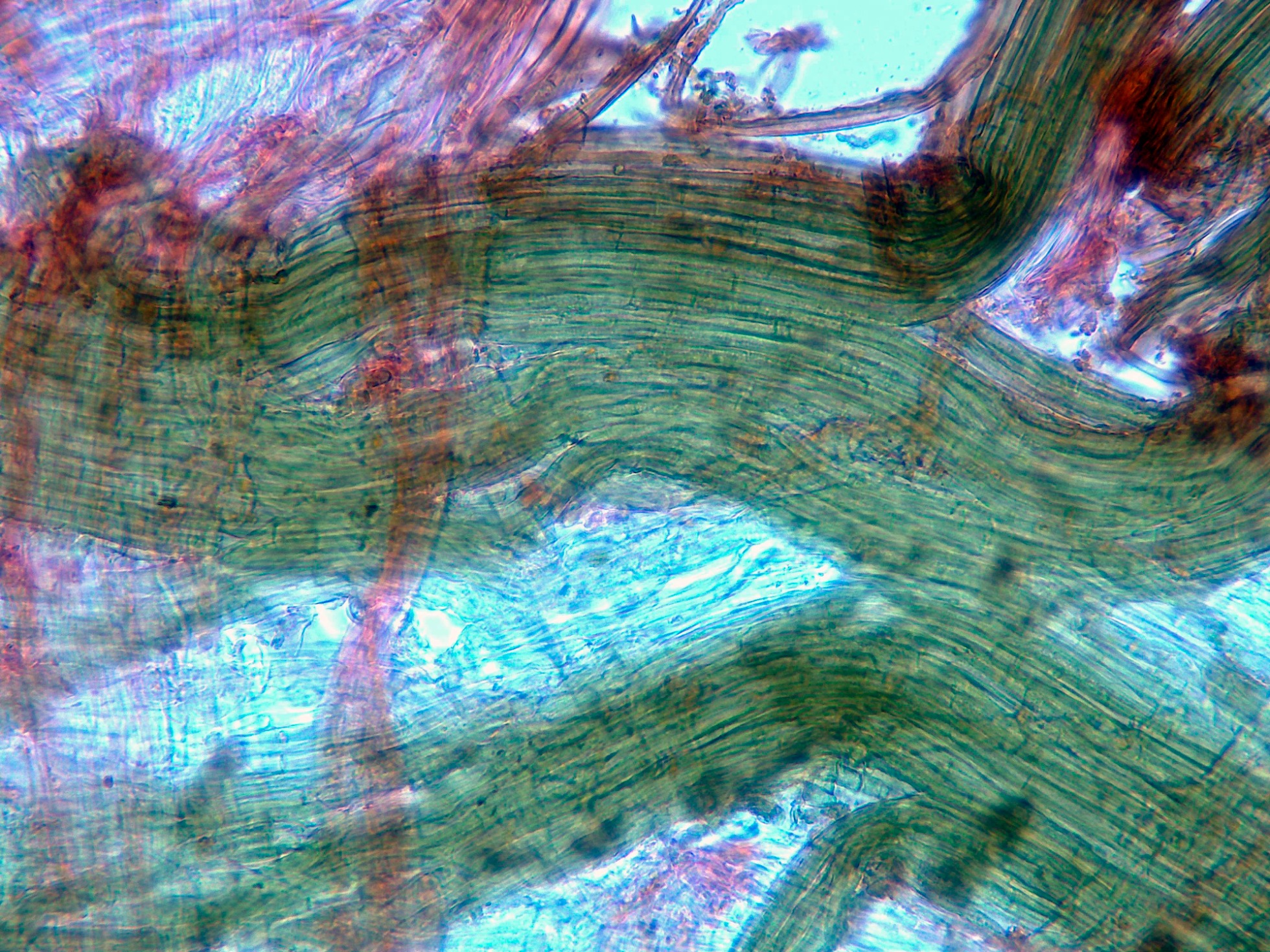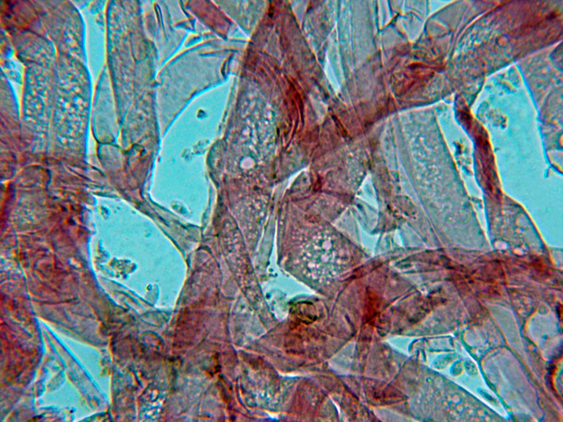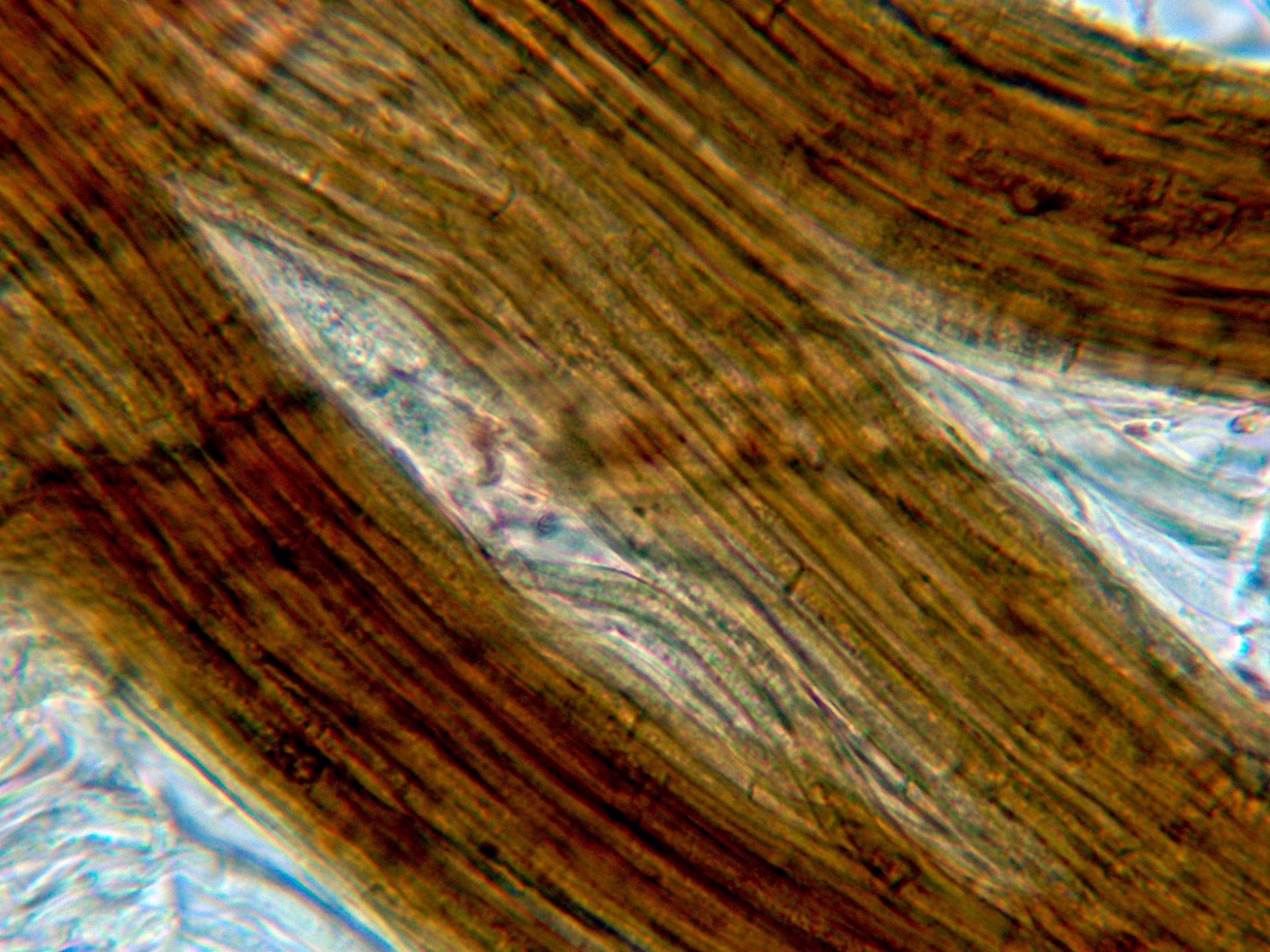 Hifas de la suprapellis a 1000 aumentos, donde si que se pueden apreciar fíbulas.