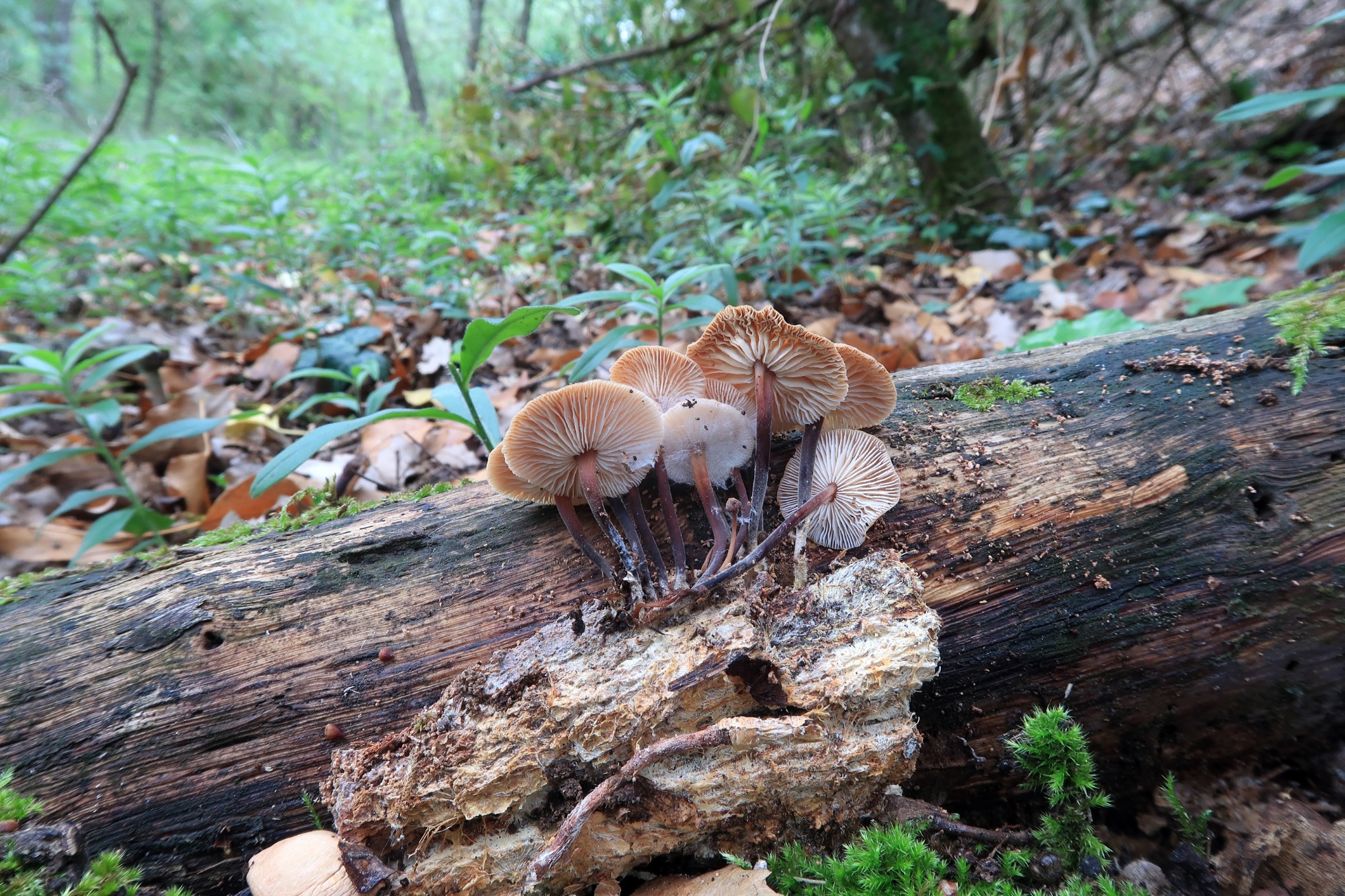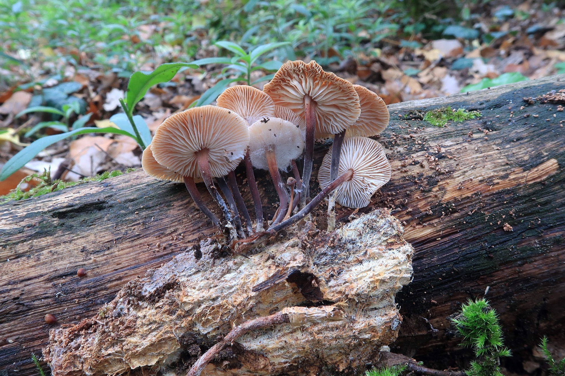 Unos Gymnopus fotografiados el 11 de junio de este año, brotando directamente sobre la superficie de un tronco tumbado del suelo, por la misma zona en ocasiones anteriores me había encontrado con el Gymnopus foetidus, como no me encajaba su aspecto a nivel macroscópico, decidí recurrir a la microscopía, como me surgieron algunas dudas, decidí como de costumbre recurrir al análisis molecular, la secuenciación del gen ITS determinó que se trataba con una coincidencia del 100% de Micromphale brassicolens DQ449989.