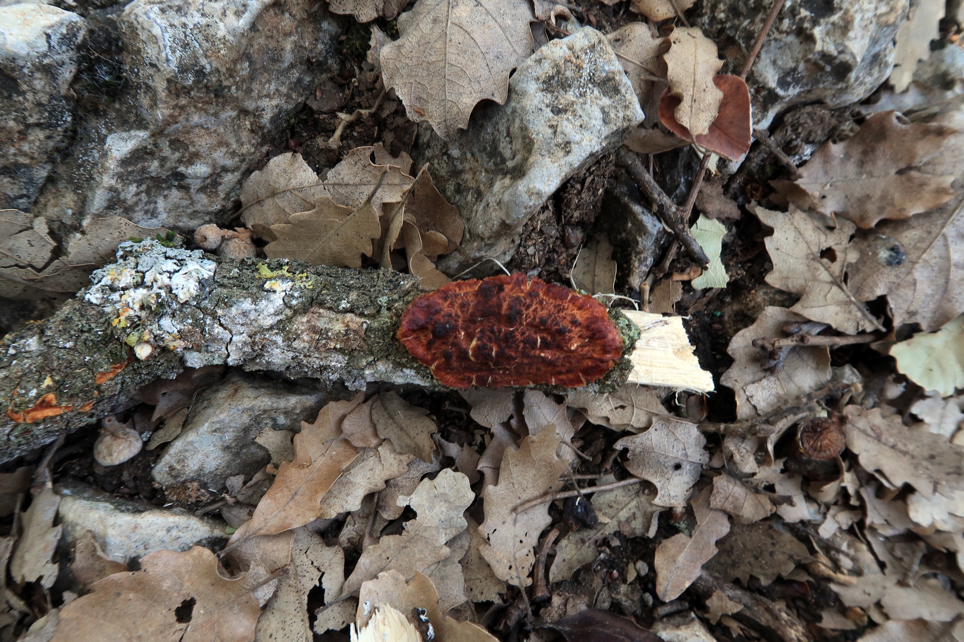 Un Corticial con aspecto de Phlebia fotografiado el 20 de agosto de este año, sobre un pequeño tronco de roble.