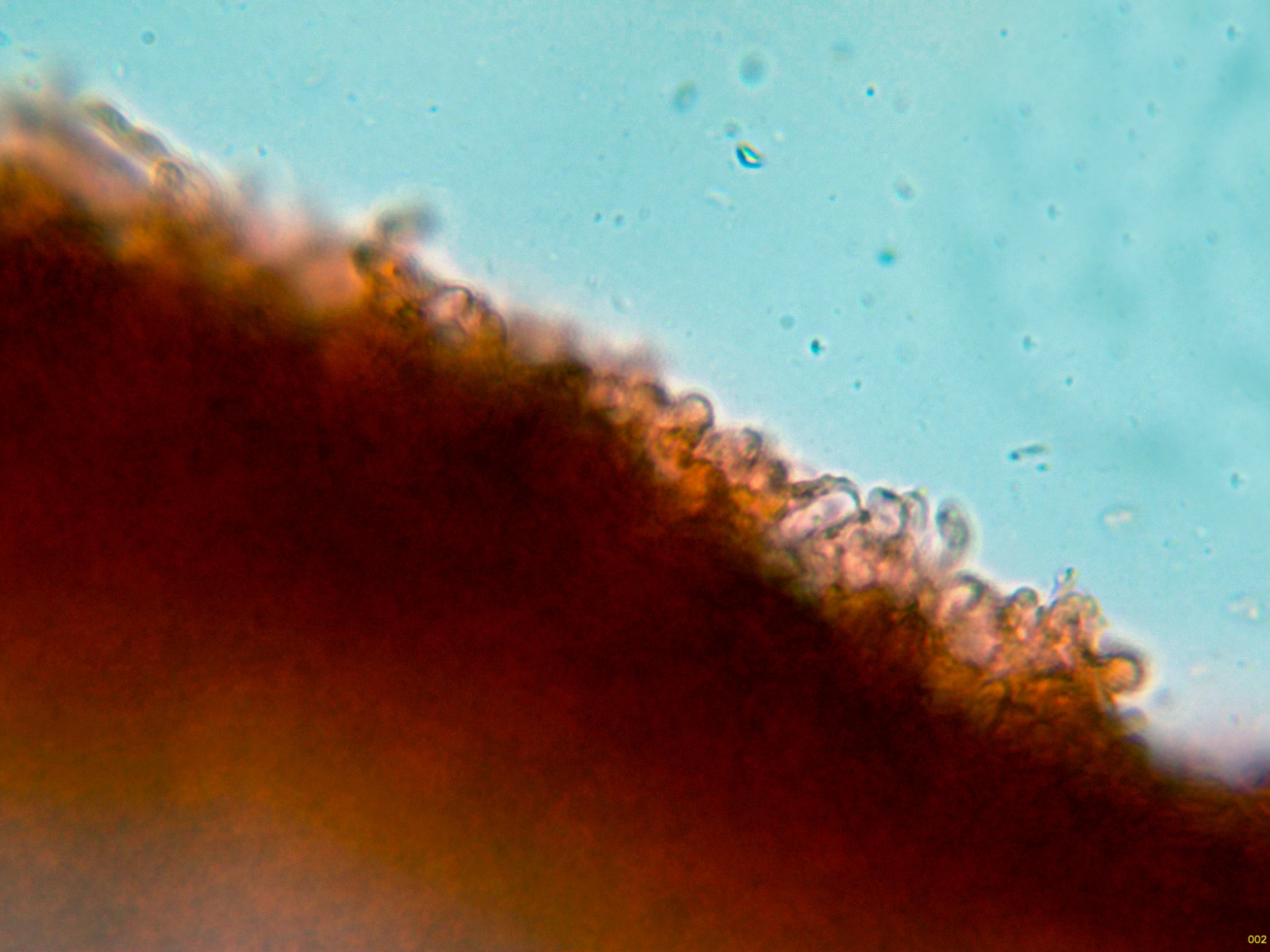 Las hifas del contexto por debajo del himenio, con fíbulas presentes.