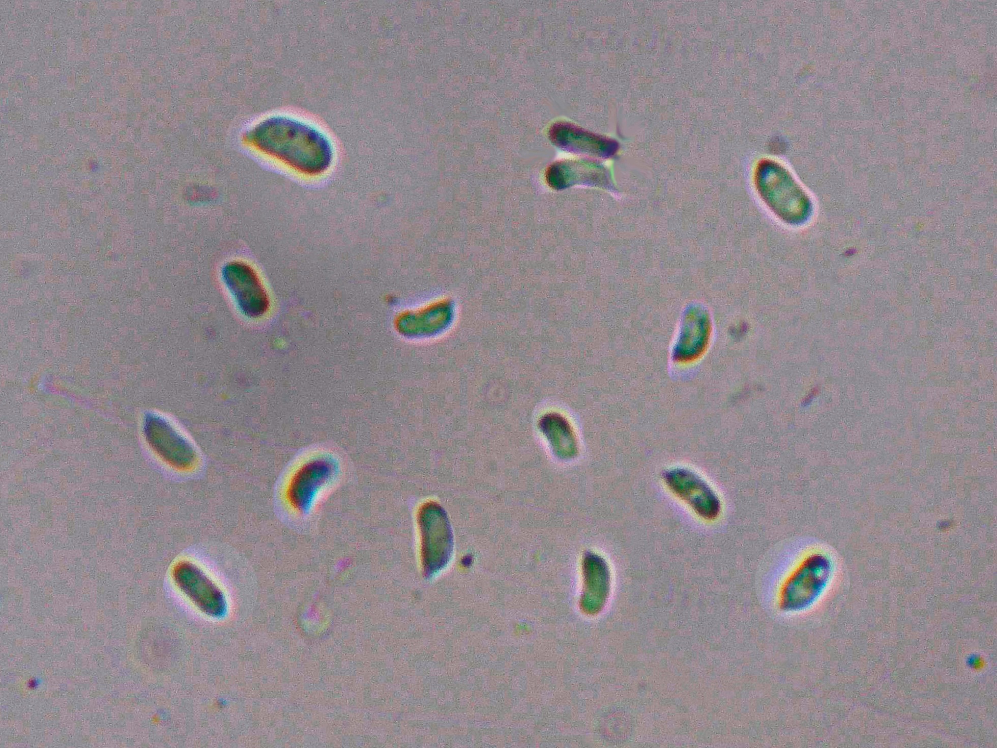 Por más que lo intenté, no pude obtener esporas por esporulación natural, añado una imágen de las pocas esporas libres observadas.