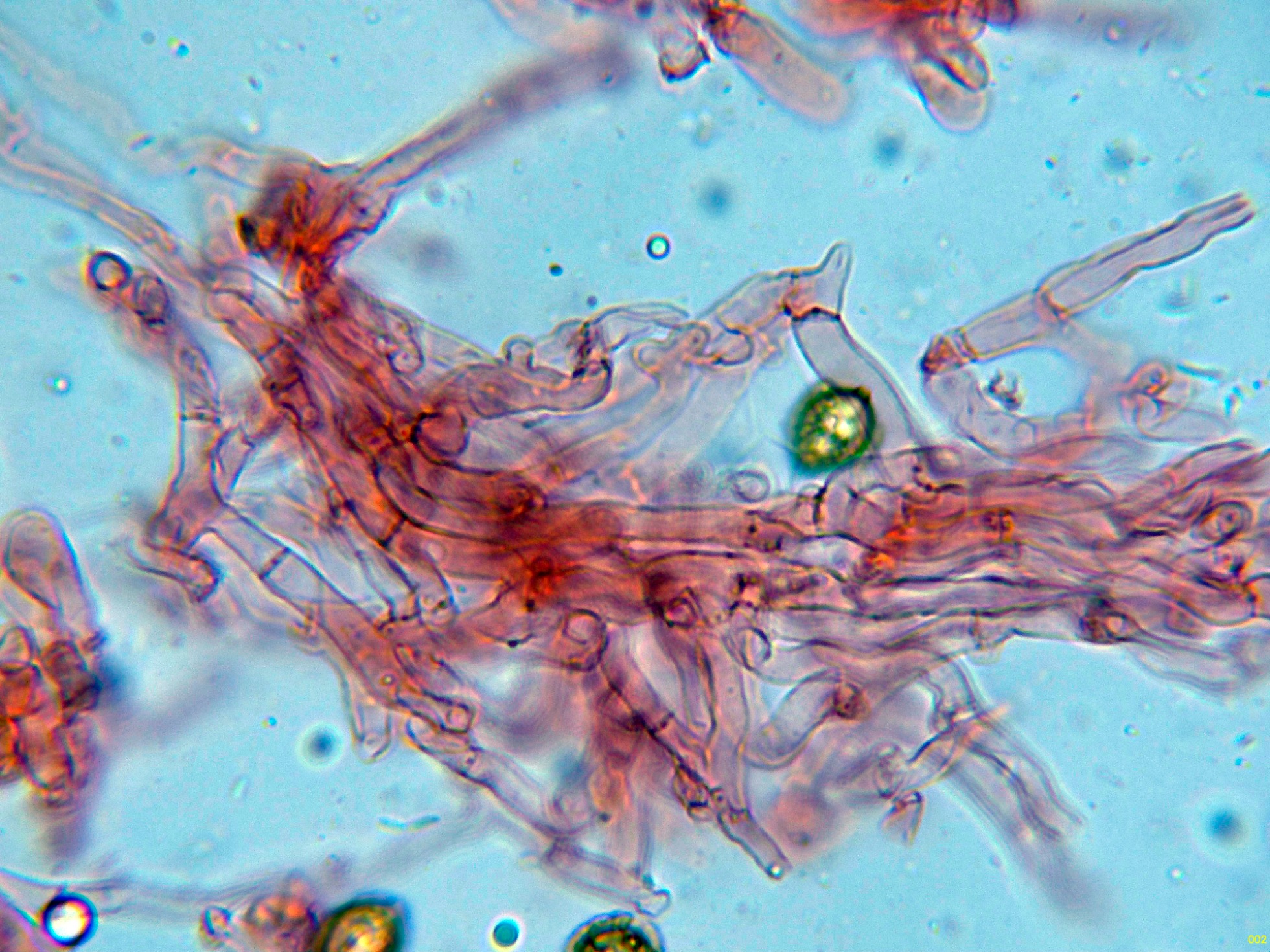 En algunas de estas hifas se pueden observar prominentes fíbulas.