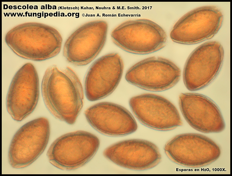 Observaciones: Estudio contrastado con la información del documento de Mycosphere 6 (5): pag. 620–629 de 2015 en el que se indican unas medidas esporales de (11–) 13–17 × 7–9 μm, con un cociente Q de 1.5 a 2, totalmente acordes con mis mediciones sin contar la ornamentación.