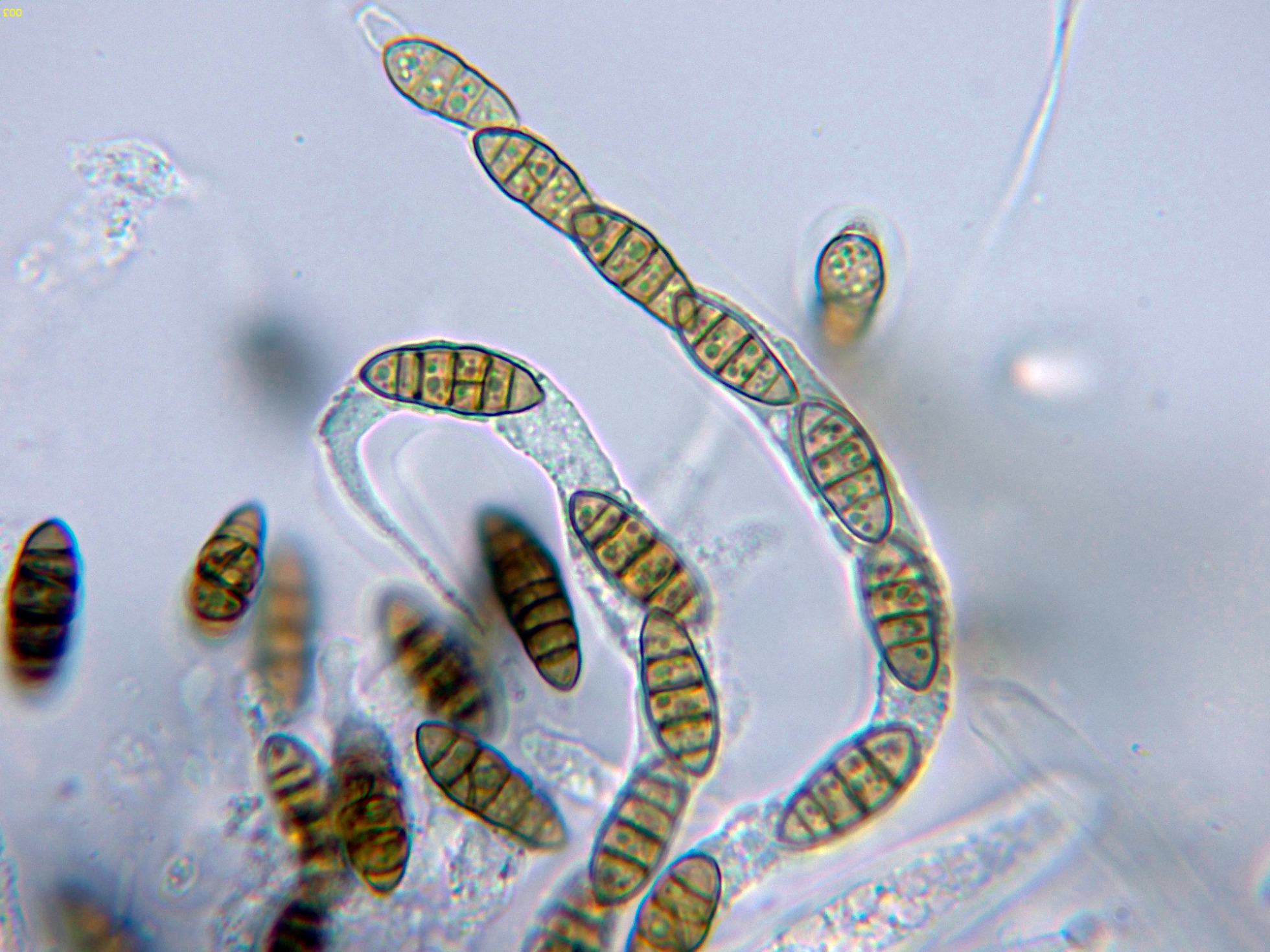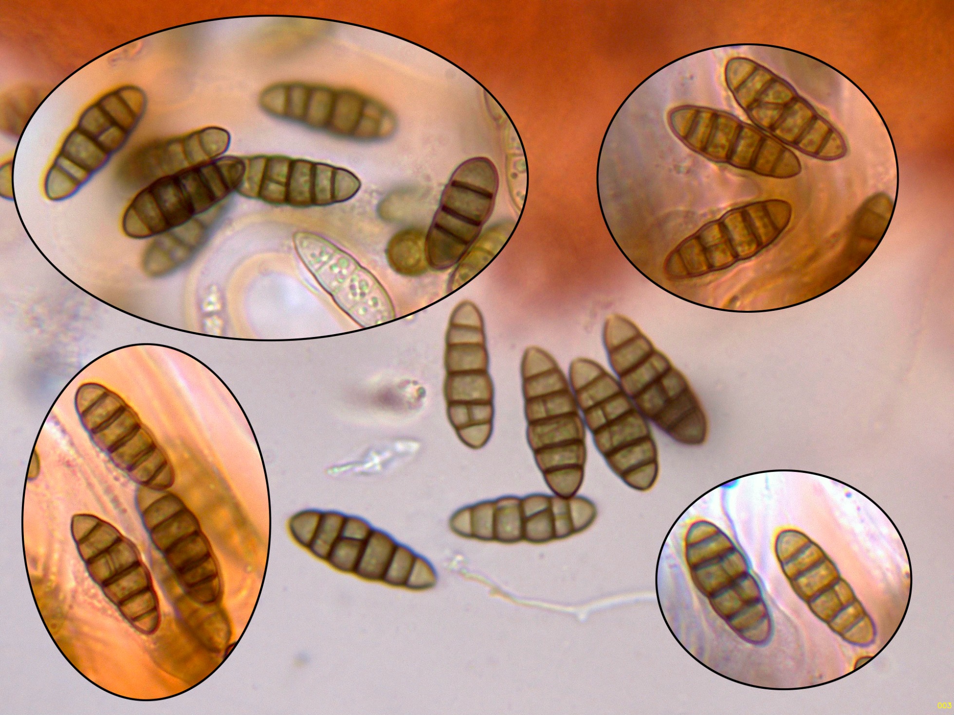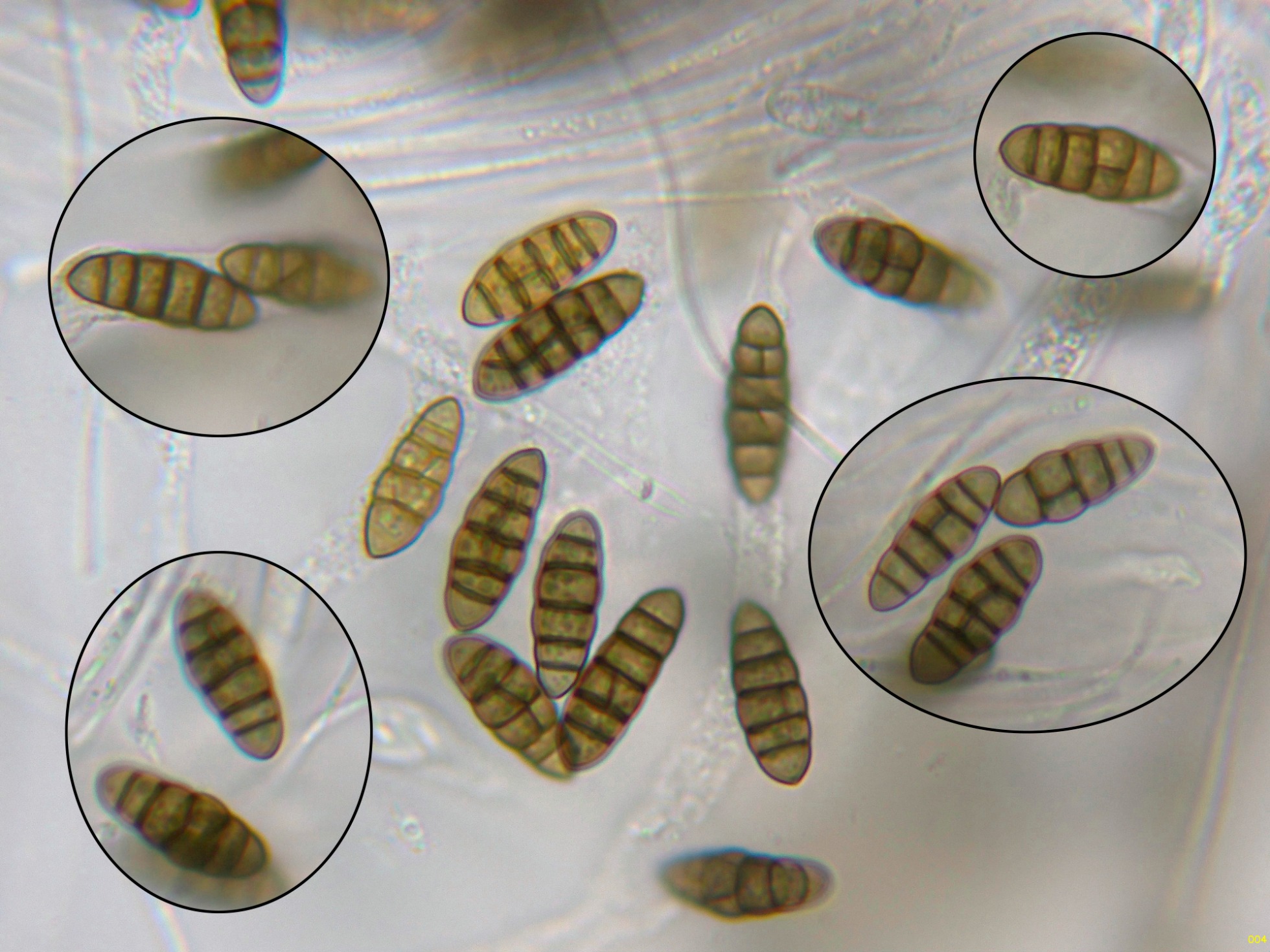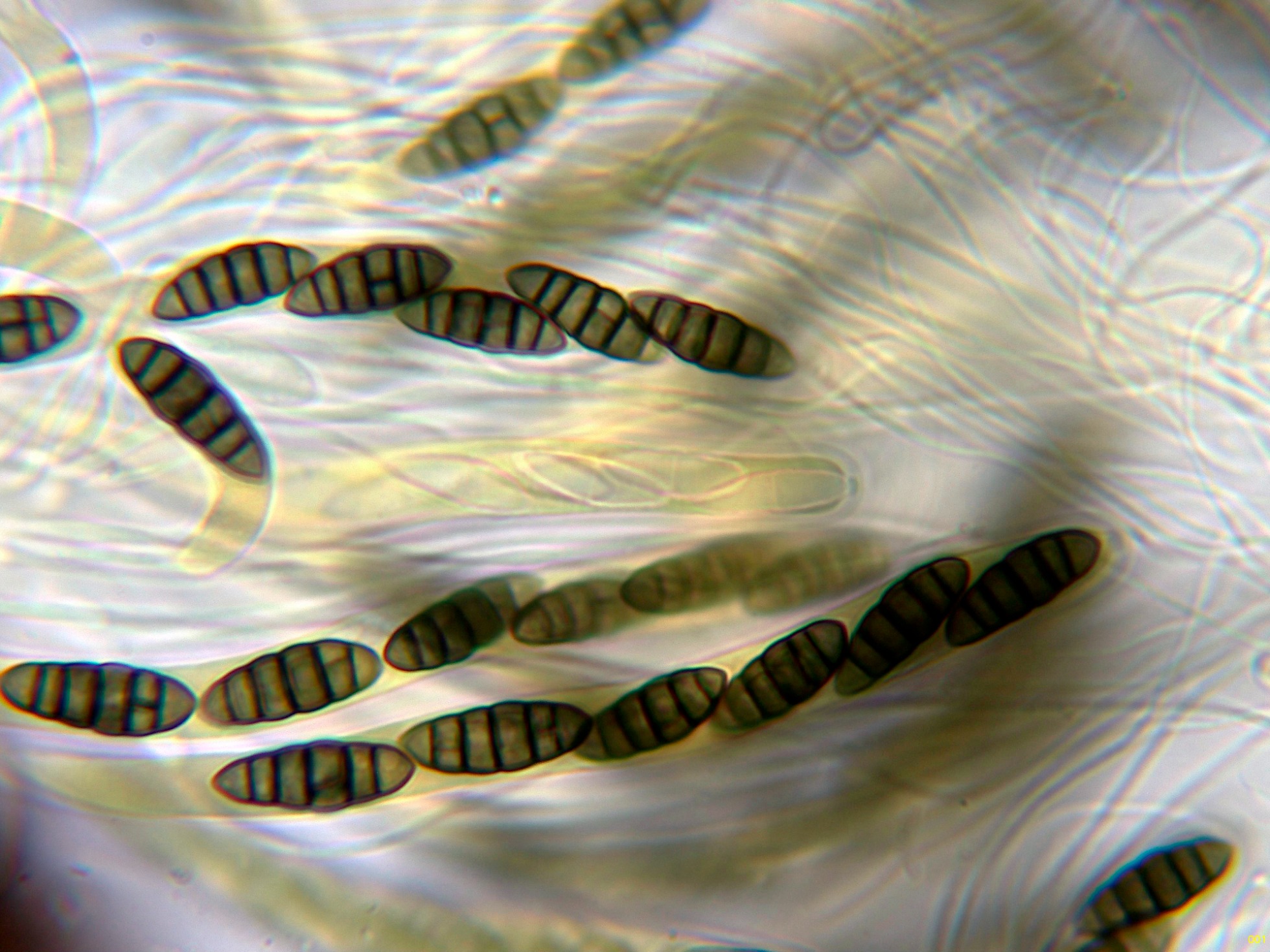 Después de unos días en incubadora, soltó algunas esporas por esporulación natural, dejo una composición de las pocas esporas observadas.