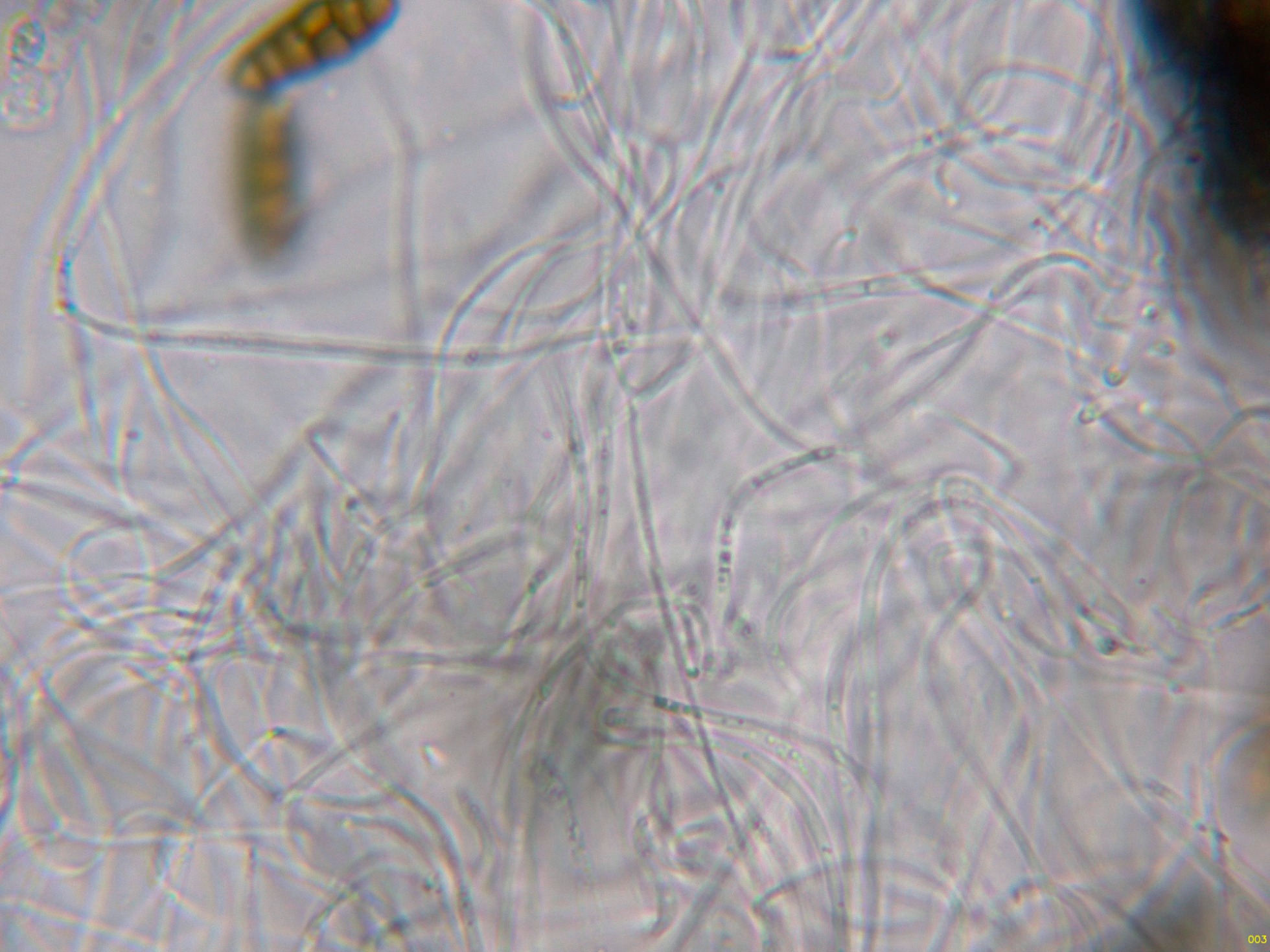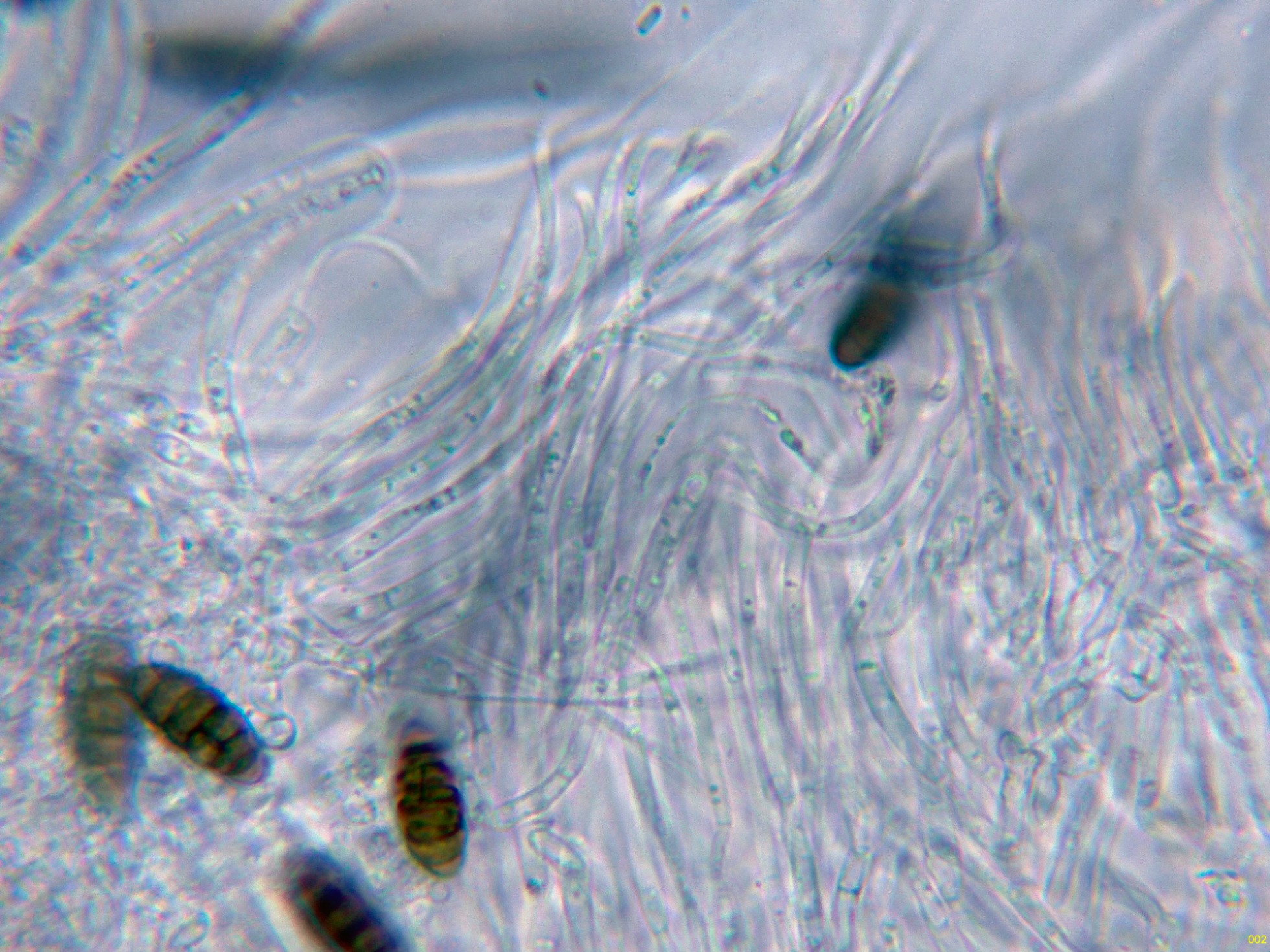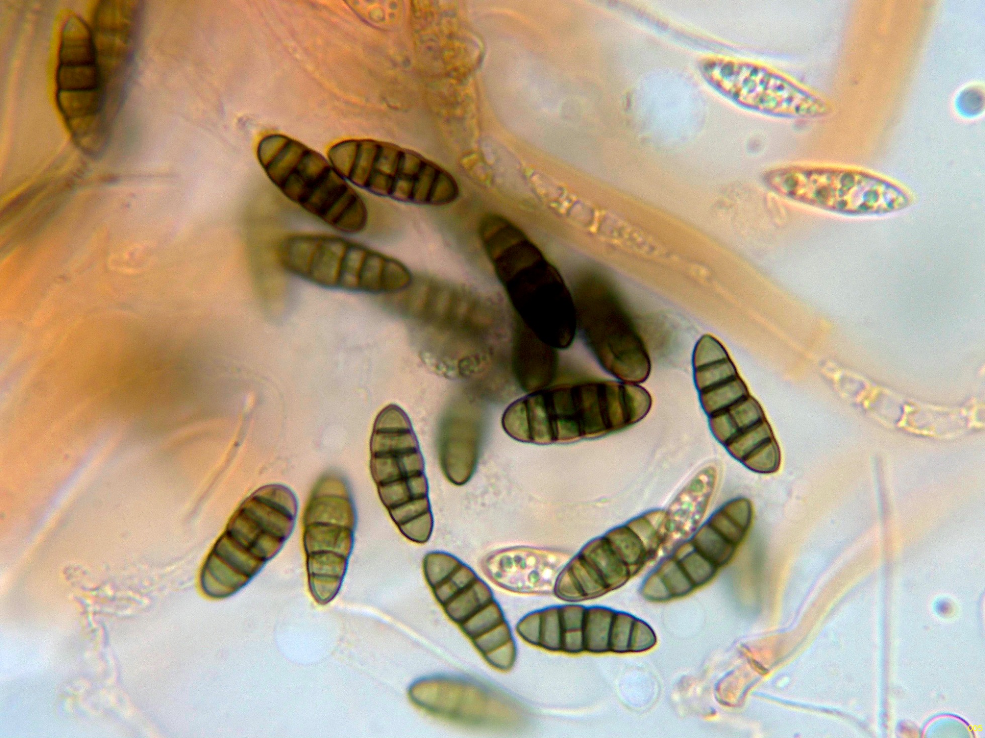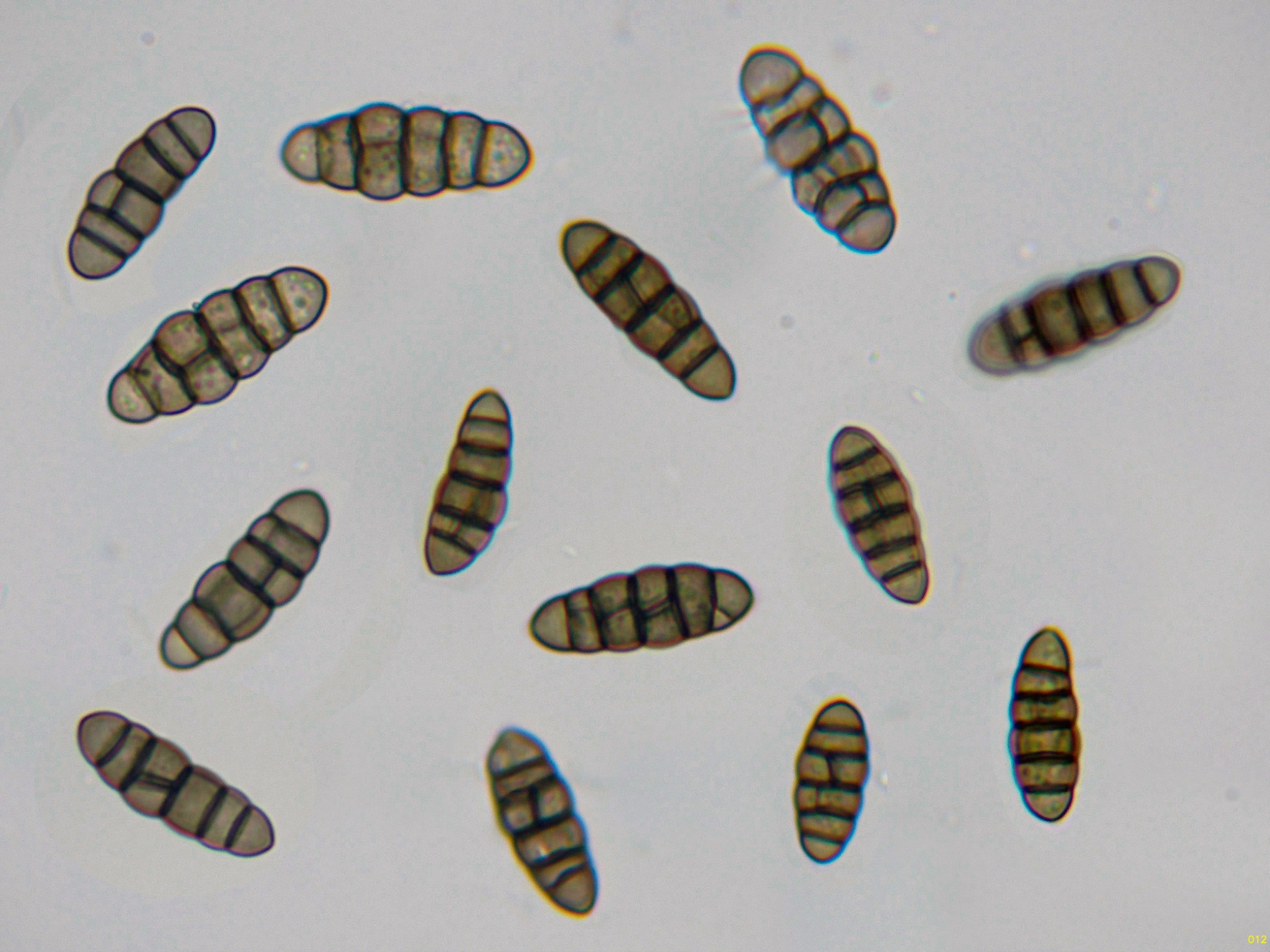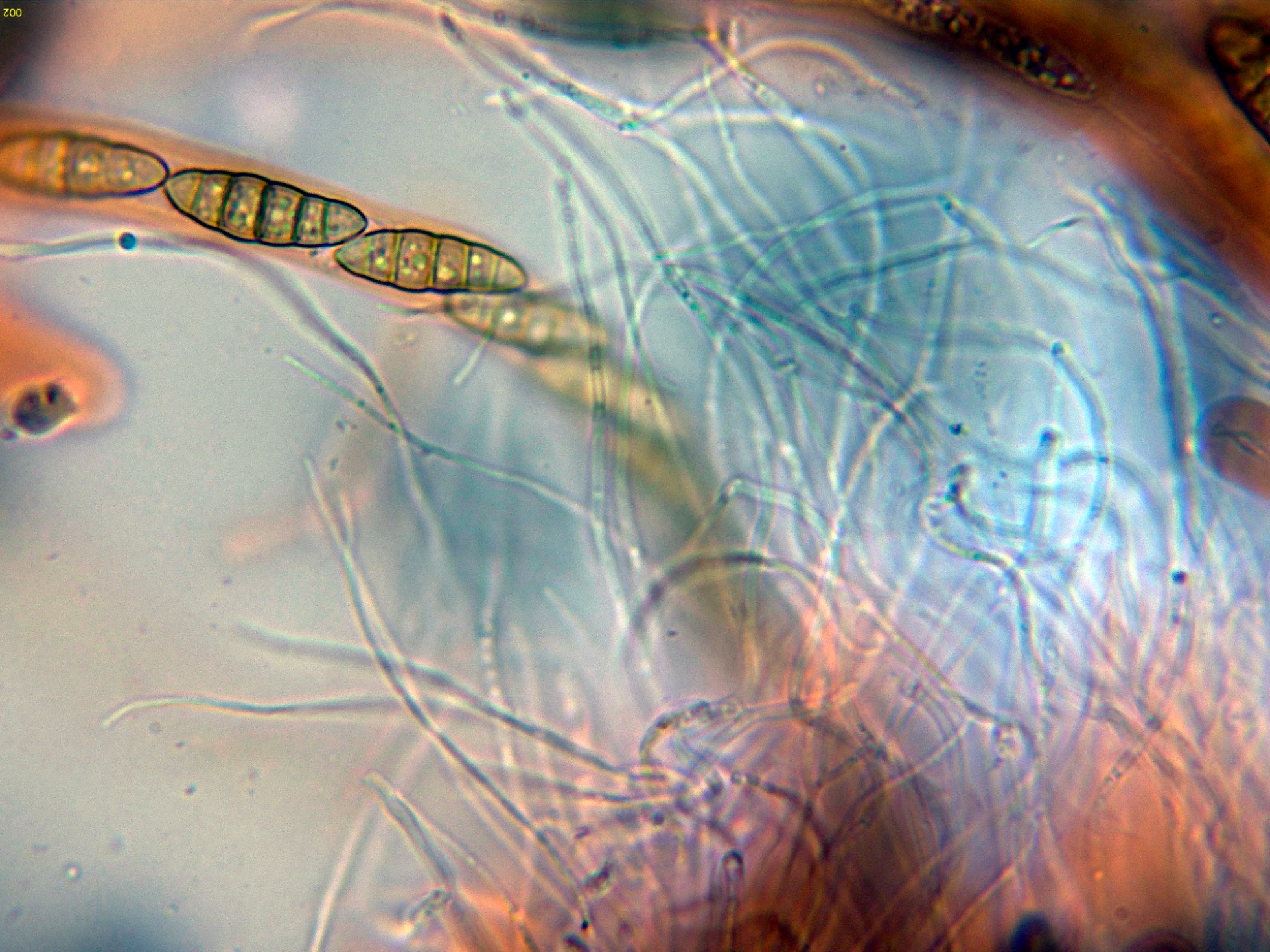 Después de unos días en incubadora, soltó algunas esporas por esporulación natural, dejo una composición de las pocas esporas observadas.