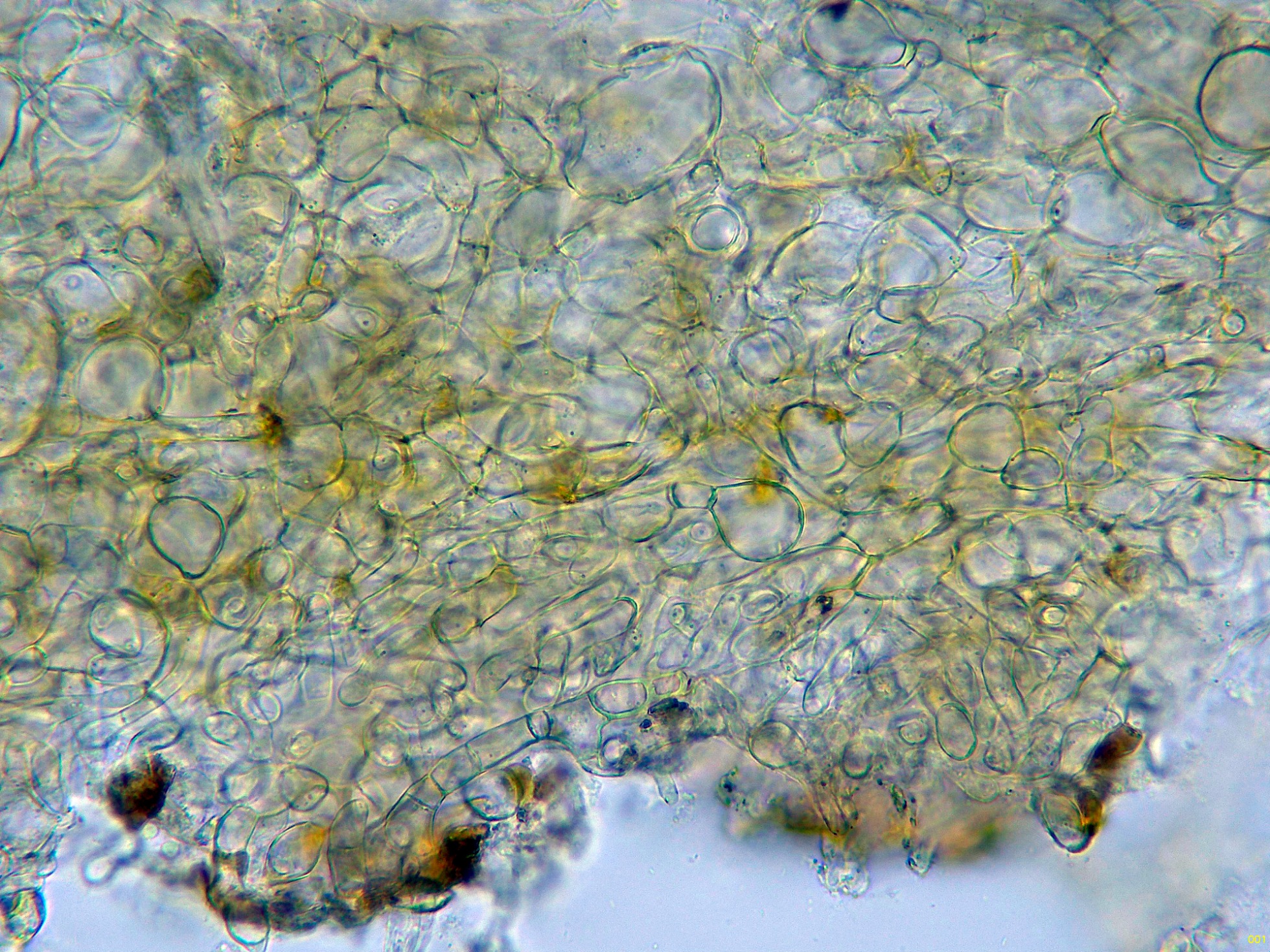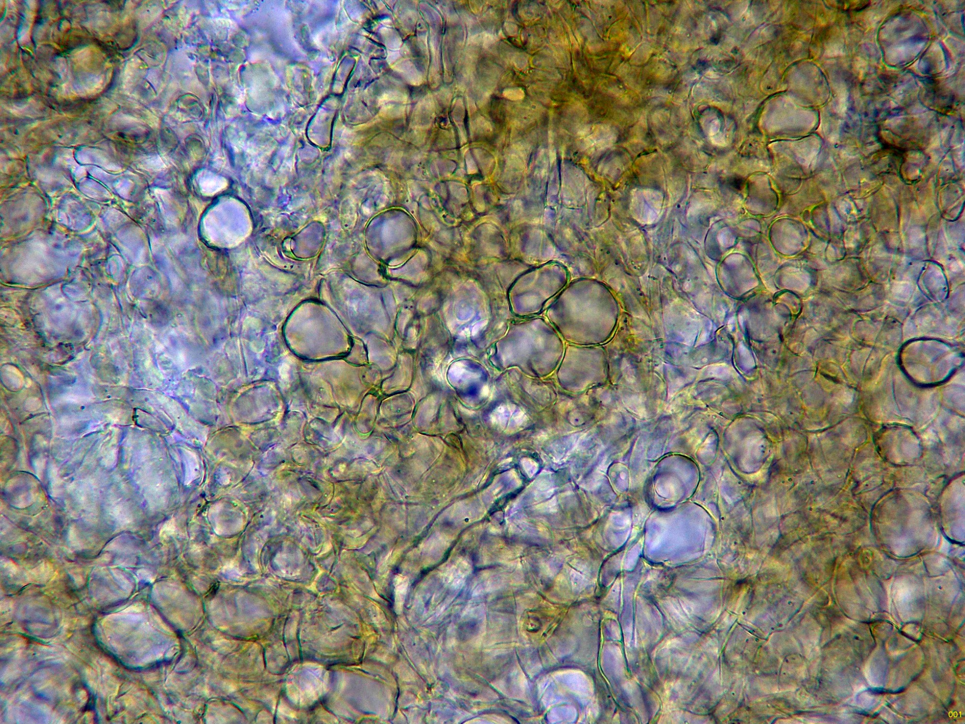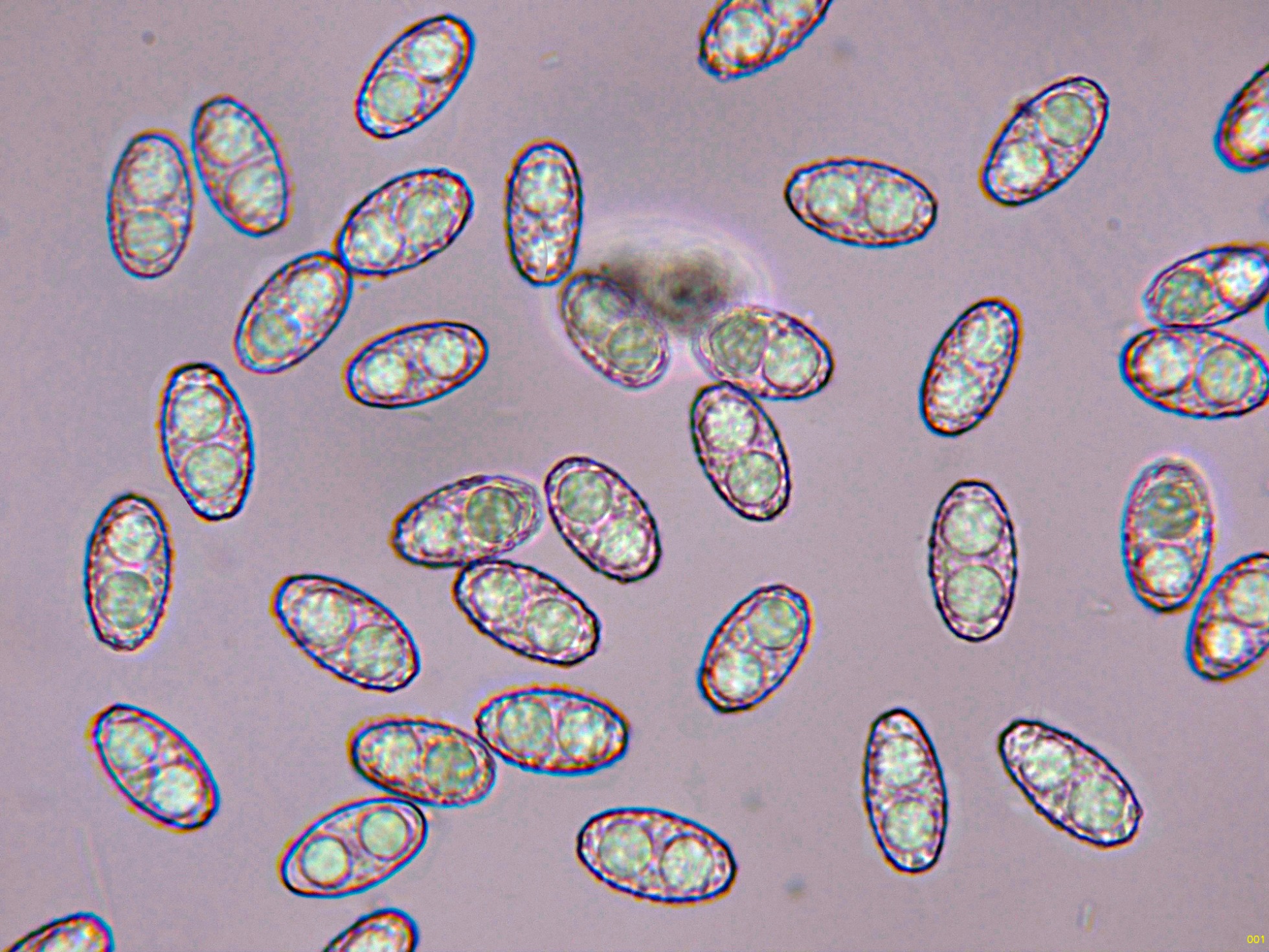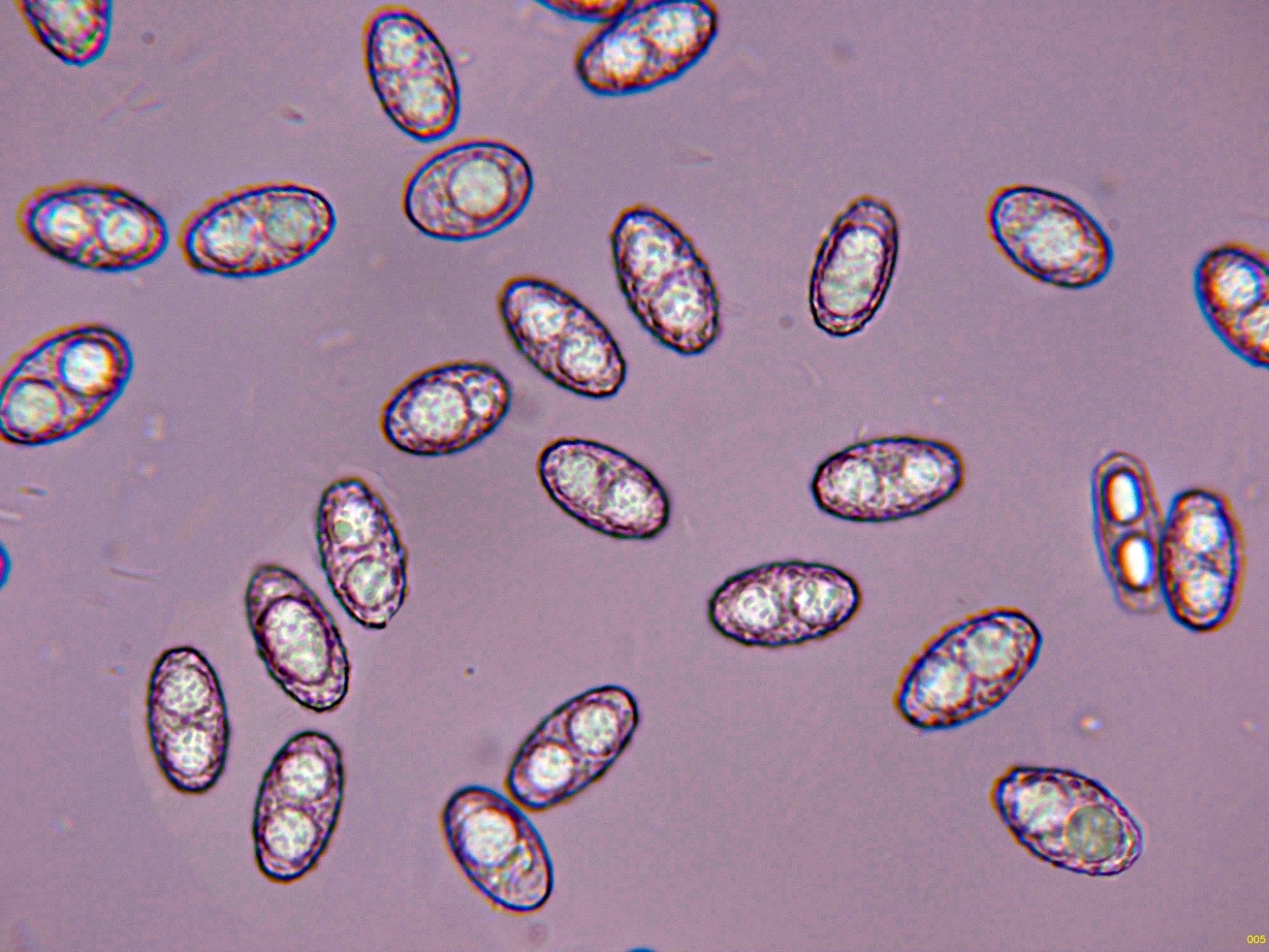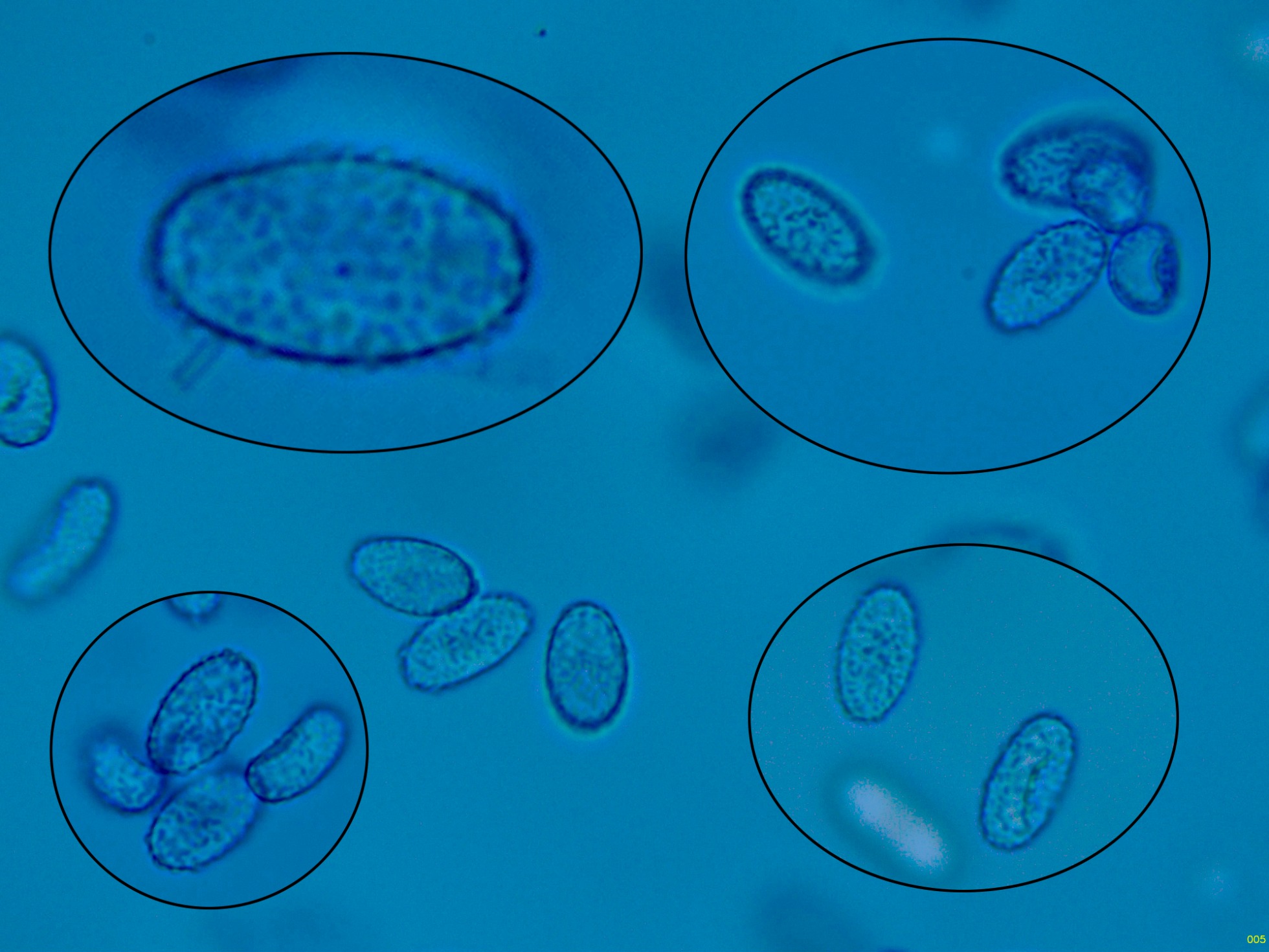 Y por último las esporas en solución de Azul de Lactofenol, para destacar la ornamentación.
