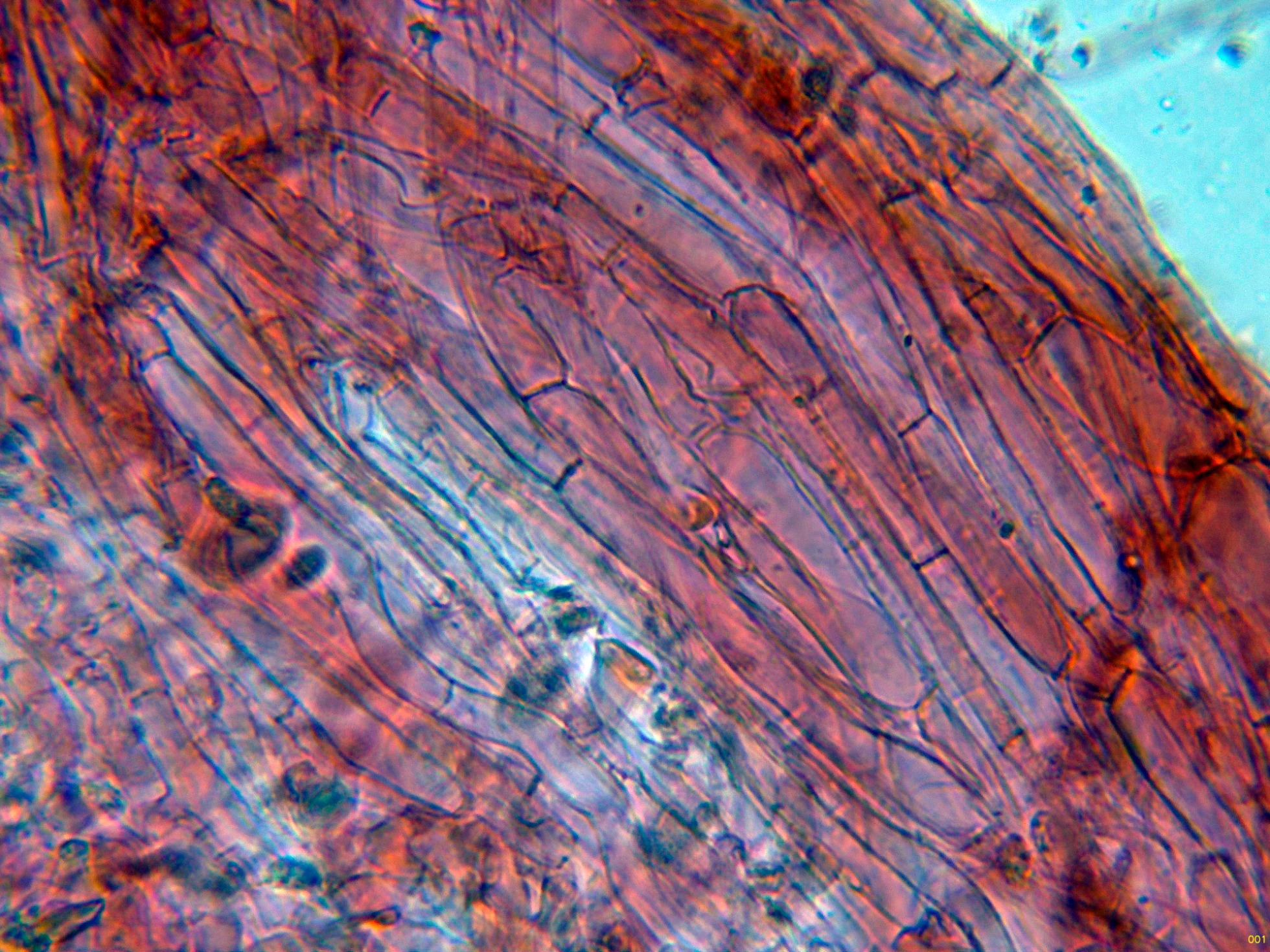 En agradecimiento a los Fungimasters: Clavaria fumosa Pers.. Microscopía.