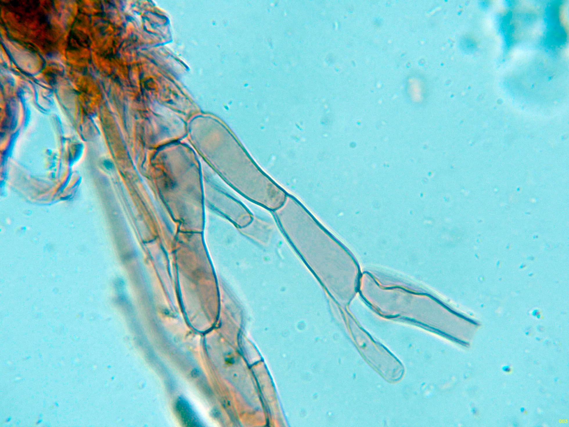 Las hifas tramales en solución de Rojo Congo, sin fíbulas.