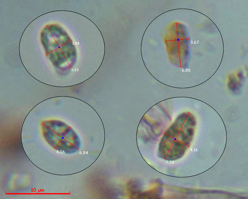 Según bibliografia con unas medidas esporales de 5-8 x 3-4 µ., totalmente acordes.