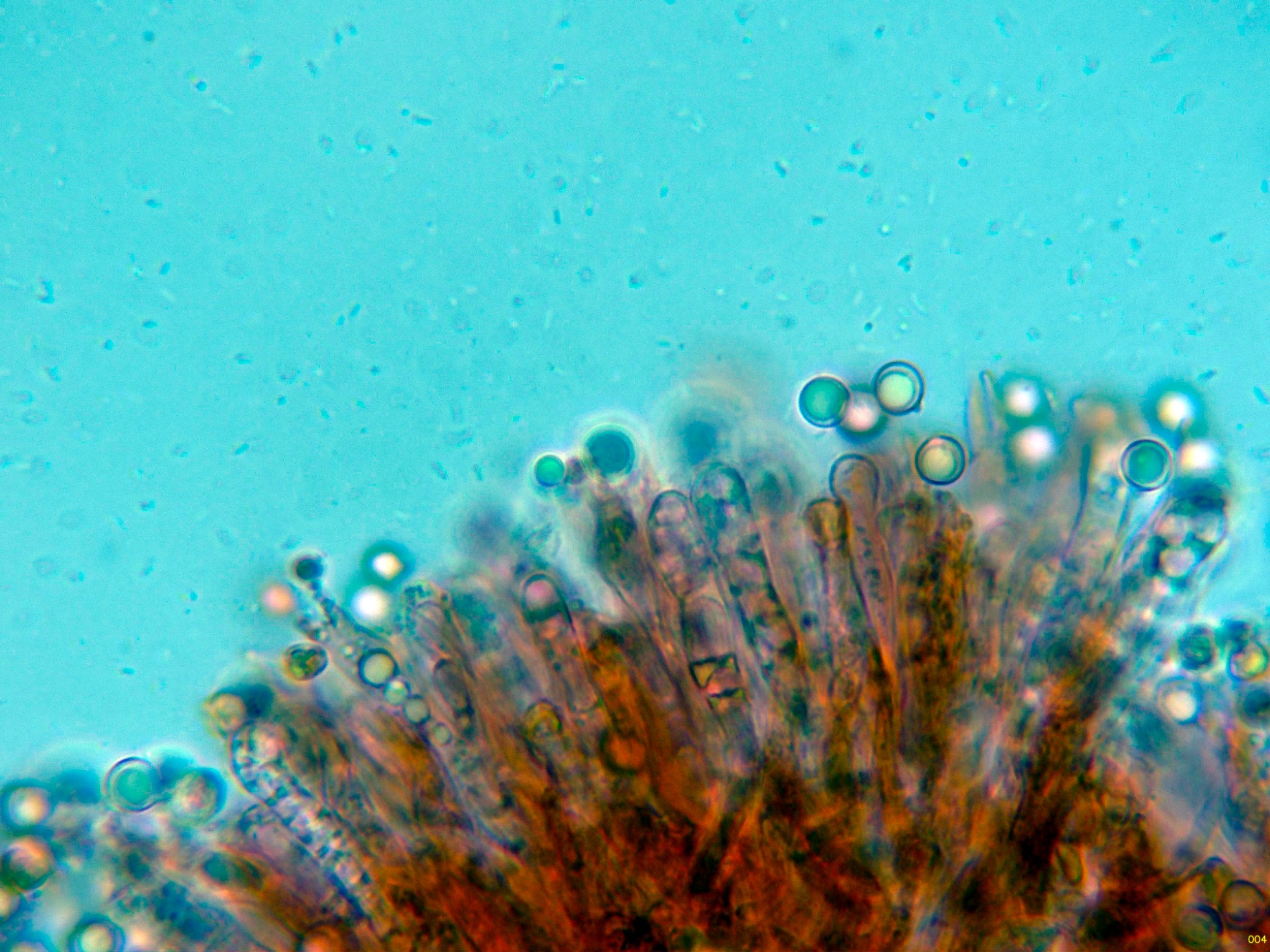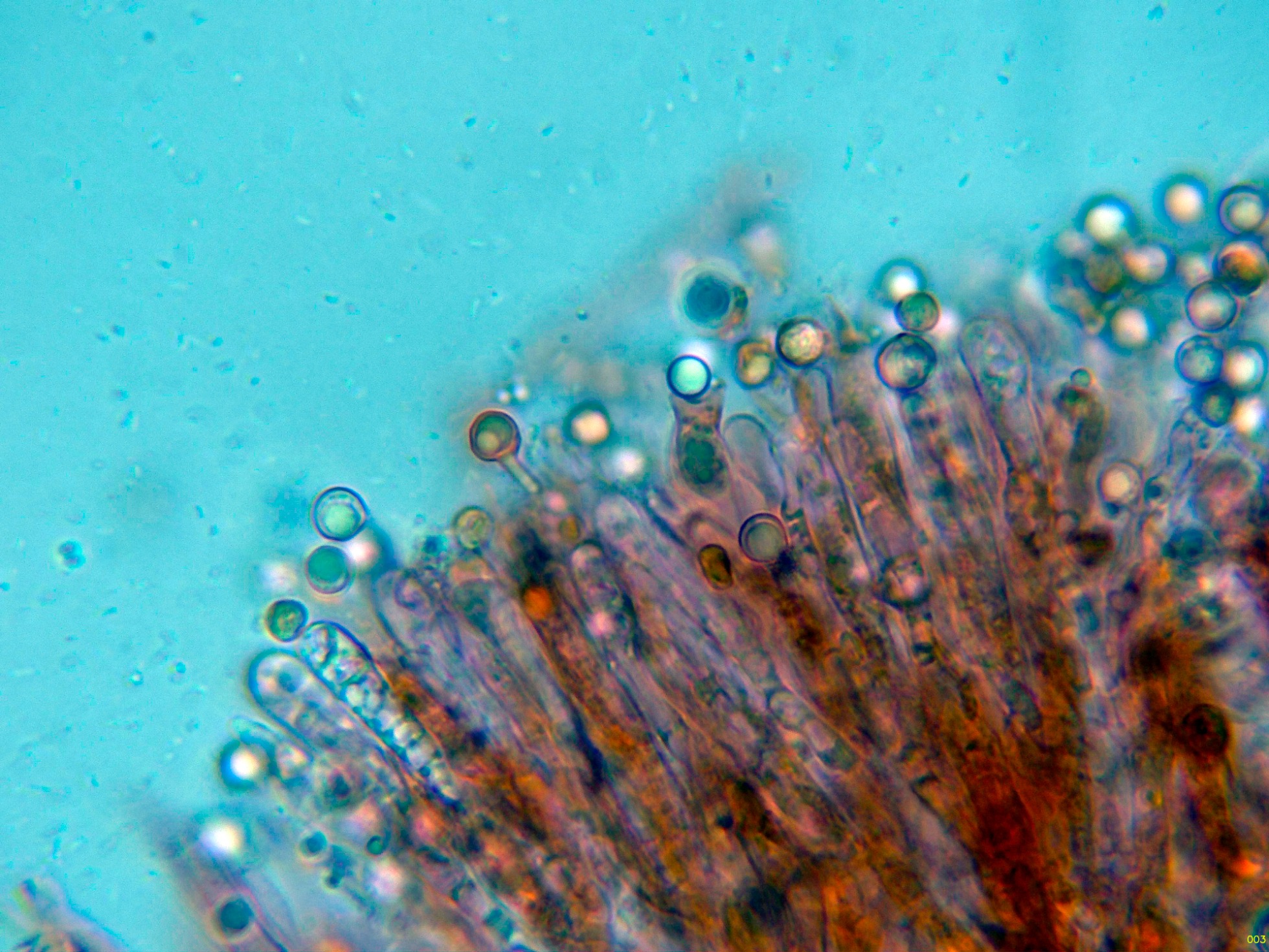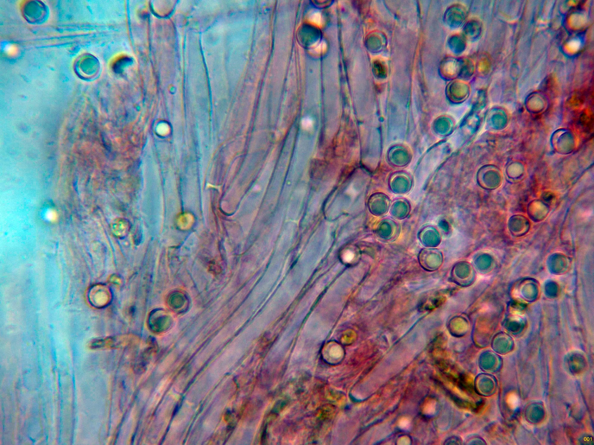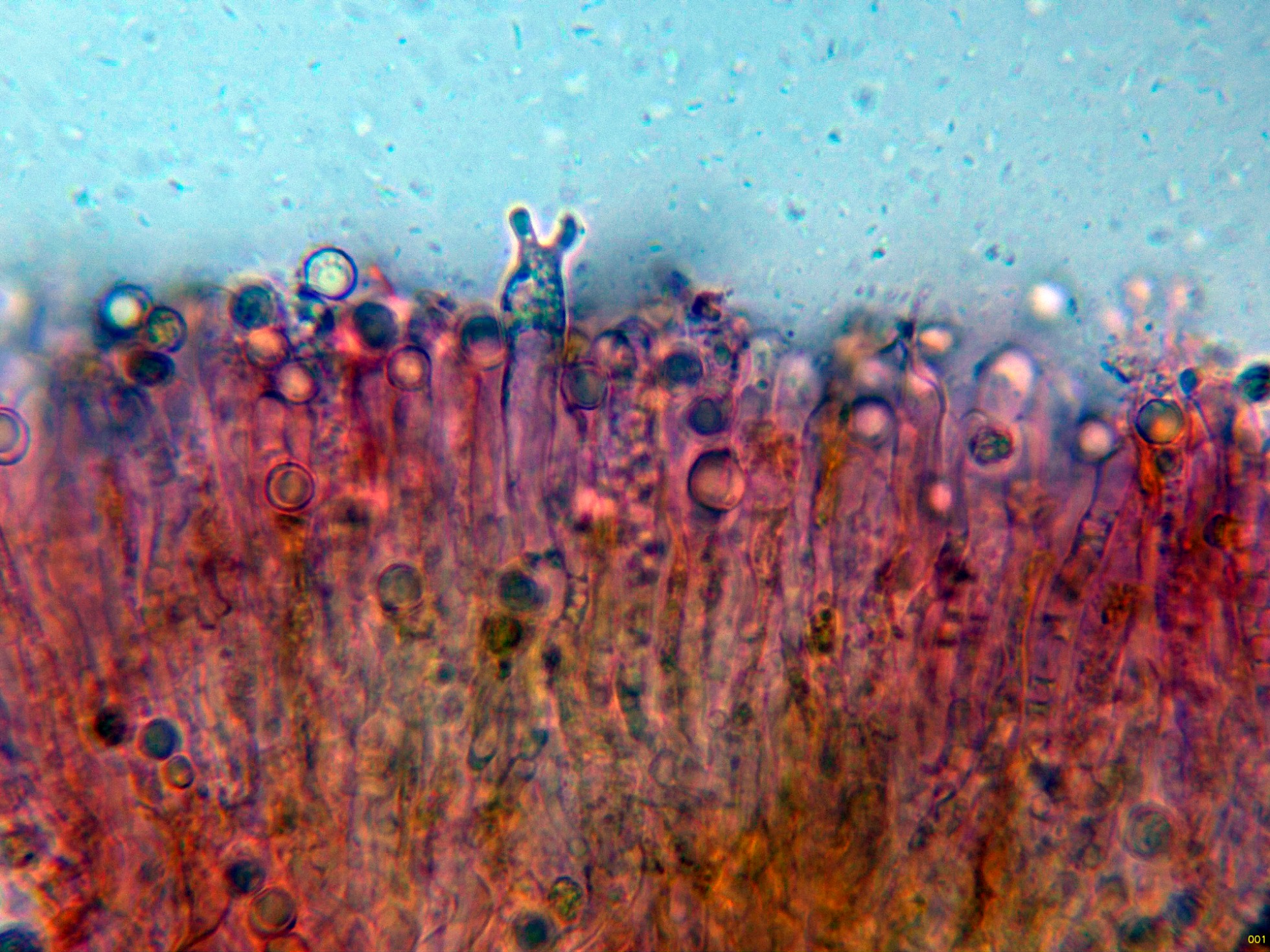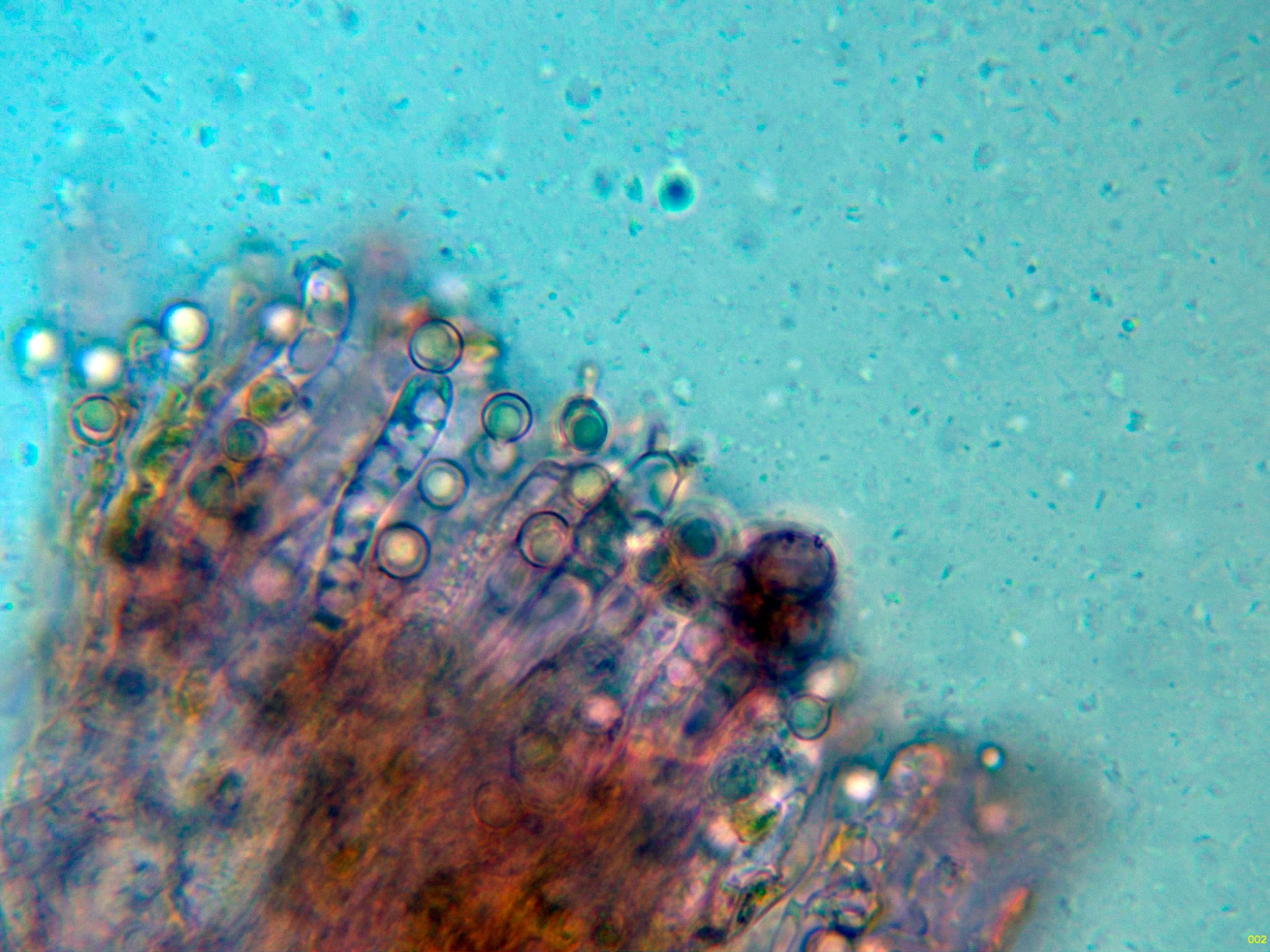 Superficie externa sin cistidios diferenciados, solo basidios y además todos los basidios observados bispóricos.