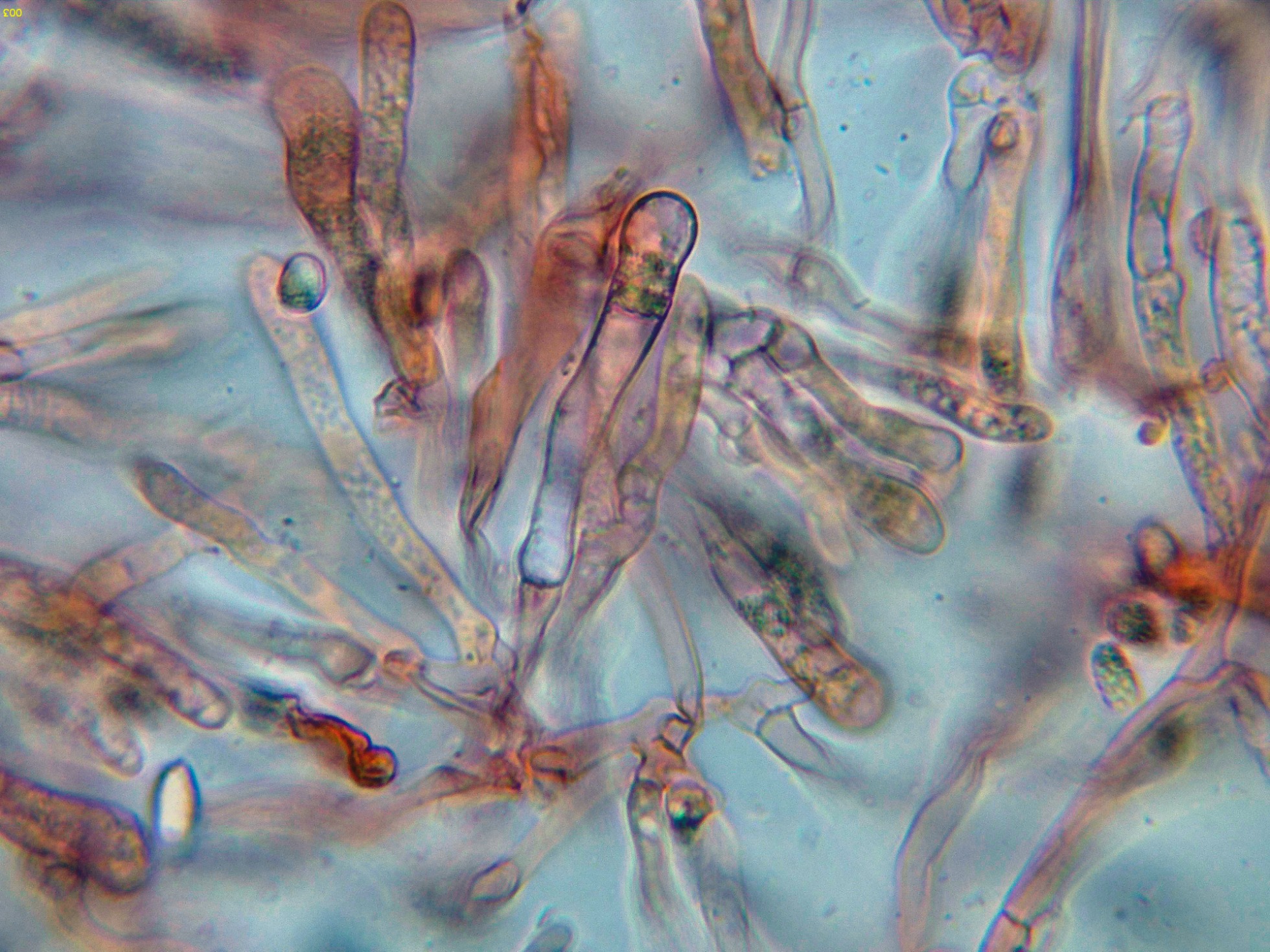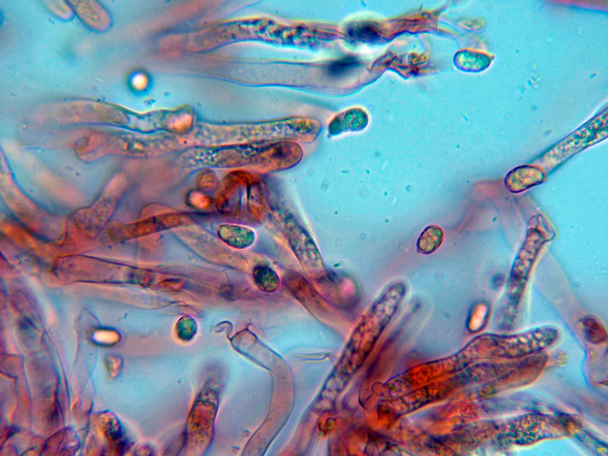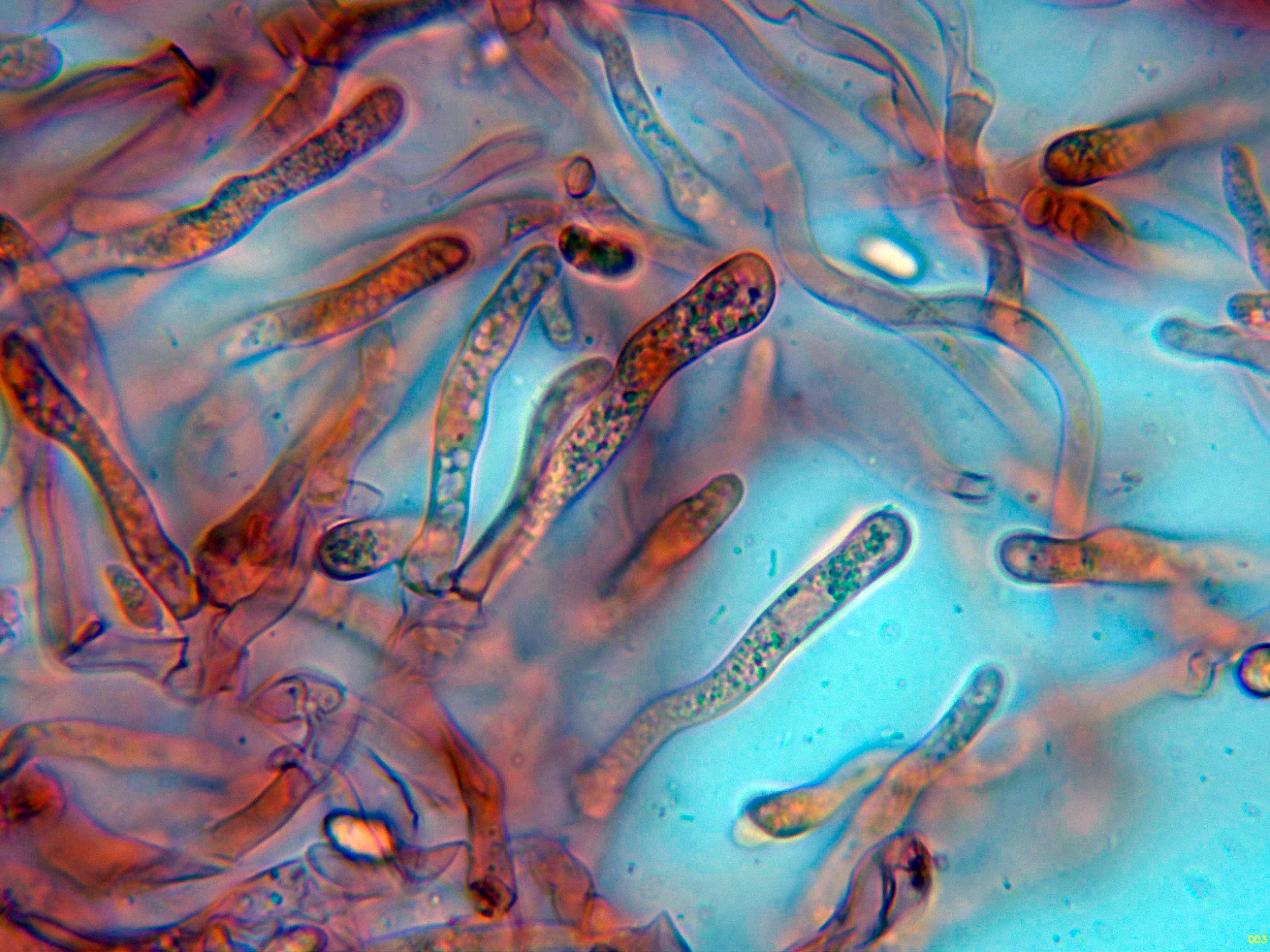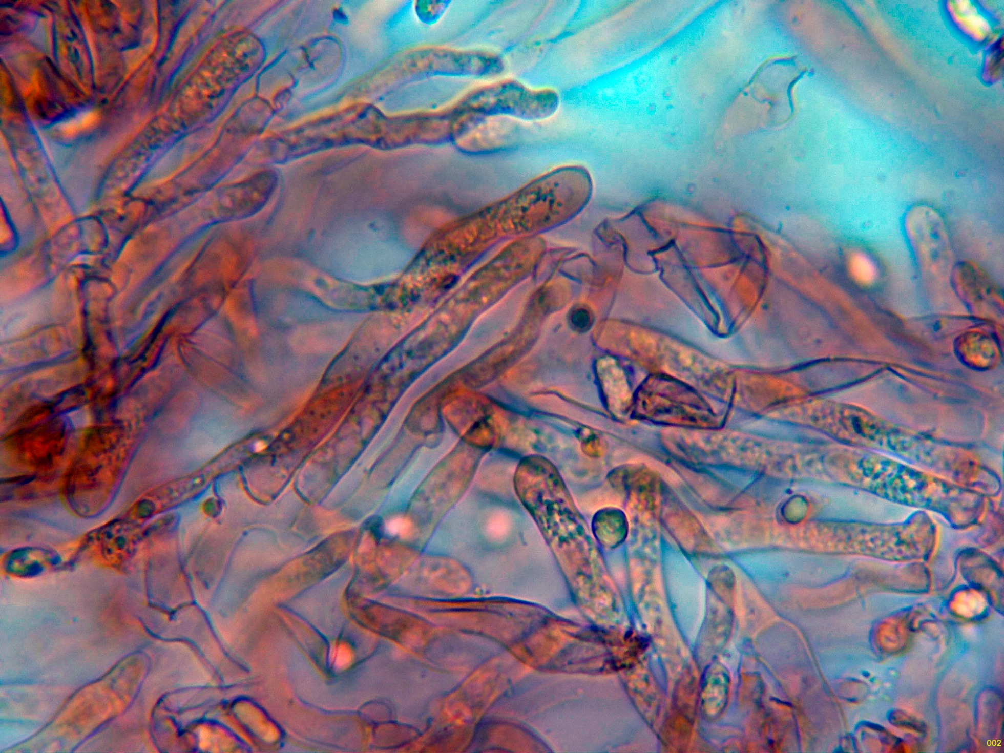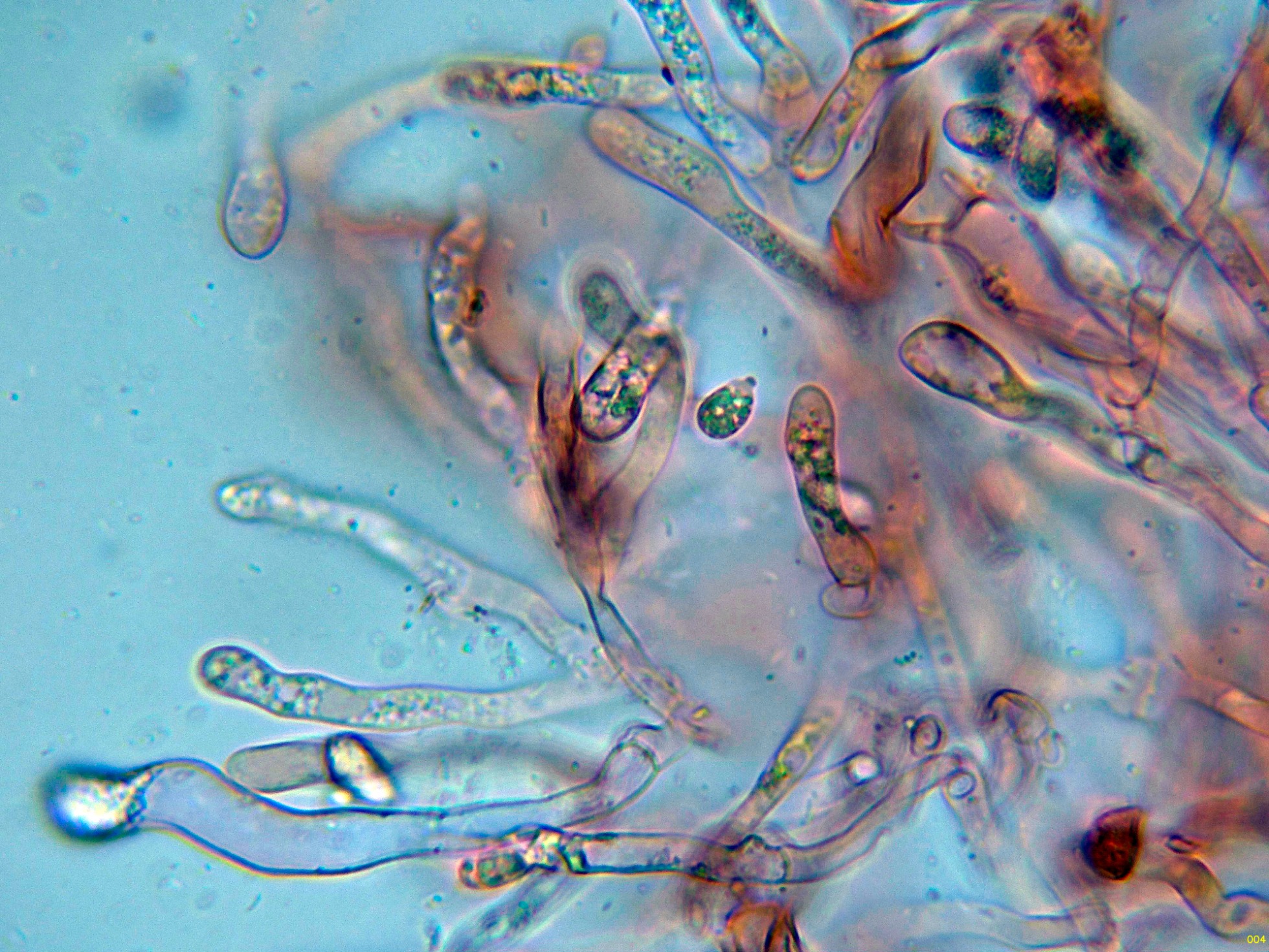 Hifas de la suprapellis filamentosas, con marcadas fíbulas en los tabiques.