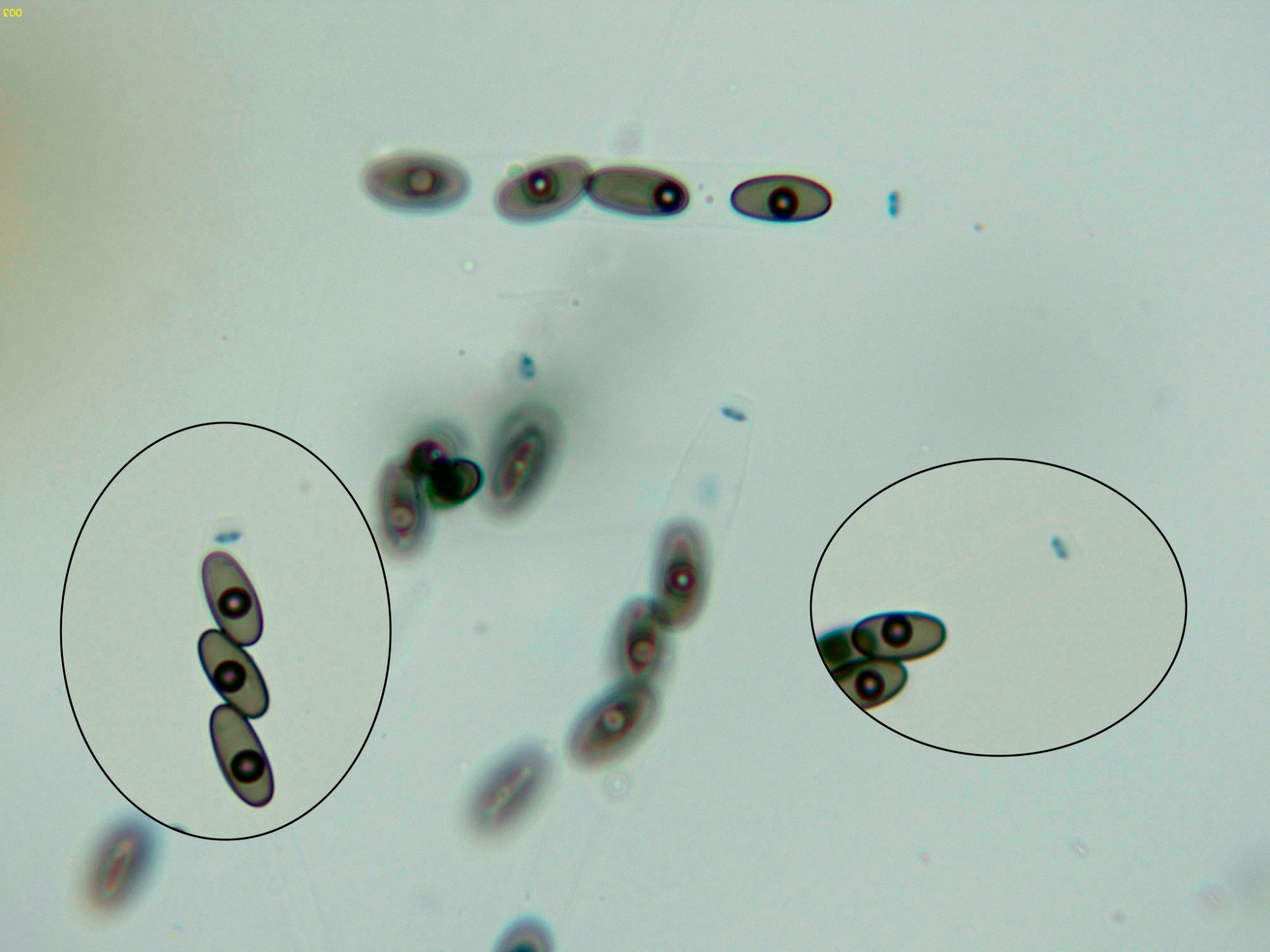 Un par de imágenes de su diminuto aparato apical en Reactivo de Melzer.