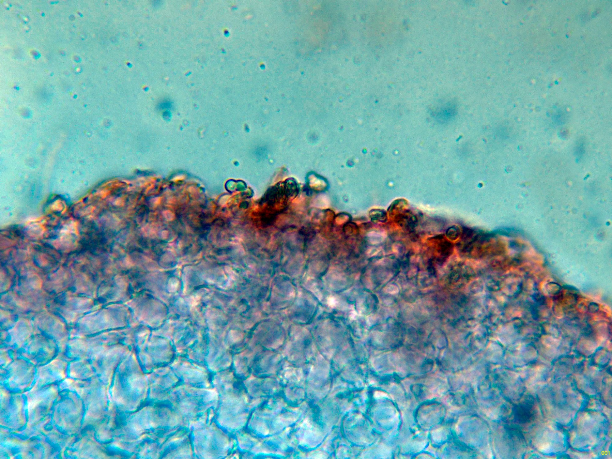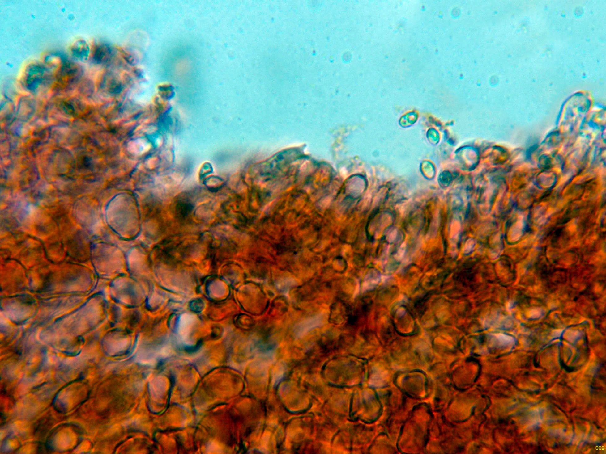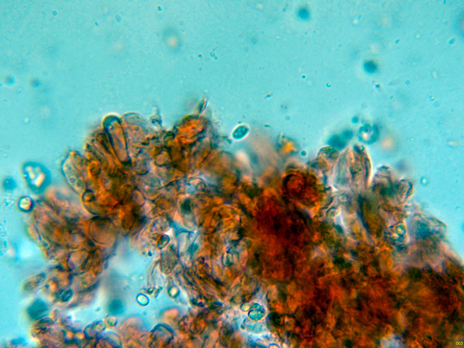 En este estudio me quedan algunas dudas por la morfología de la pileipellis, entiendo que en mis muestras al ejercer demasiada presión eclosionaron y aunque apunta a la Echinoderma carinii propuesta, no pude observar con claridad sus características, por lo que no descarto probar de nuevo en el futuro con el exsiccata, de ahí lo de "cf".