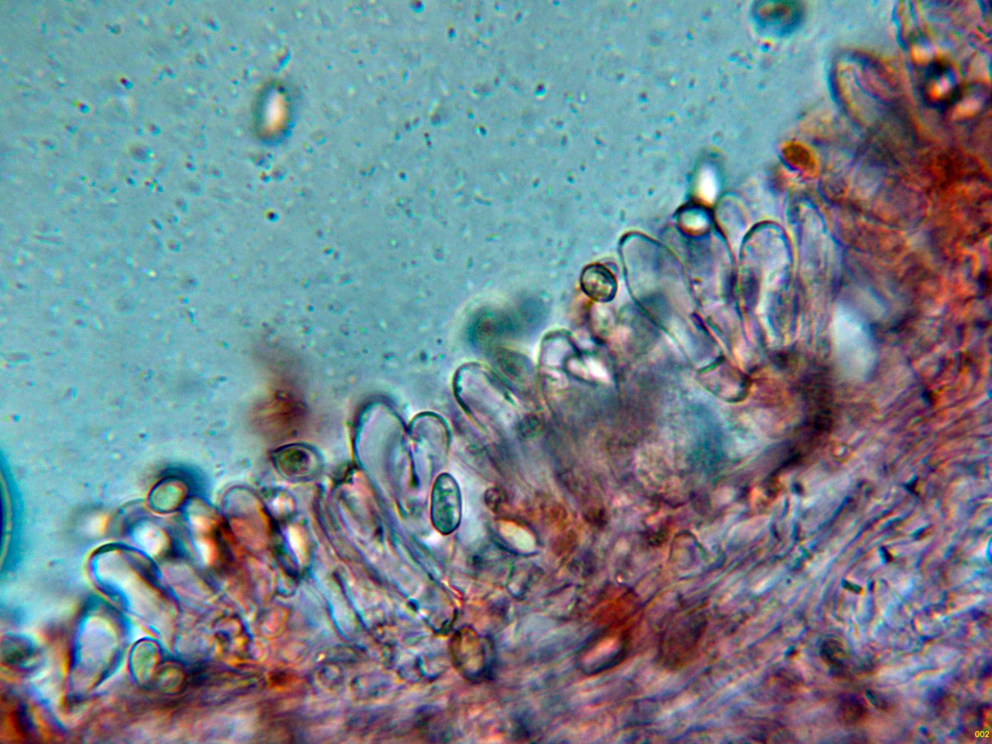 Queilocistidios muy abundantes que dejan prácticamente estéril la arista laminar.