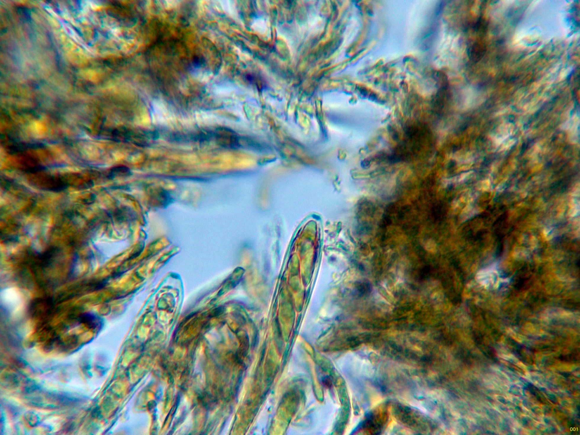 Observaciones: Especie que guarda un cierto parecido en el aspecto macroscópico y con una microscopía prácticamente idéntica al Claussenomyces prasinulus, del que presenté un tema no hace mucho, dejo el enlace: