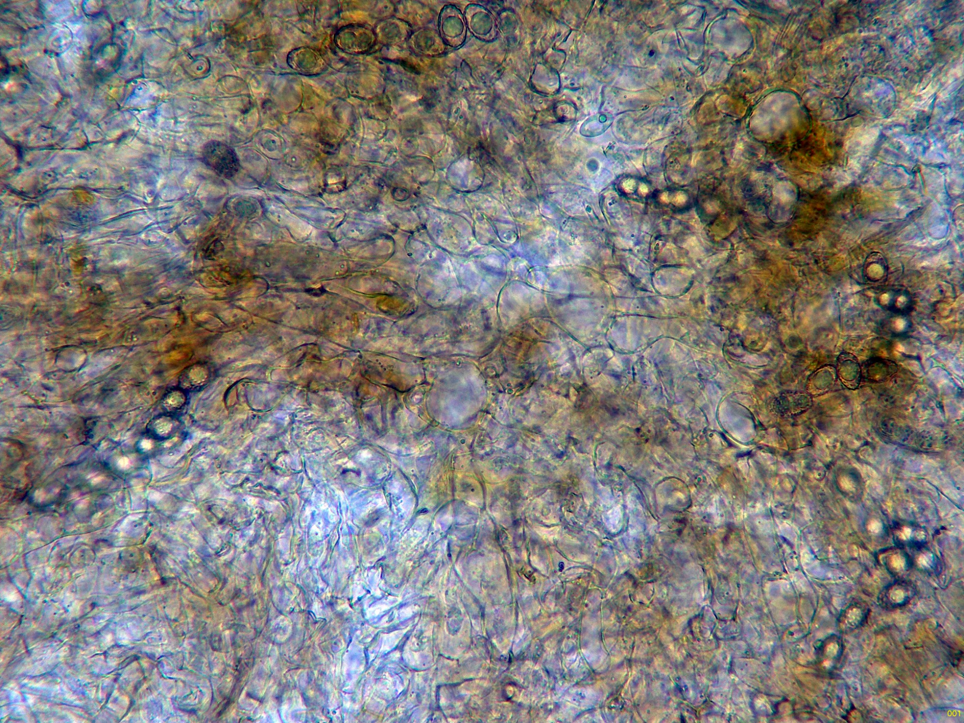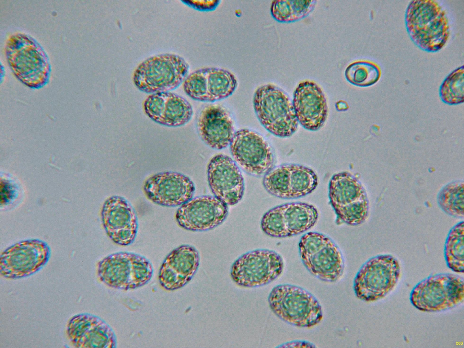 Y por último las esporas en azul de Lactofenol, para destacar la ornamentación.