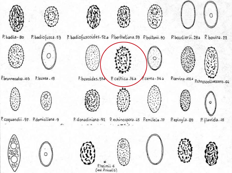 Observaciones: Determinación hecha siguiendo las claves de Jamoni, añado una imágen con el dibujo de las mismas claves de las esporas y su ornamentación.