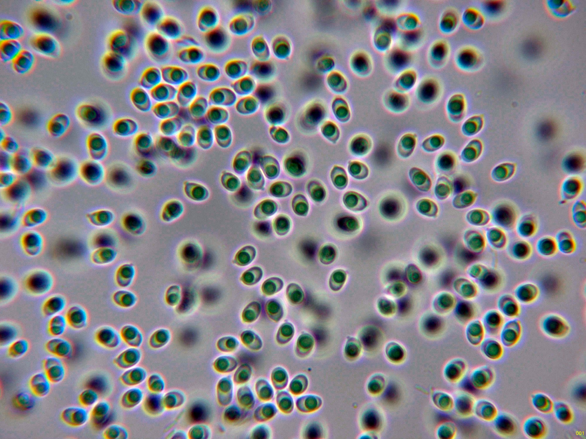 Esporas en solución de KOH, prácticamente halinas.