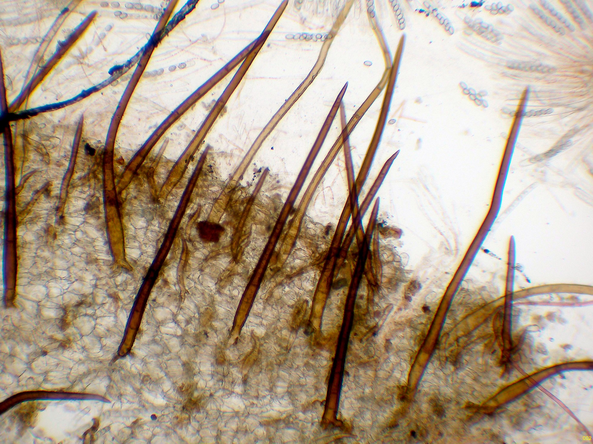 Scutellinia vitreola Kullman. Microscopía.