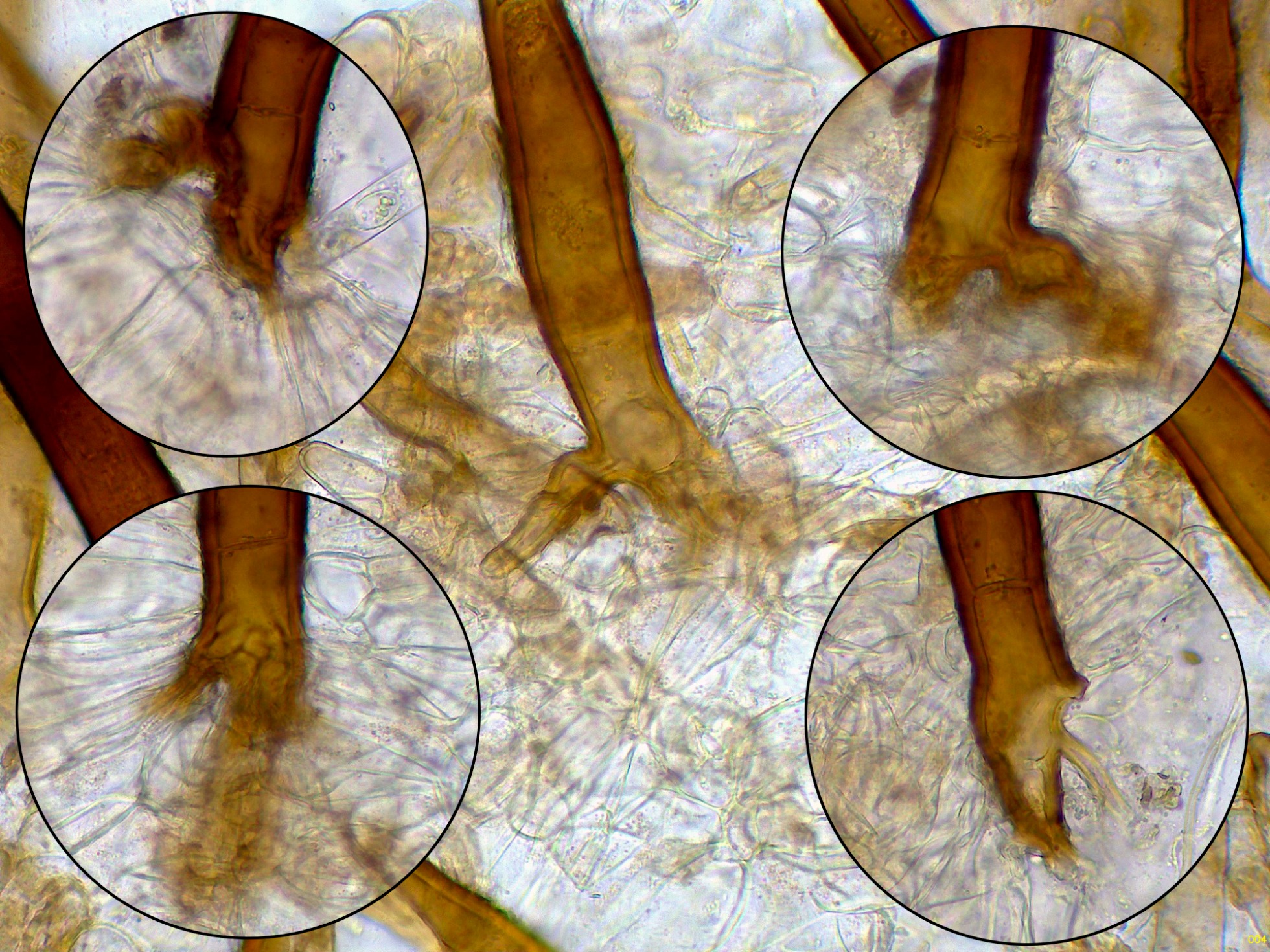 Base de los pelos multifida en agua ya 400 aumentos.