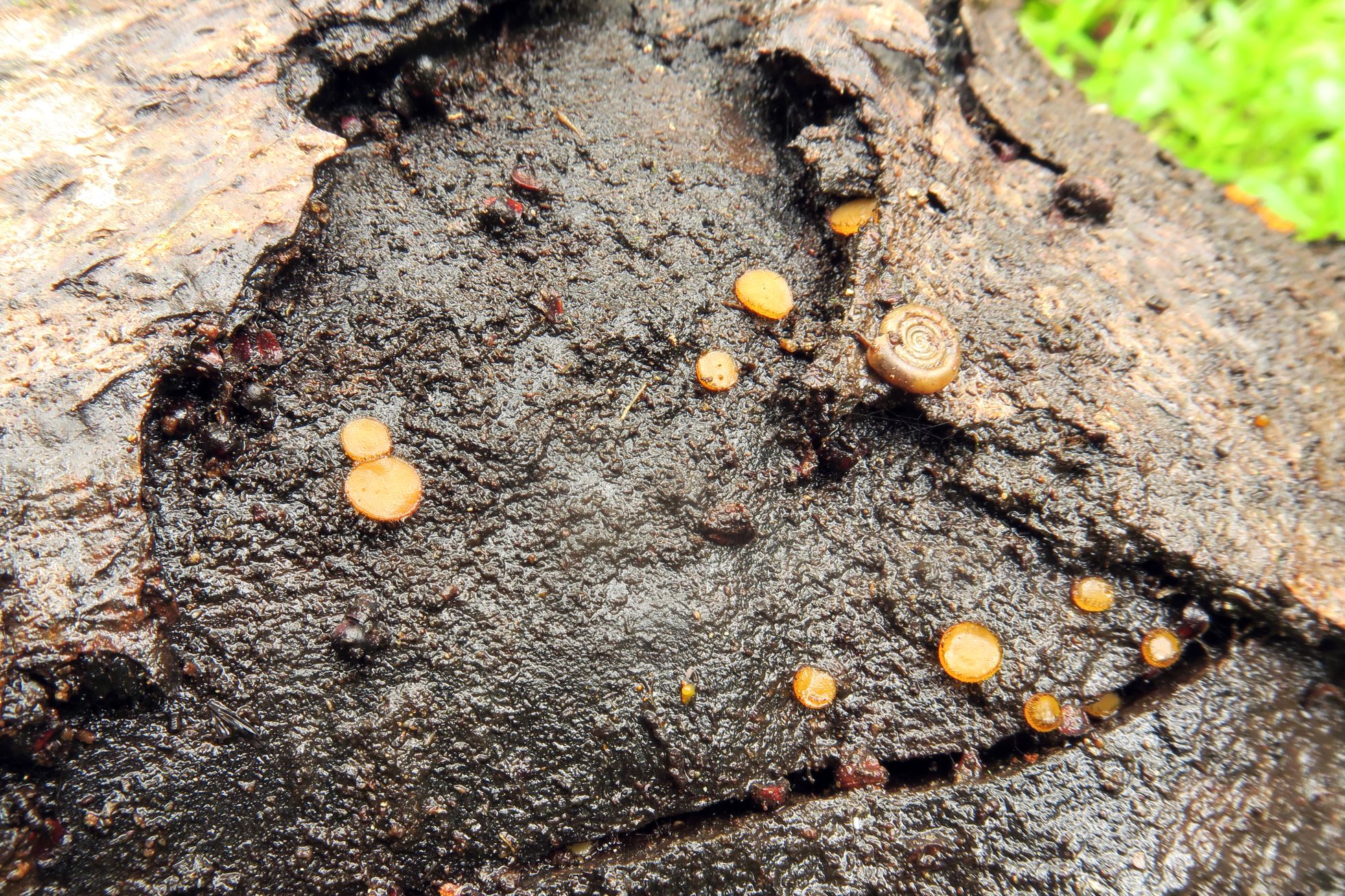 Hará cosa de un año atrás presenté una Scutellinia en la que todos los datos obtenidos apuntaban a la Scutellinia umbrorum, pues bien un año después, en el mismo entorno natural (Laguna Bávaro) y compartiendo espacio con la anterior, me encuentro con otra Scutellinia, en esta ocasión la: