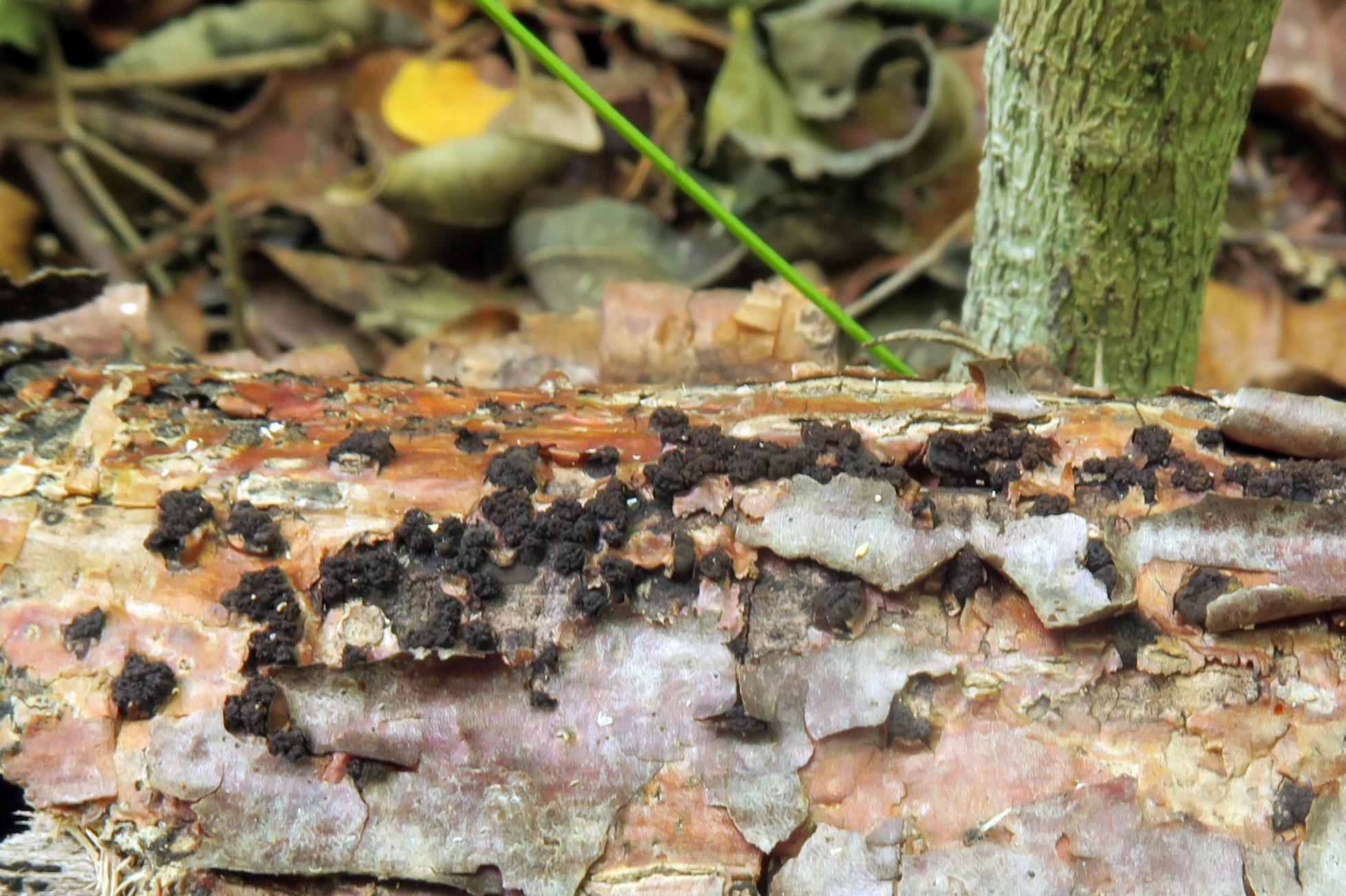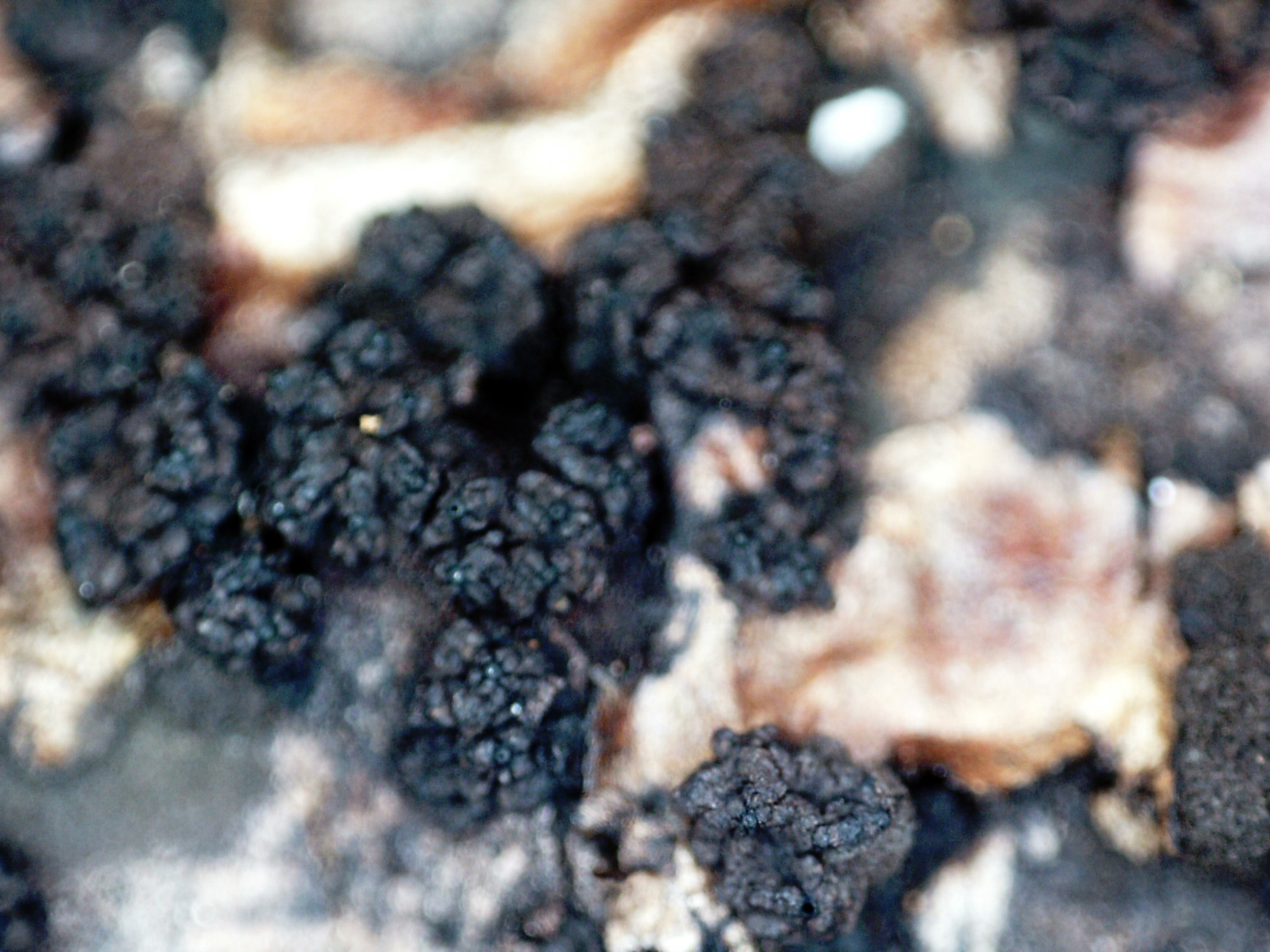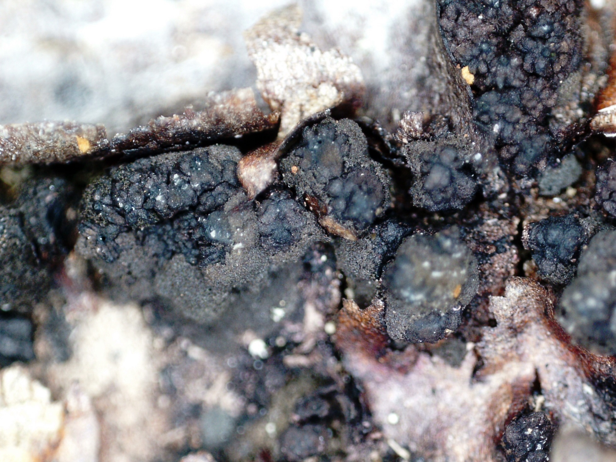 Estromas moriformes que revientan la fina corteza que cubre el tronco.