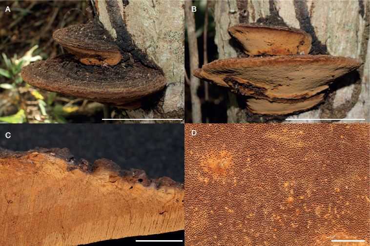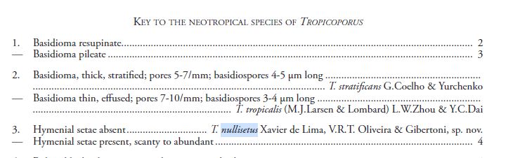 Añado una imagen del aspecto macroscópico del Tropicoporus nullisetus, sacada del mismo documento:
