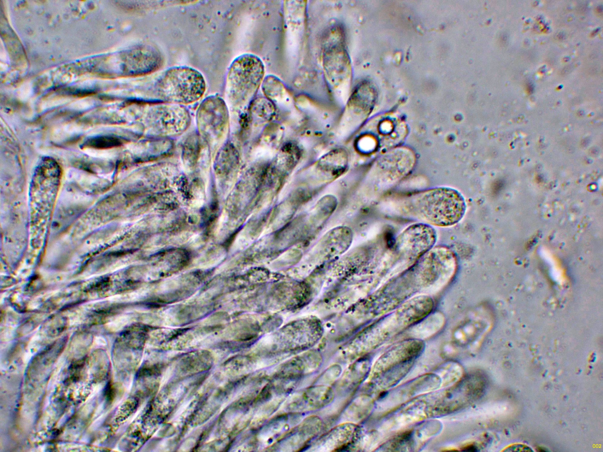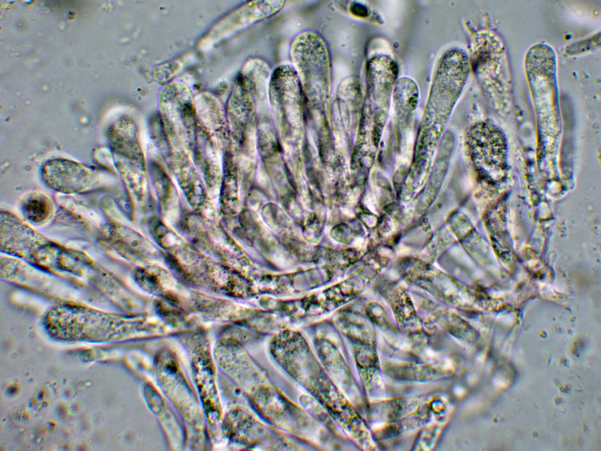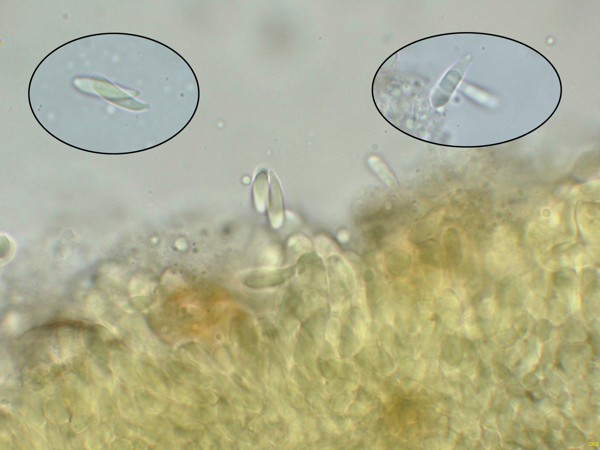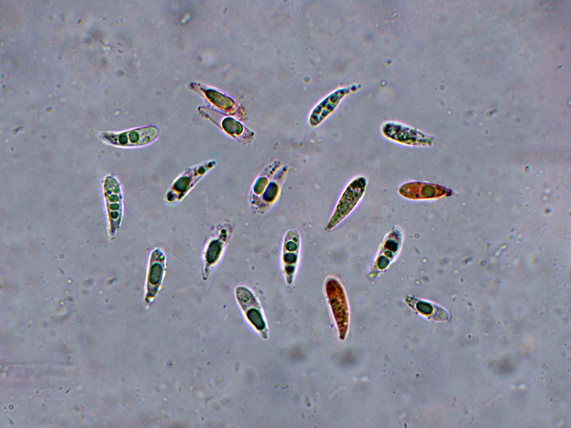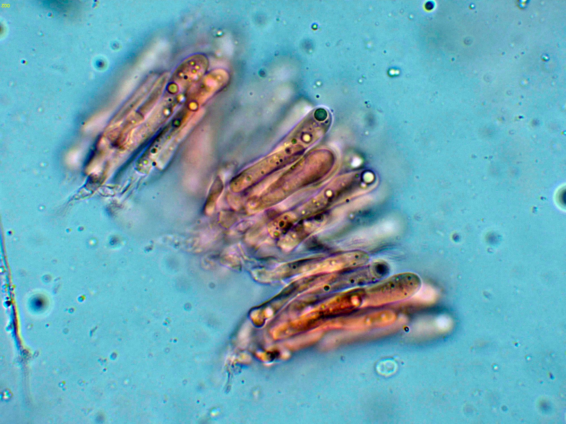 En este caso ya con un aspecto muy distinto a nivel macroscópico y además con unas esporas más cortas y de mayor anchura.