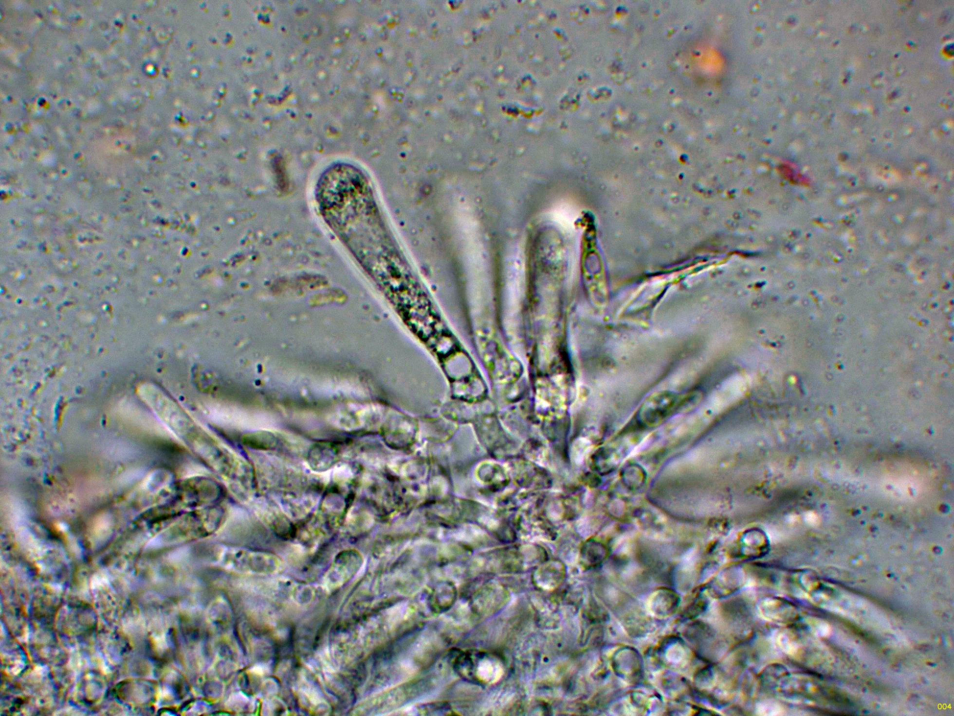 En el estípite observadas algunas hifas terminales a modo de caulocistidios.