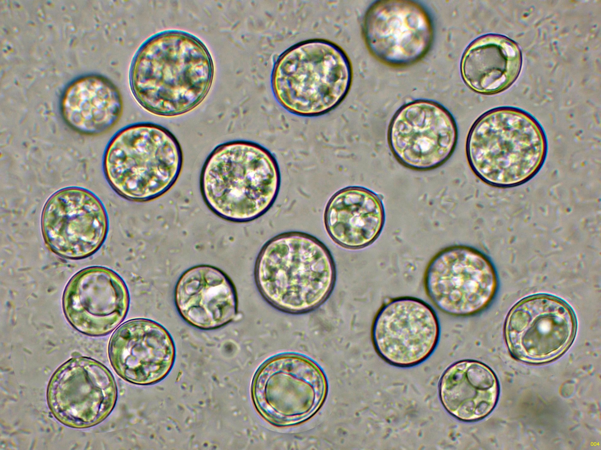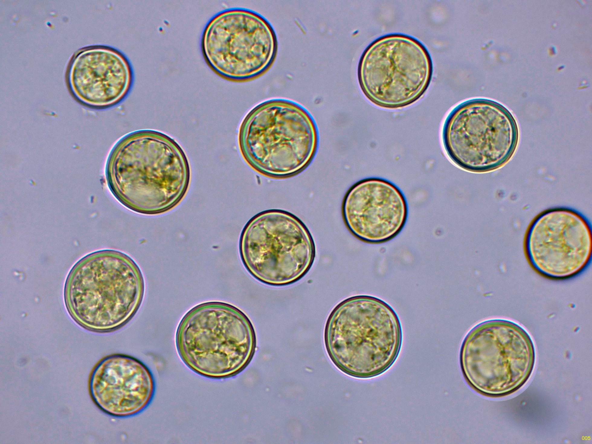 Estas esporas obtenidas por esporulación natural y en agua con unas medidas de: