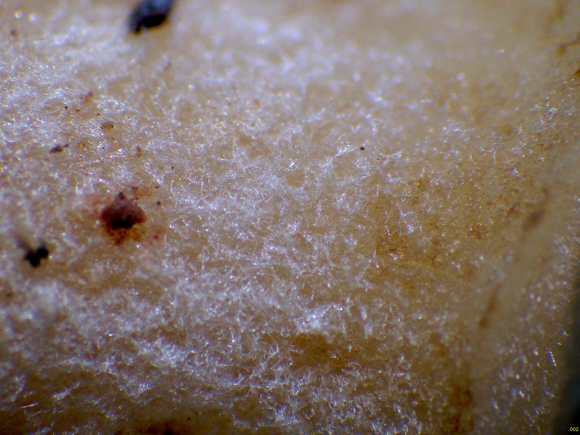 Pie corto, lleno, sin surcos, con su superficie aterciopelada, carne al corte de color crema rosada en el pie y blanca en el sombrero.
