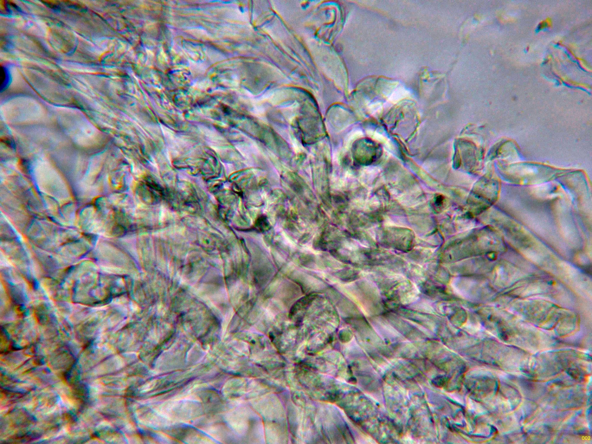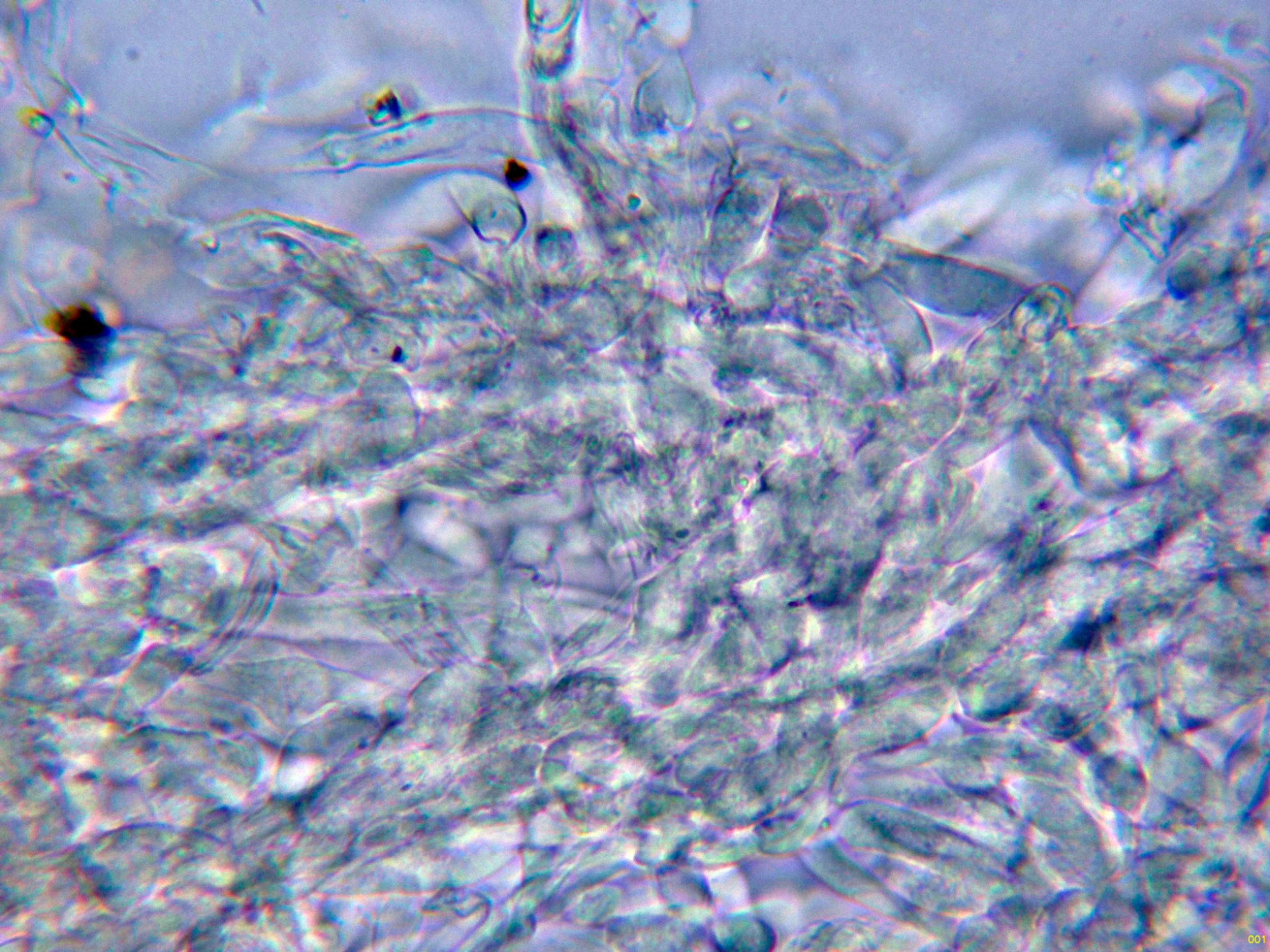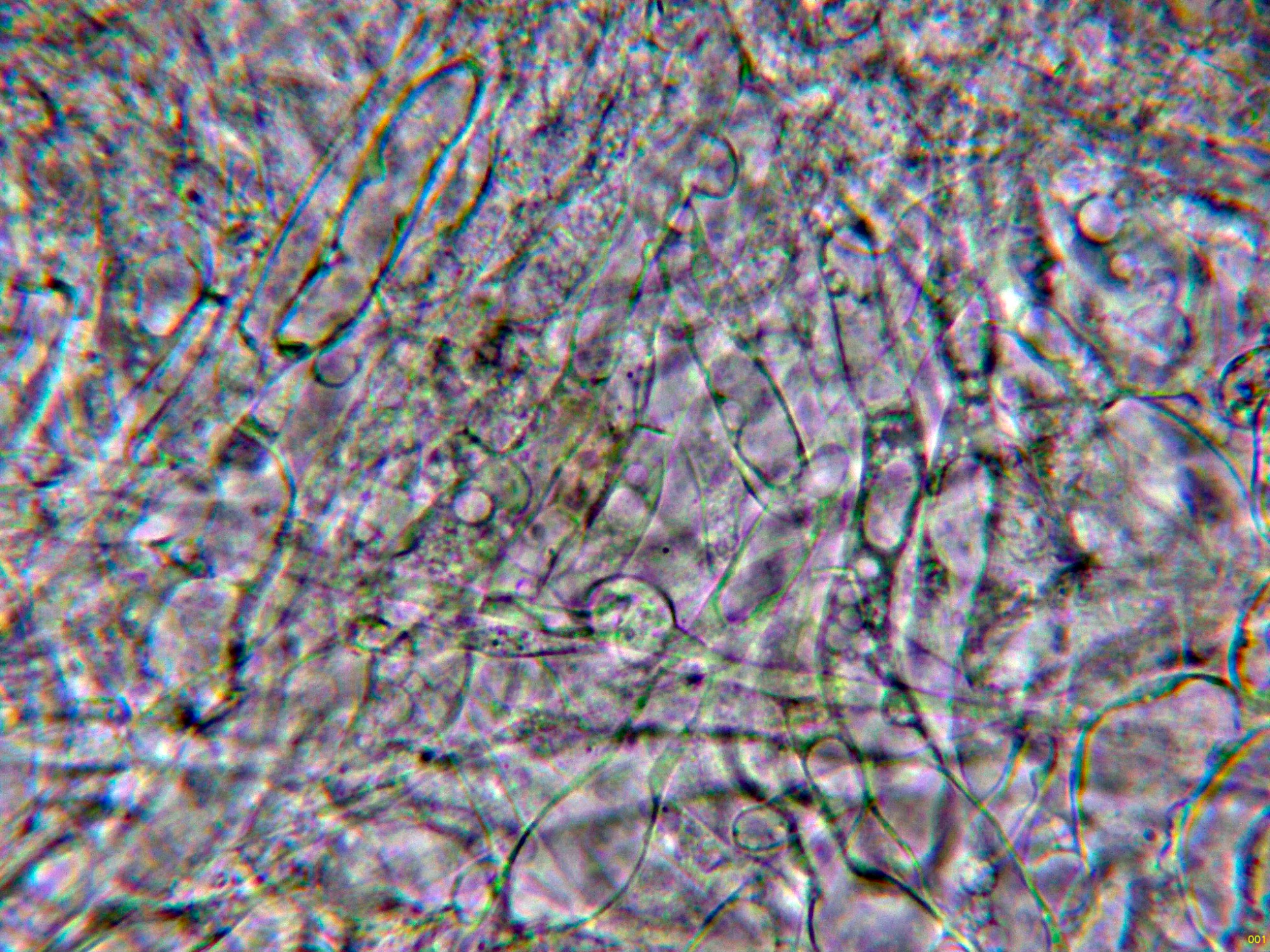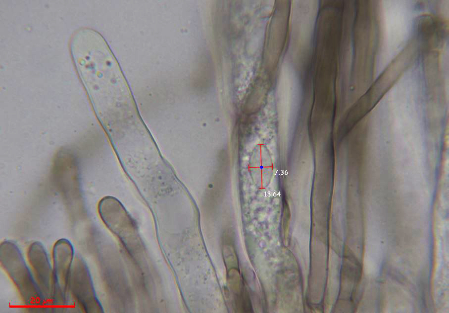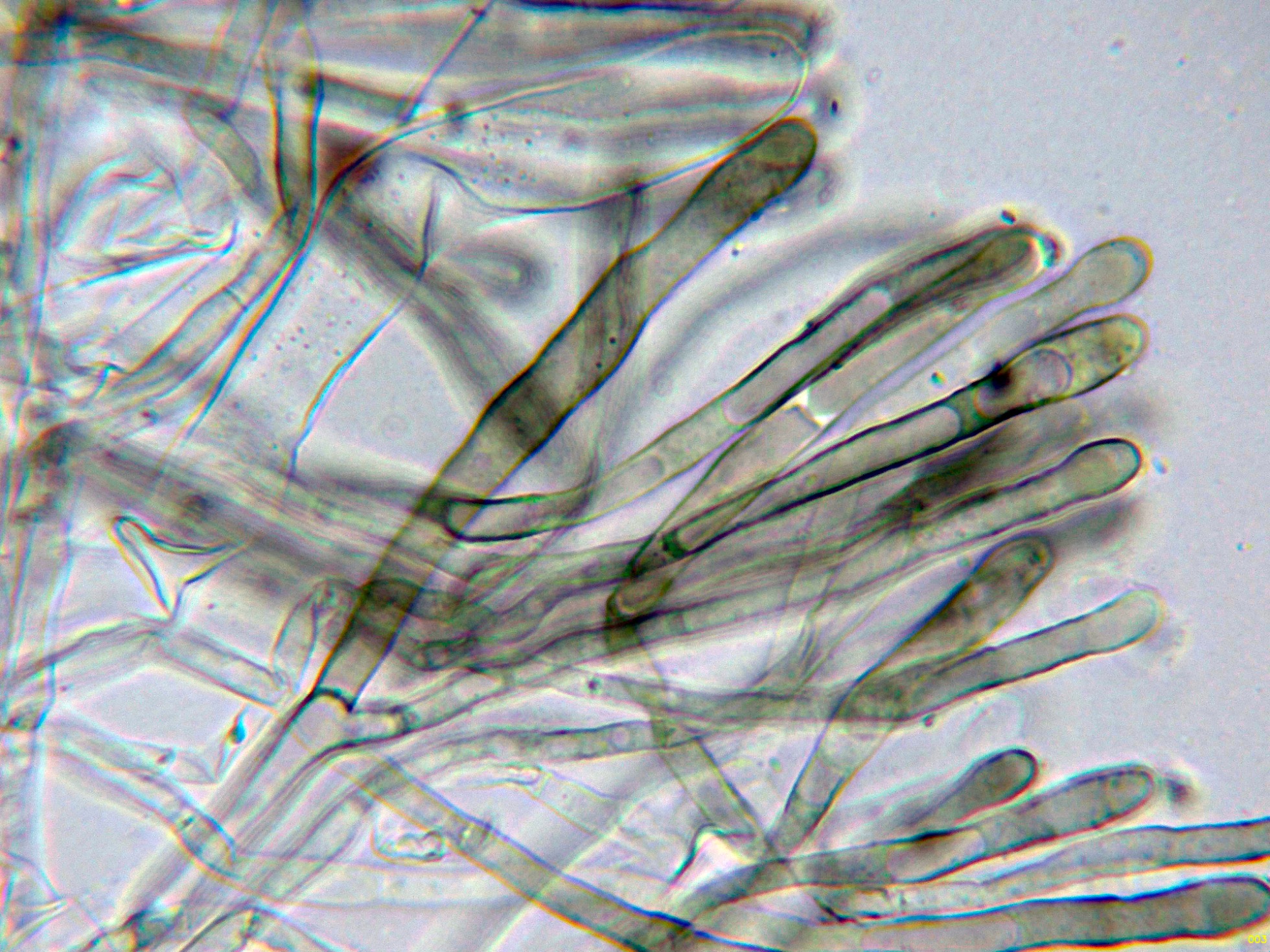 Paráfisis filiformes, septadas, muchas de ellas ramificadas, ligeramente ensanchadas en el ápice y con pigmento intracelular marrón.