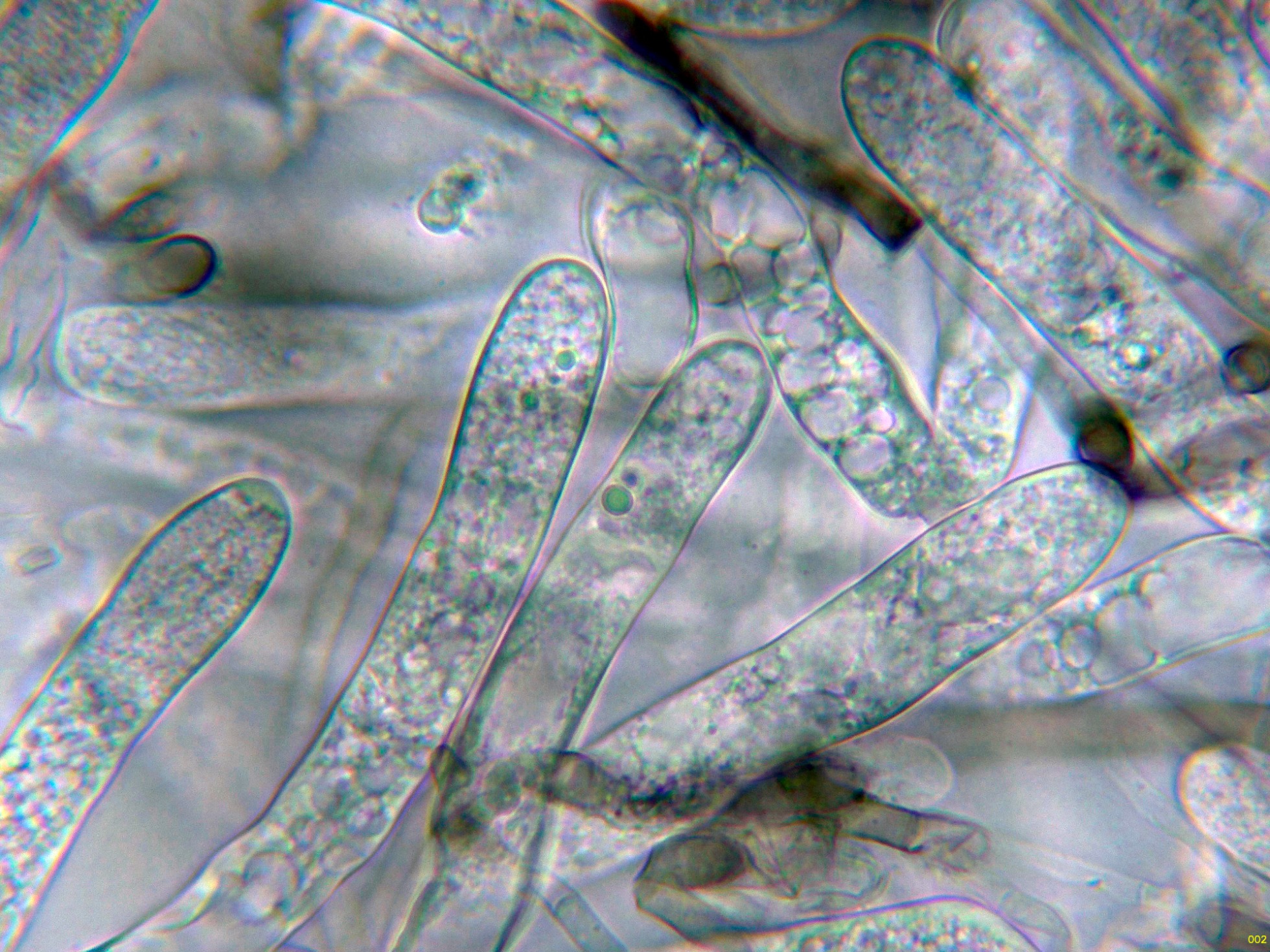Solo observados ascos inmaduros, presumiblemente octospóricos.