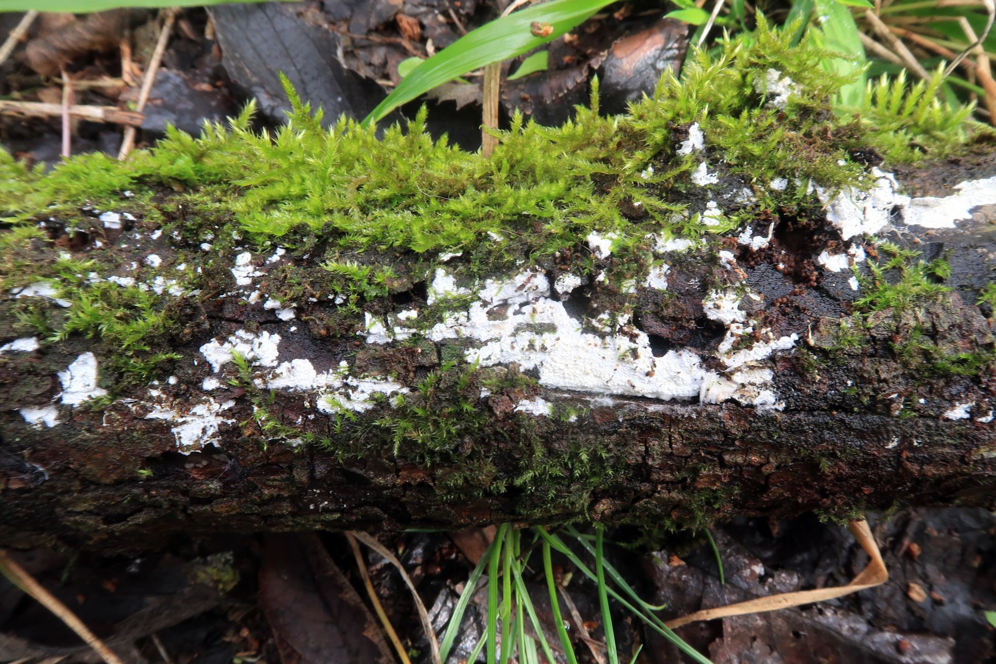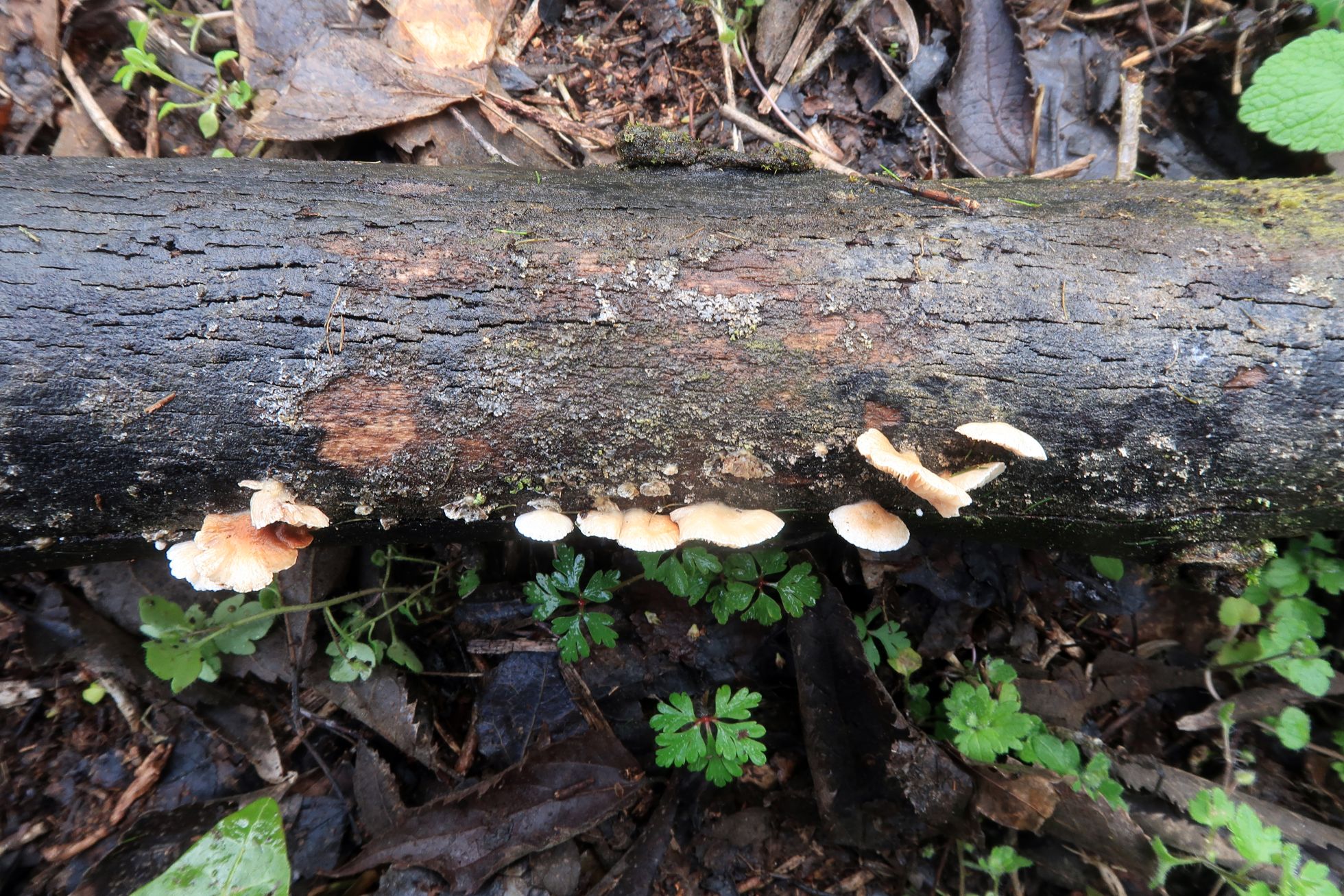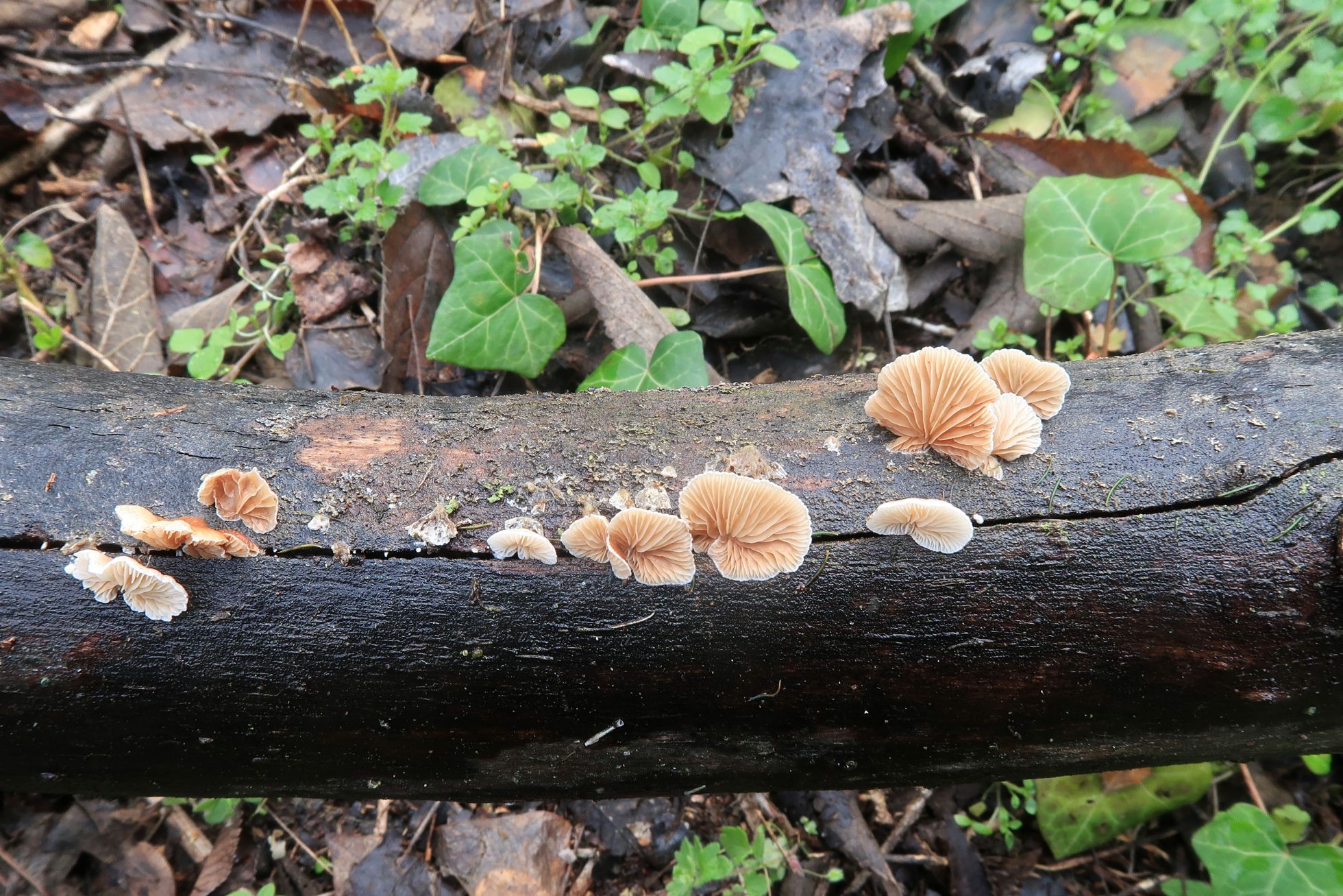 Muy abundante y colonizando todos los troncos del suelo, la Auricularia mesenterica.