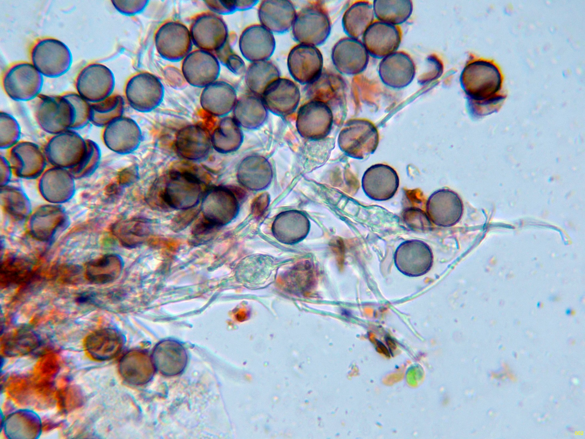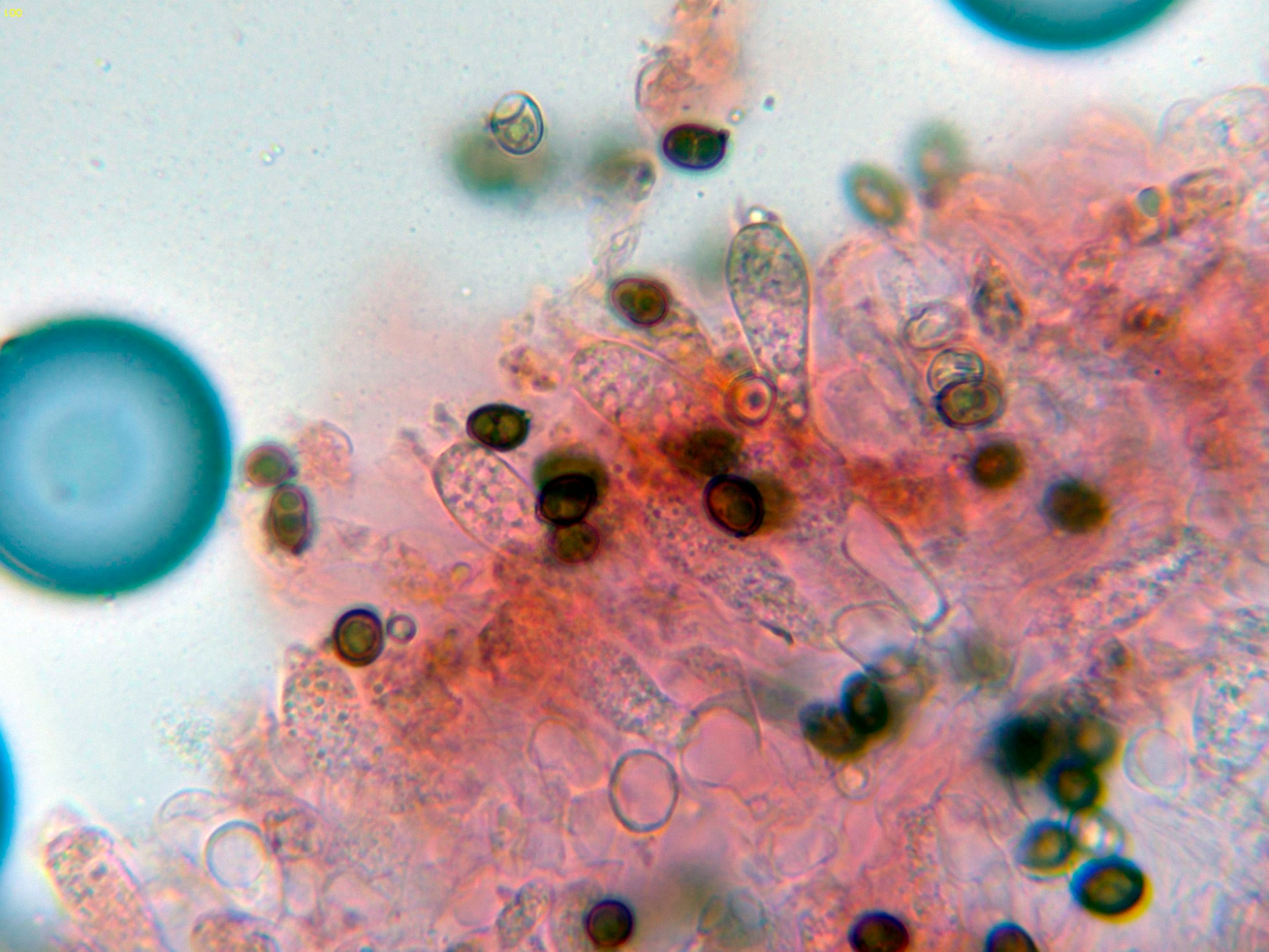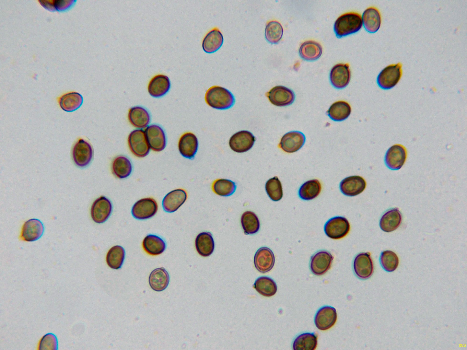 Un Crepidotus, con esporas entre esféricas y subglobosas, tímidamente verrucosas, el Crepidotus cesatii, cuarto estudio que realizo a la especie.