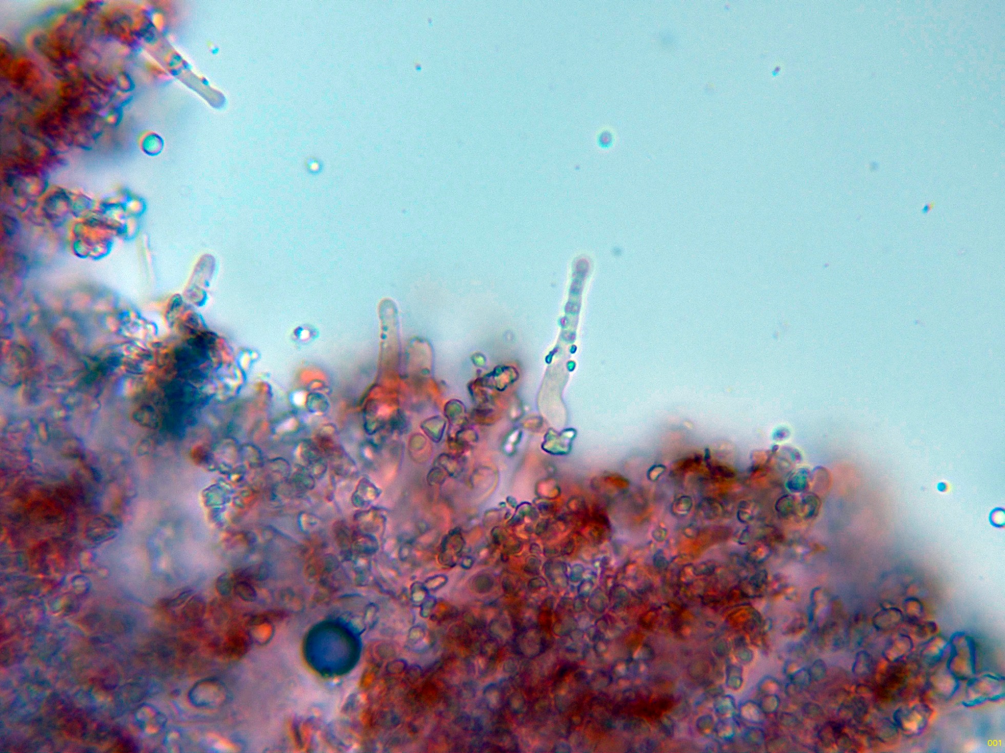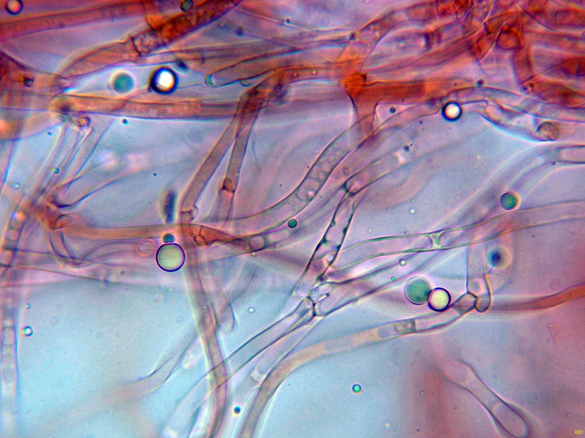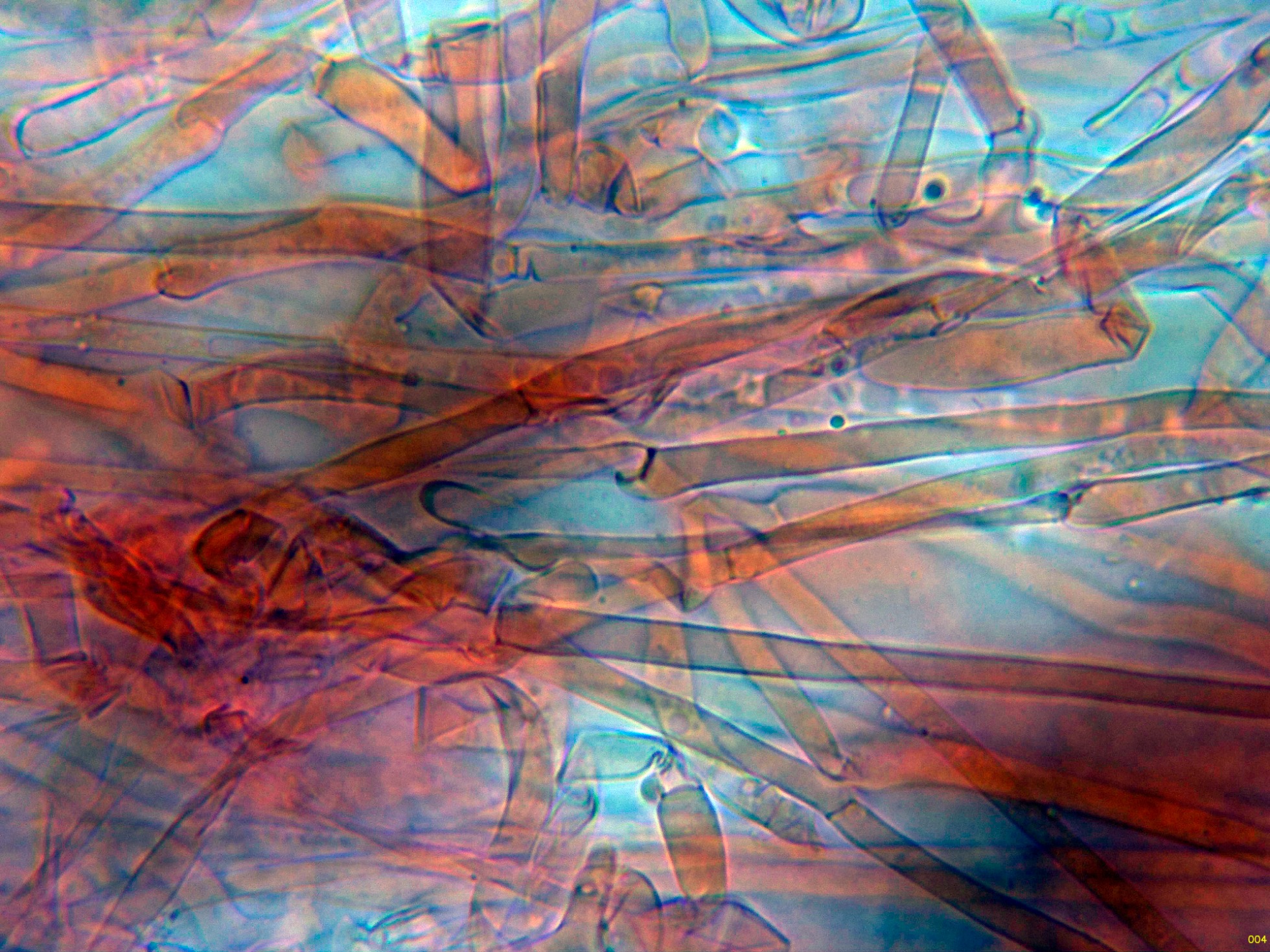 Hifas de la suprapellis, separadas por gelificación y fibuladas.