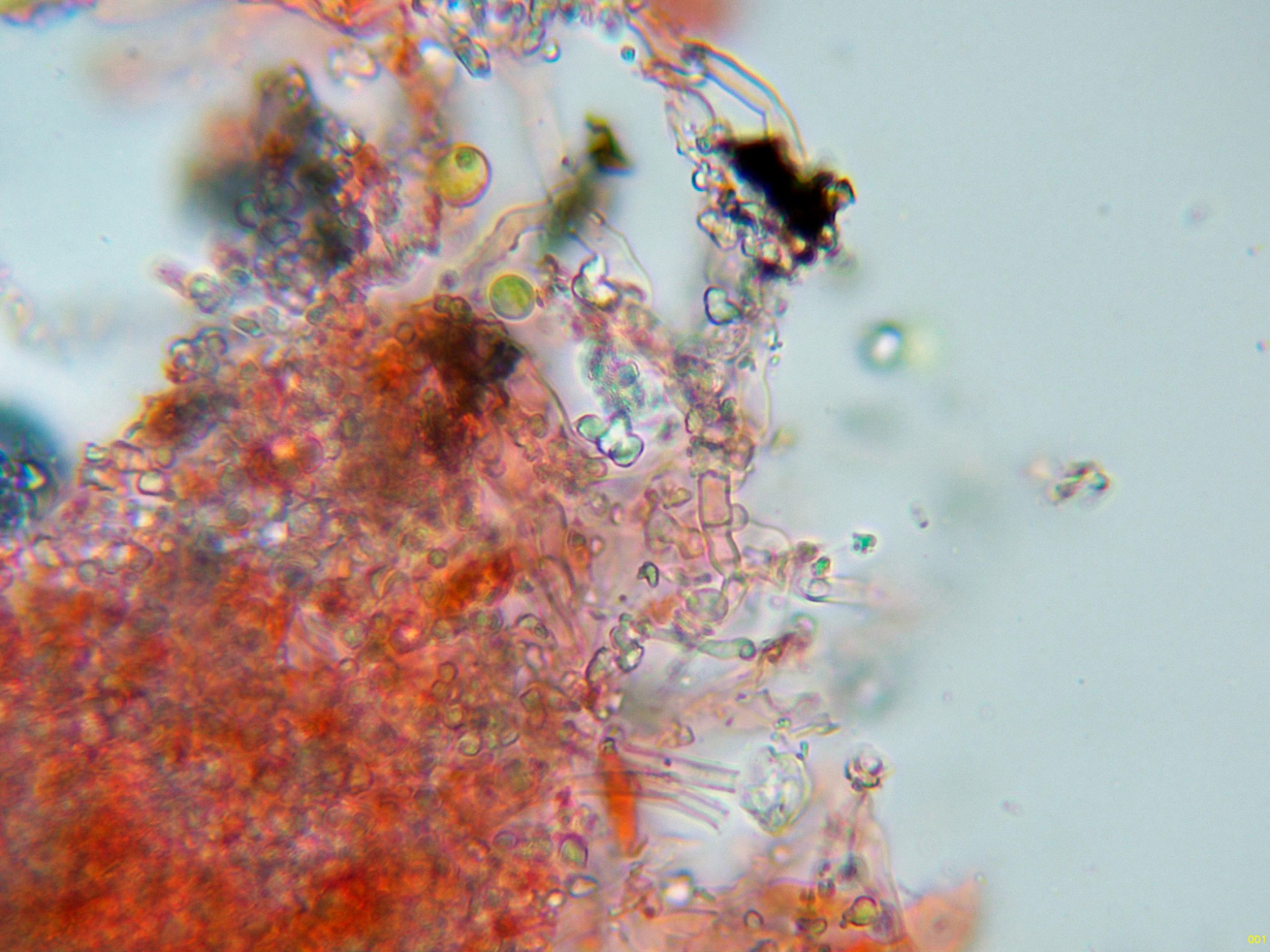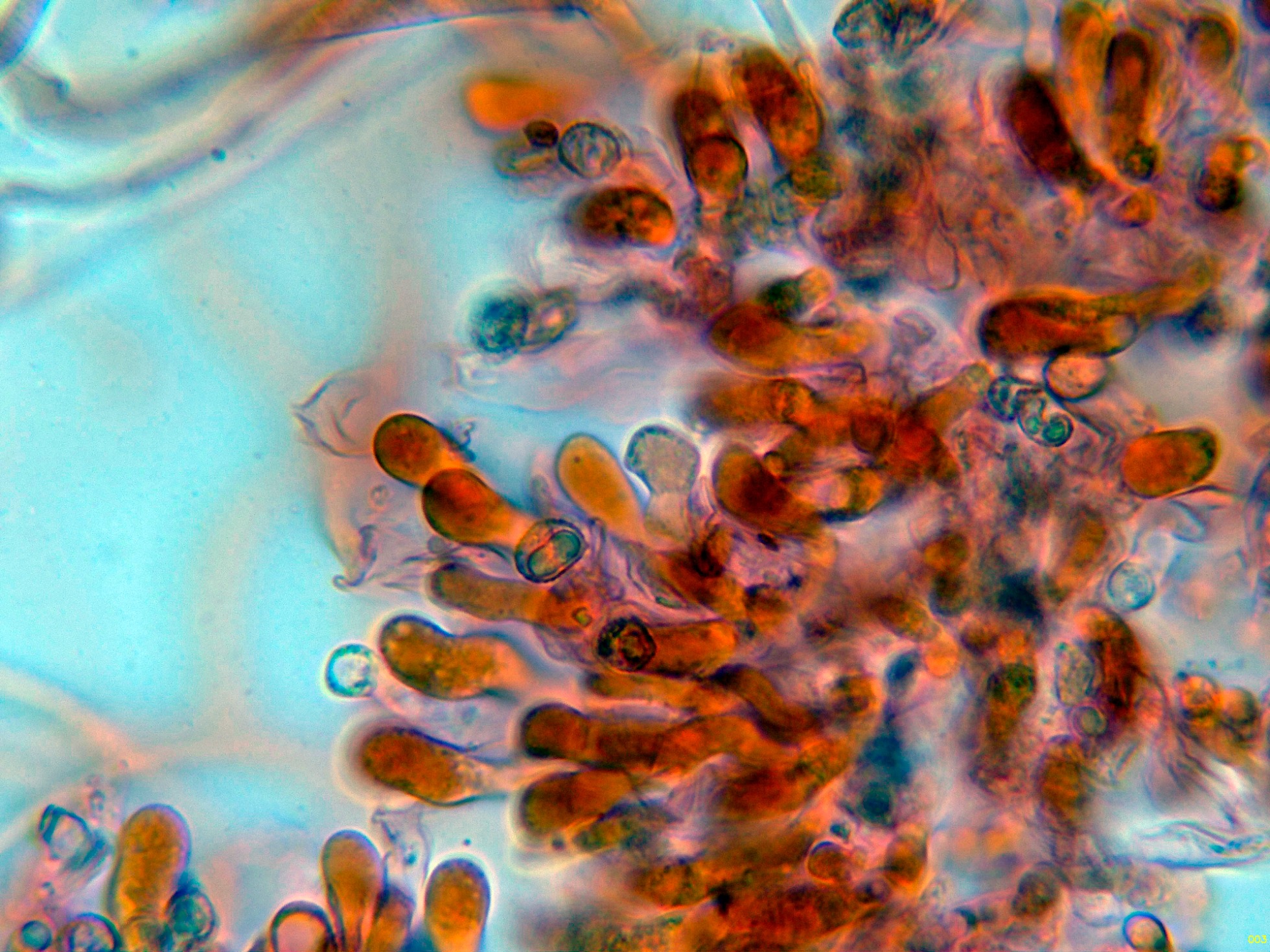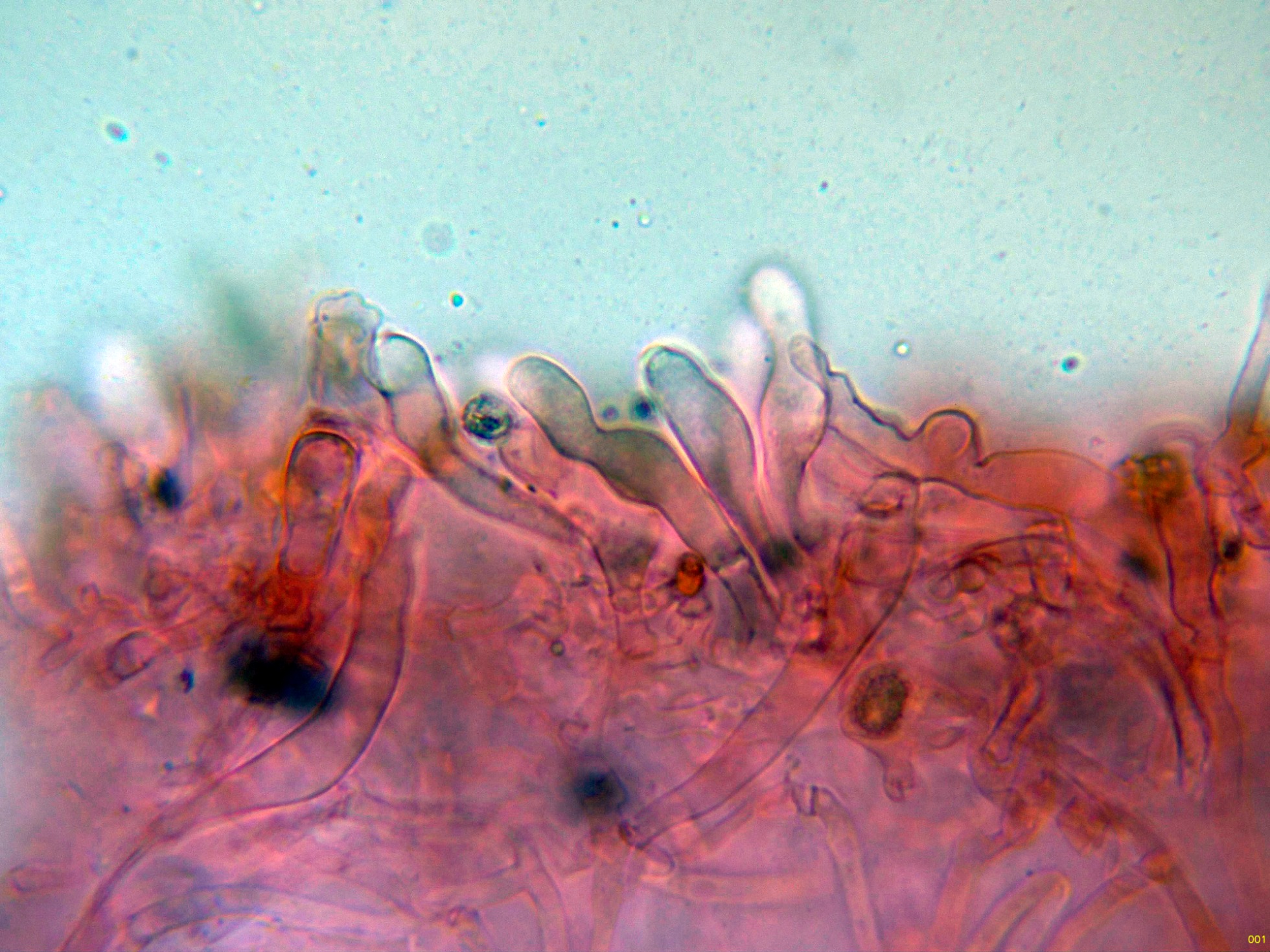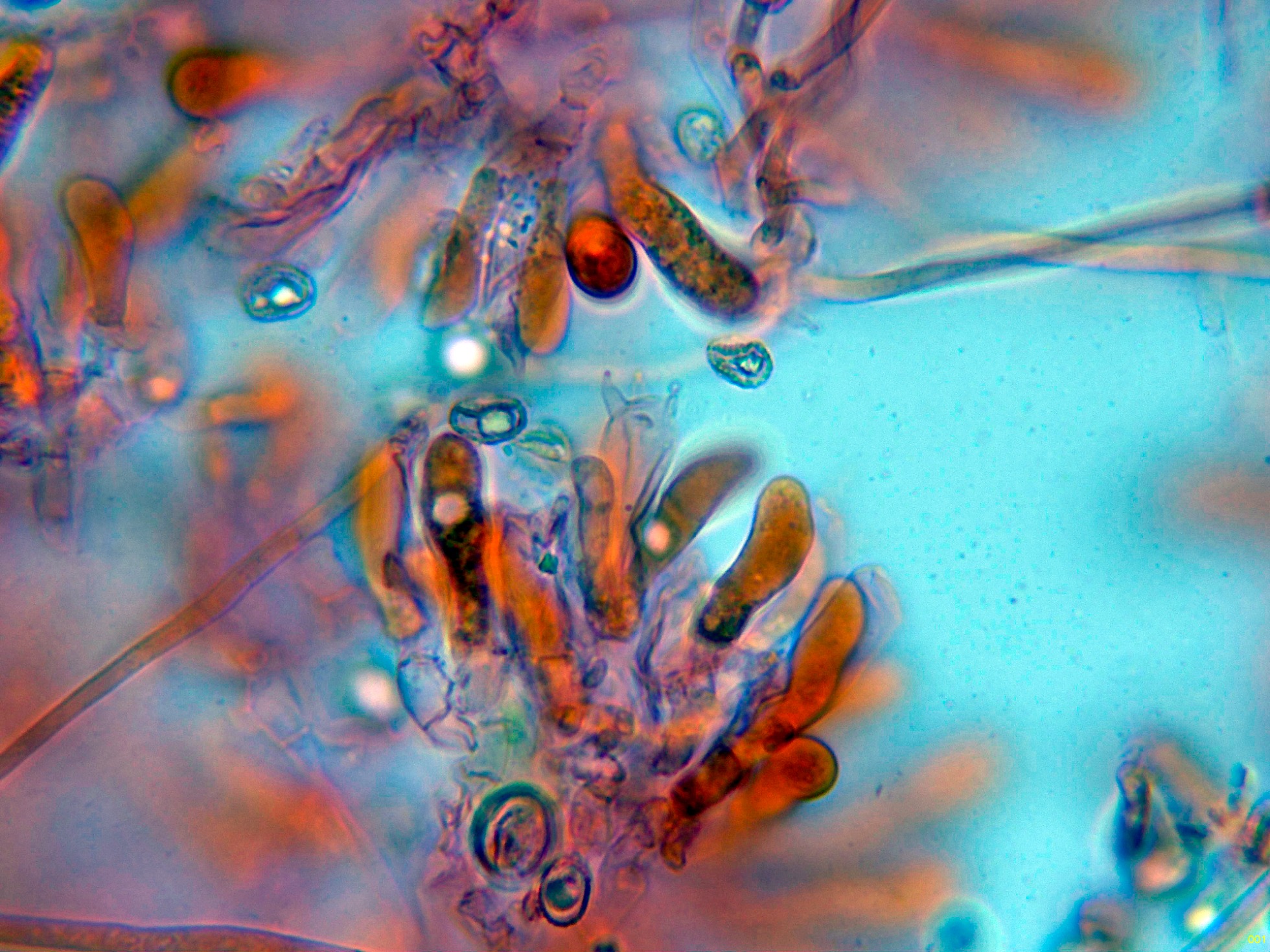 Hifas de la suprapellis, separadas por gelificación y fibuladas.