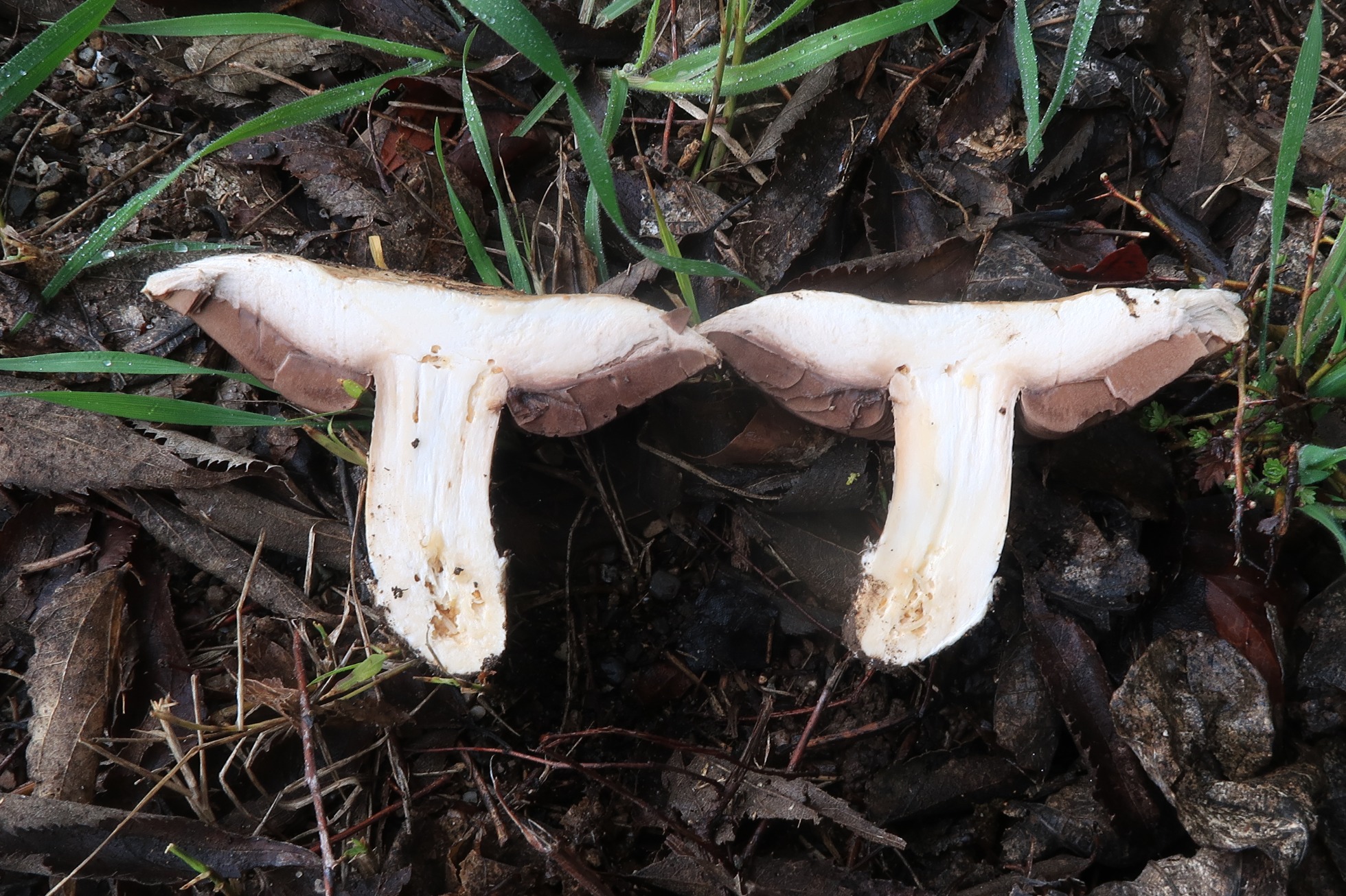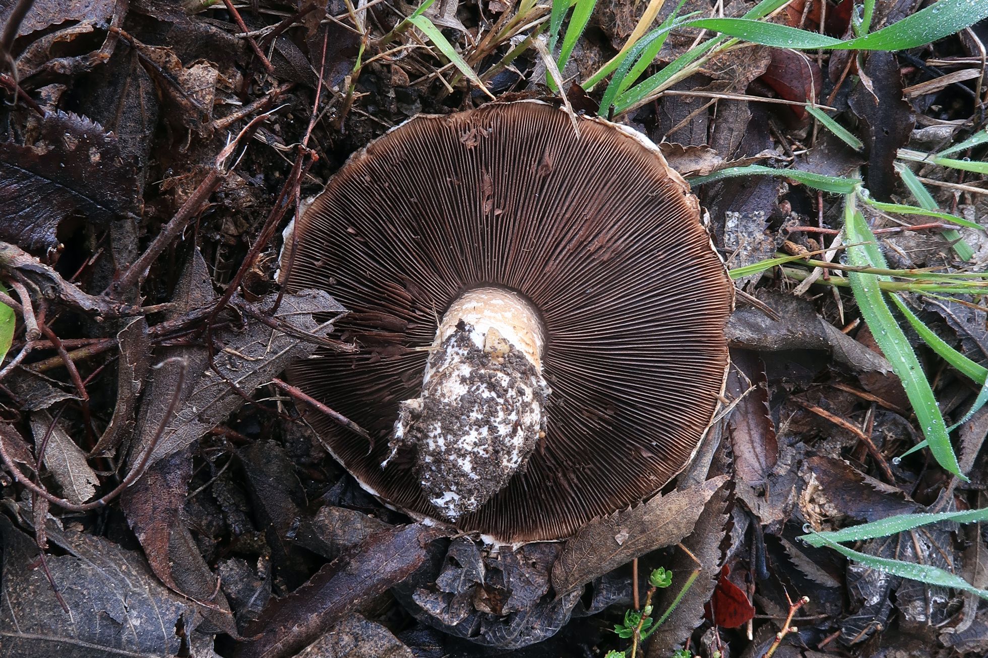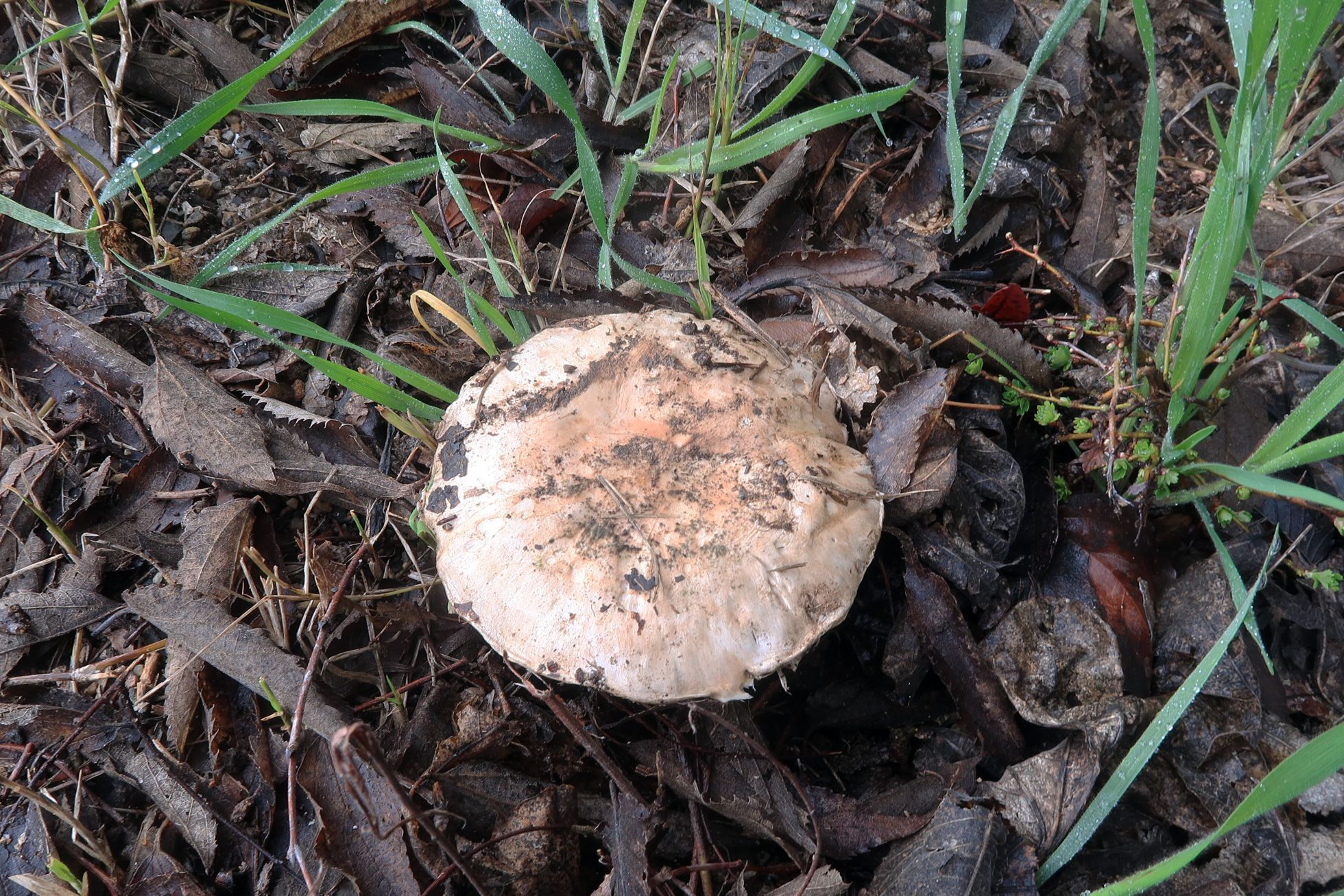 En la cuneta y al borde de la carretera, un Agaricus que atendiendo a su carne prácticamente inmutable al corte, su corto pie (menos del diámetro del sombrero) y la microscopía obtenida apunta a lo que en sentido amplio podemos considerar como Agaricus campestris sl.