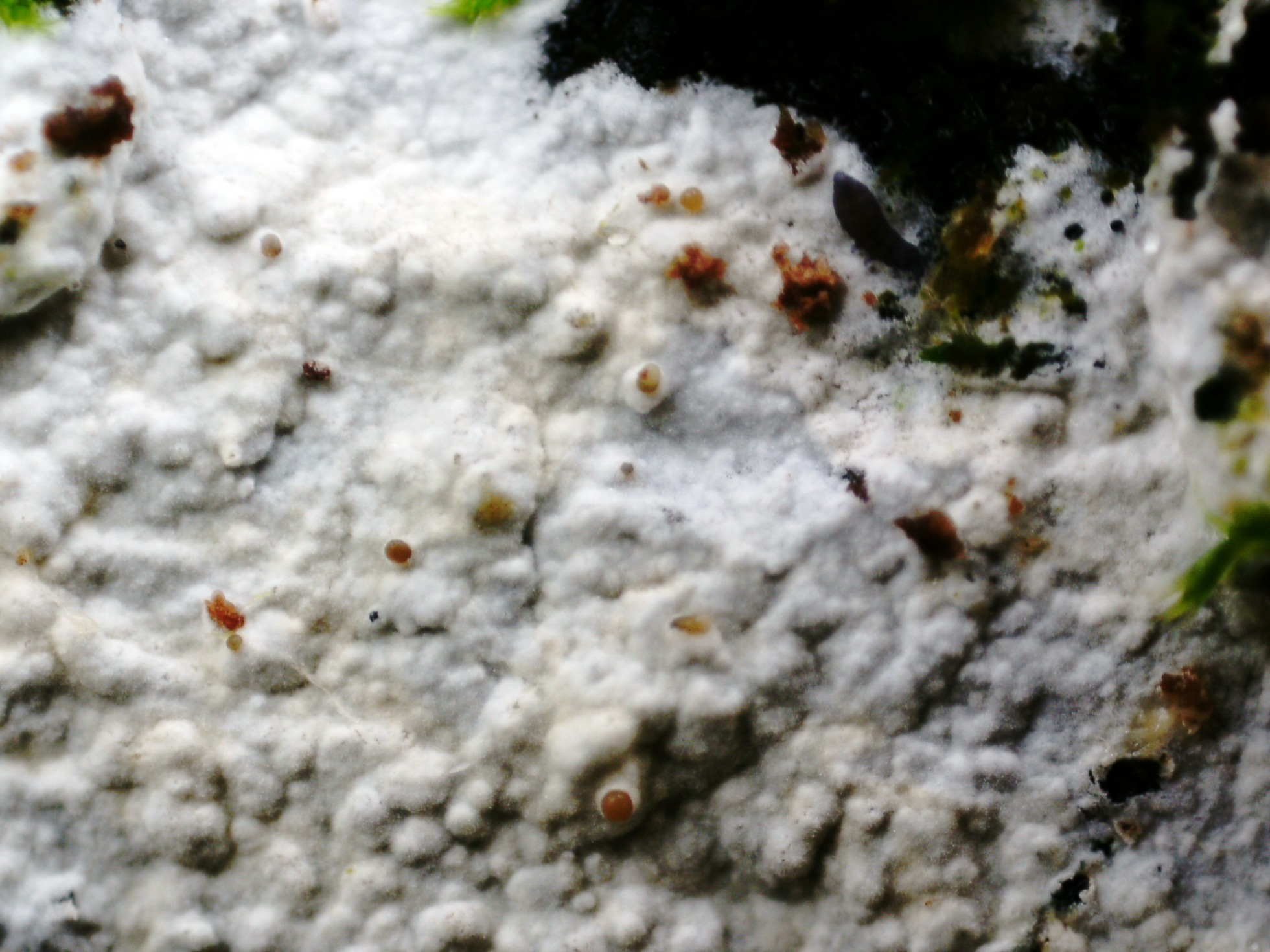 Un Mixomiceto, por unos instantes hasta creí que podría ser interesante, nada más lejos que la realidad, décimo estudio que realizo a la especie, el muy abundante y omnipresente Physarum album.